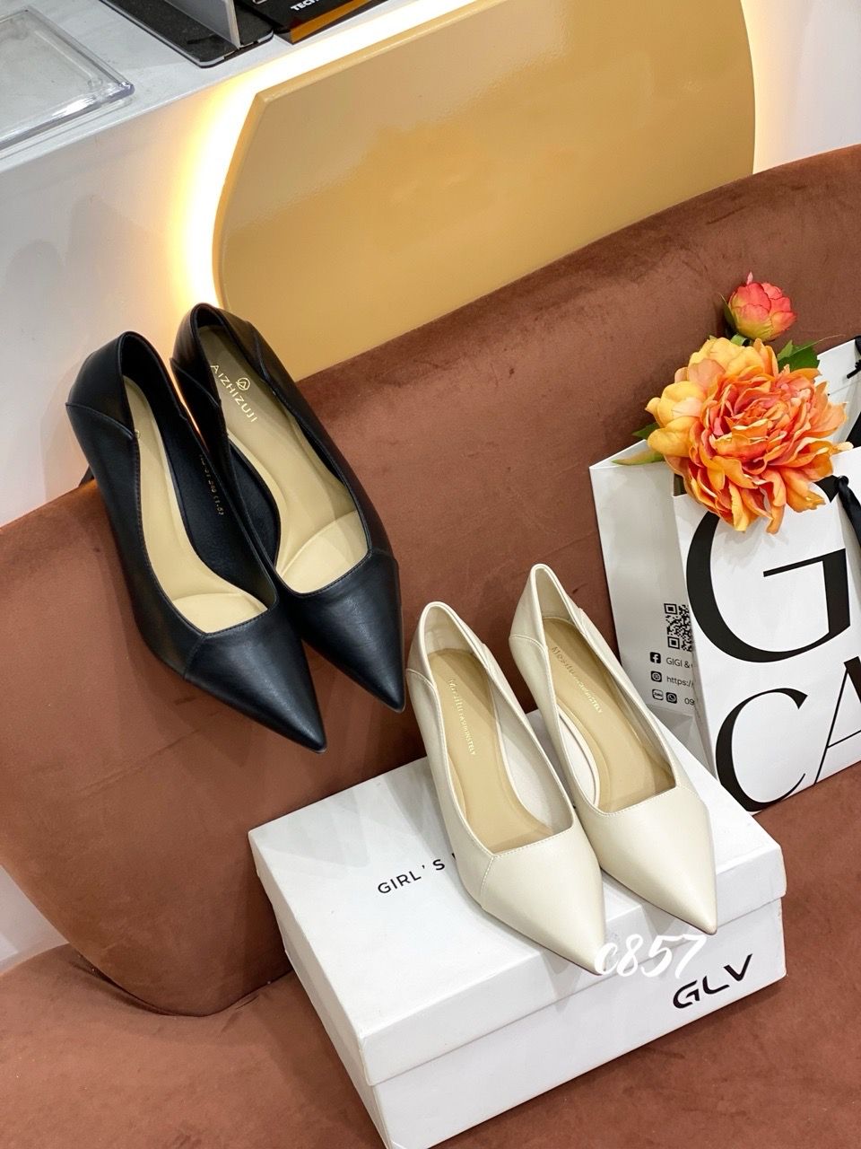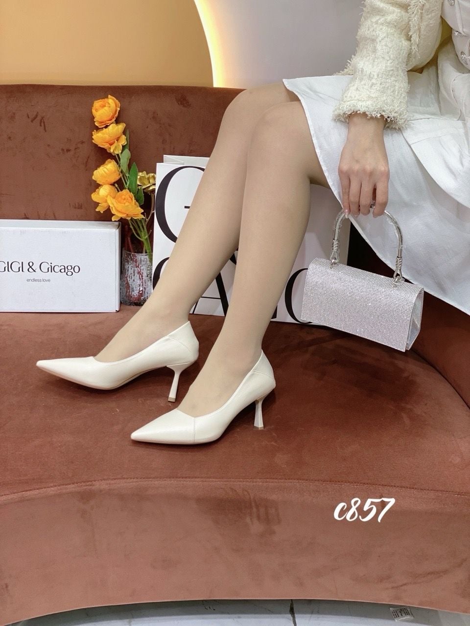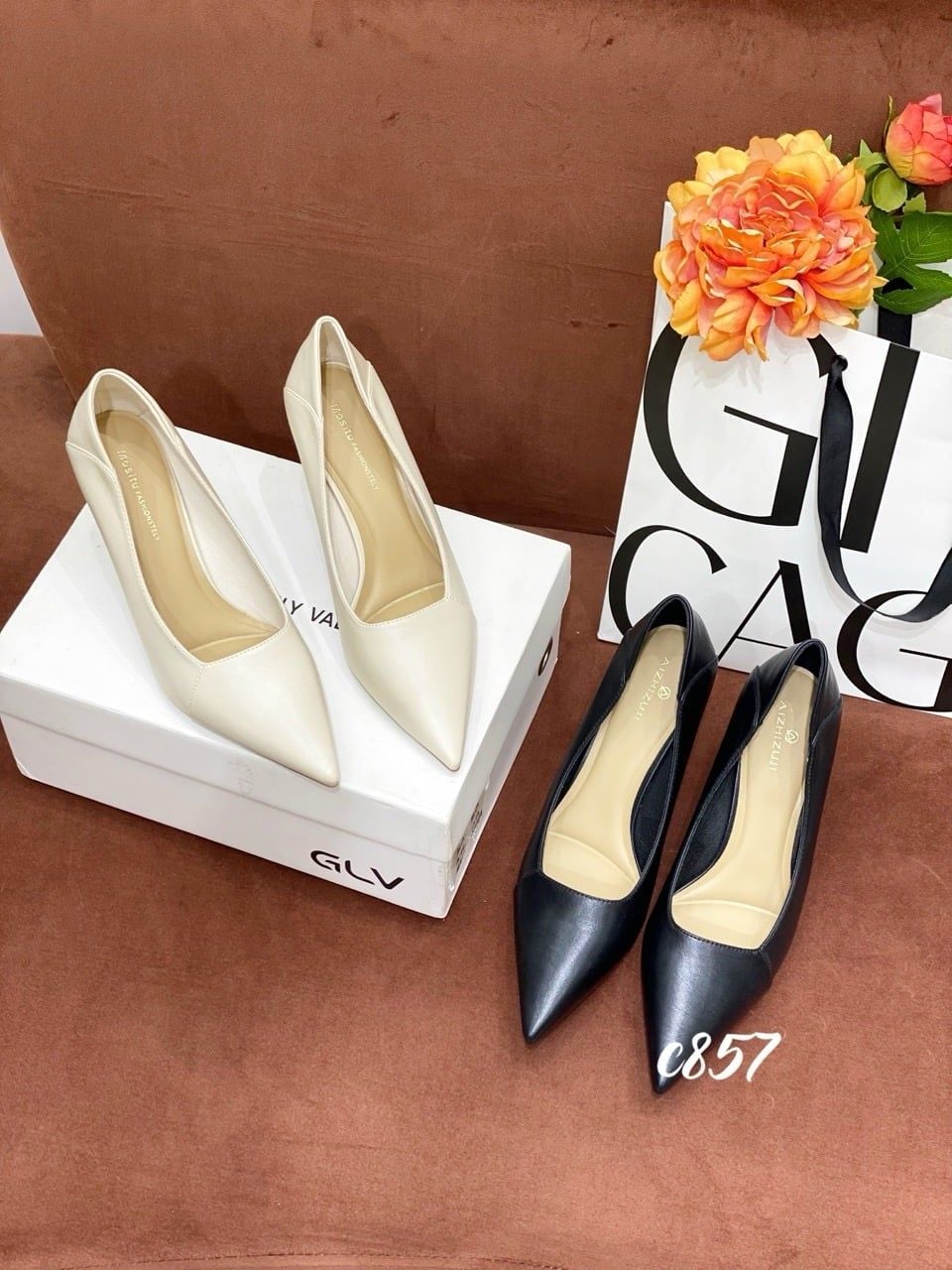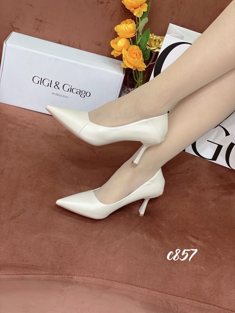 Cao gót nhọn da trơn C857