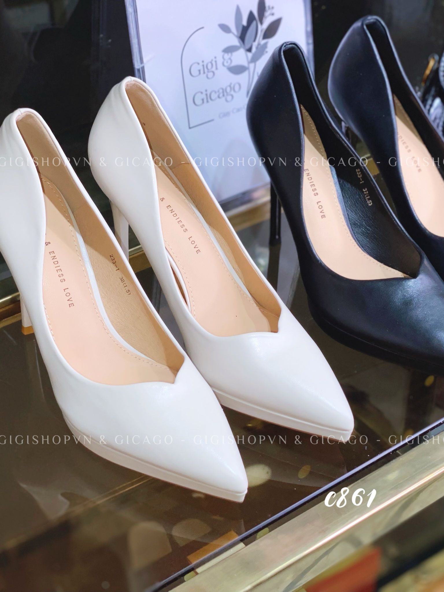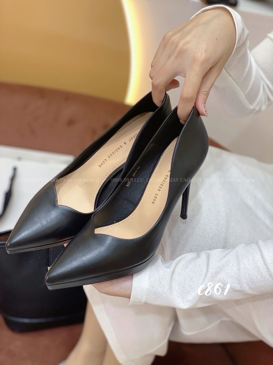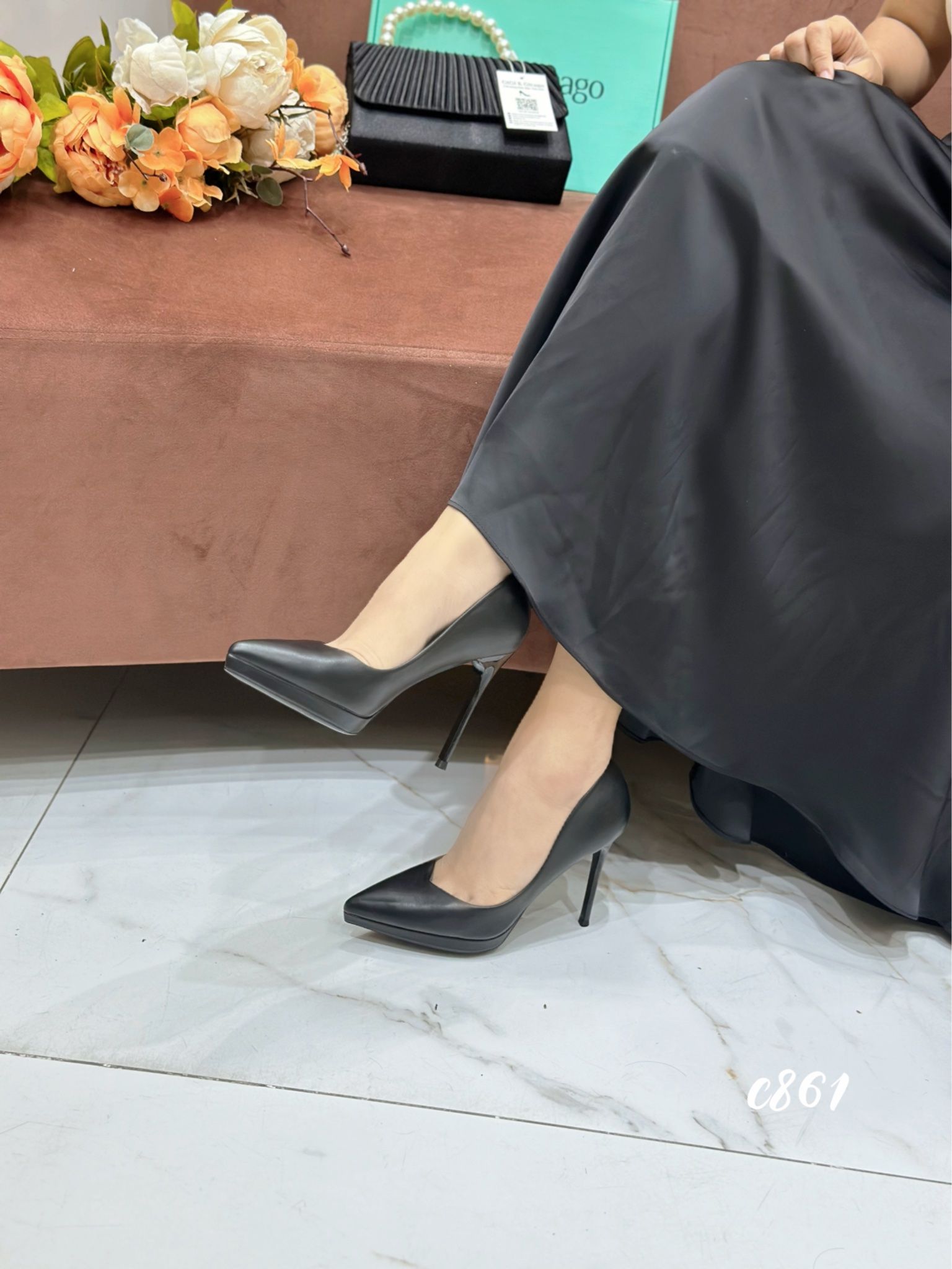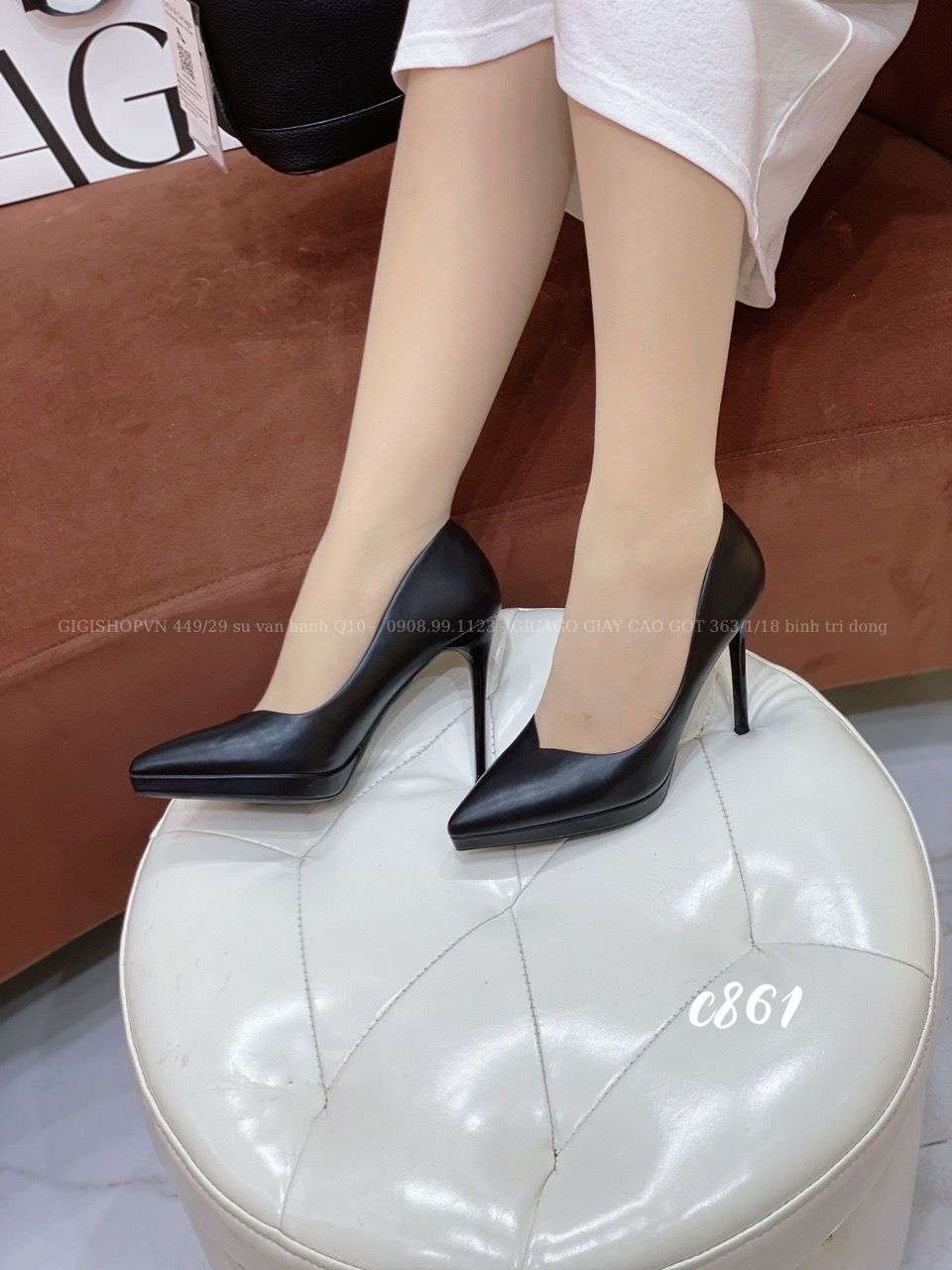 Cao gót nhọn da trơn đúp C861