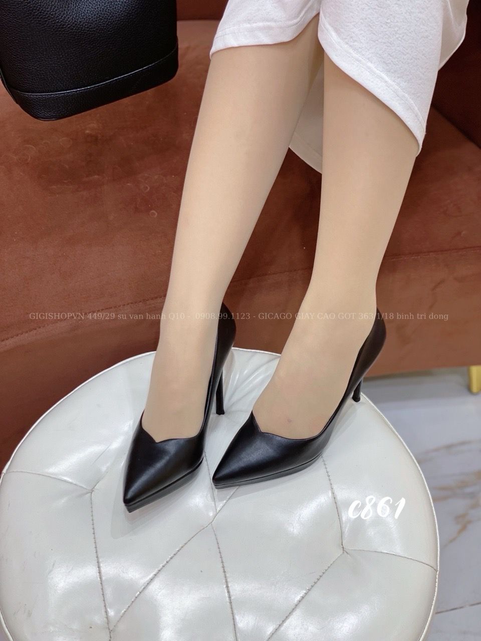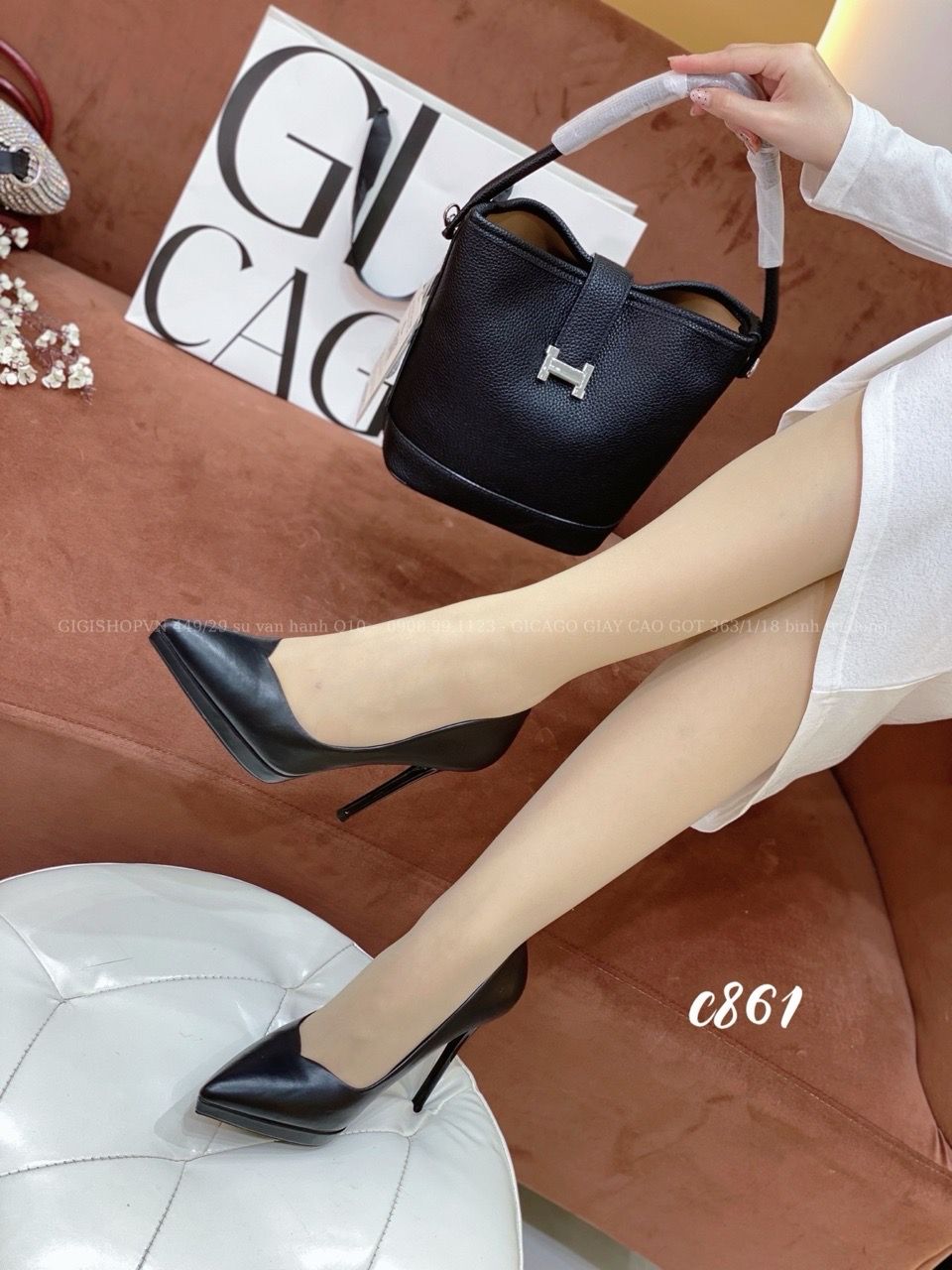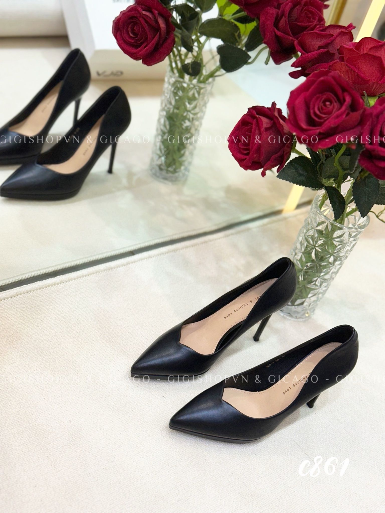 Cao gót nhọn da trơn đúp C861