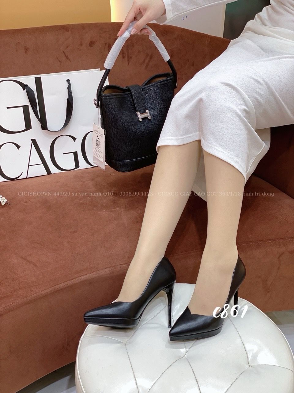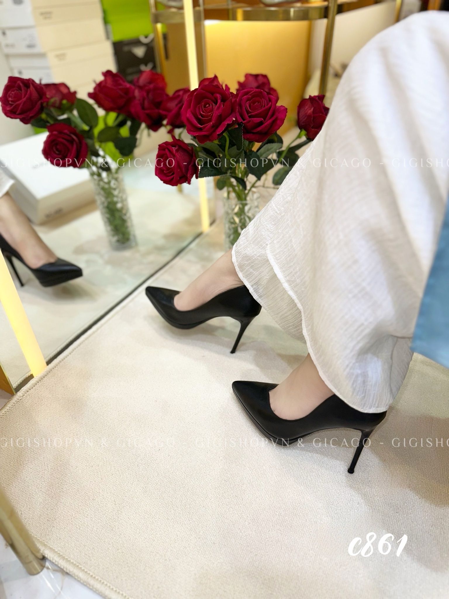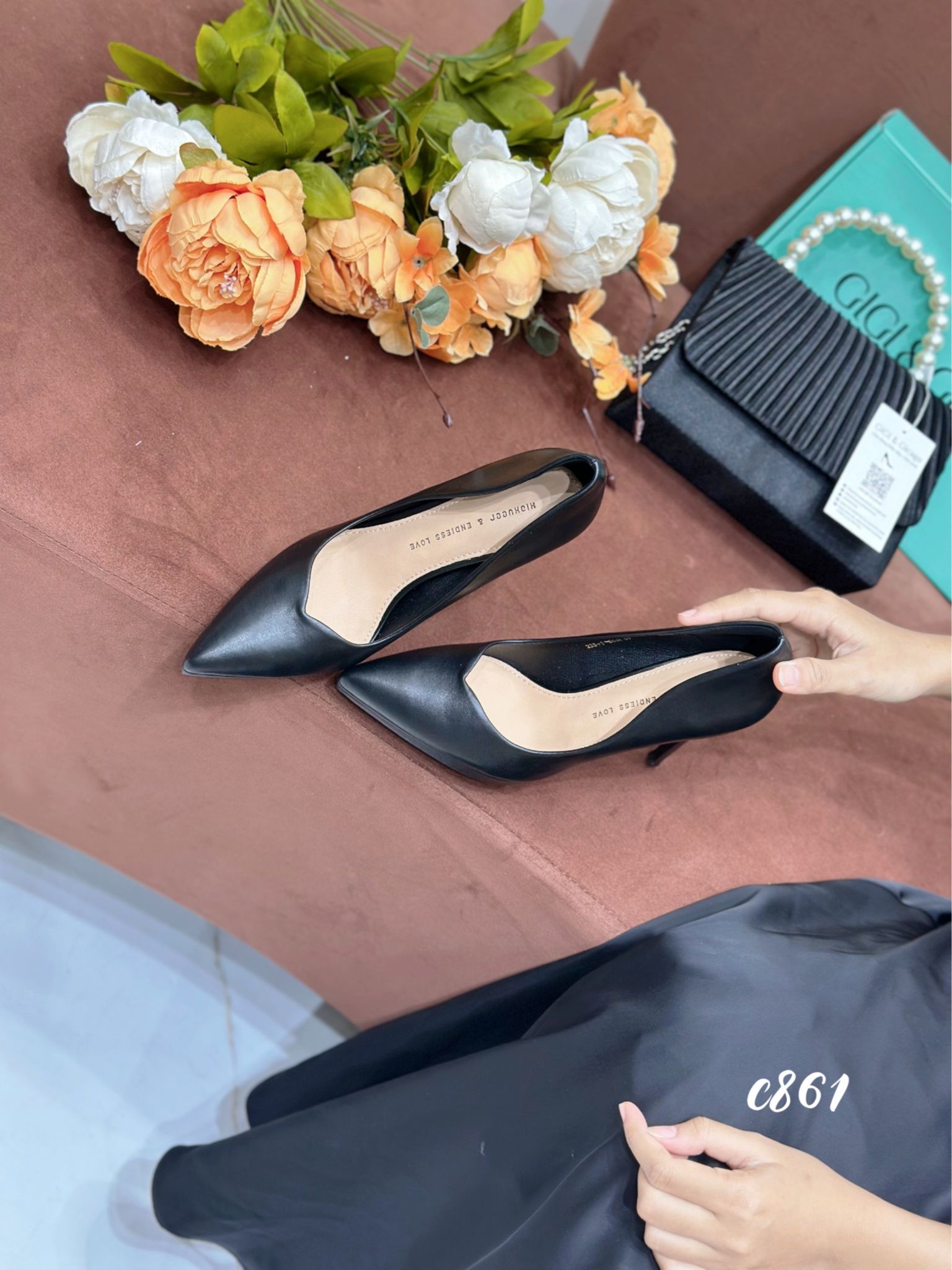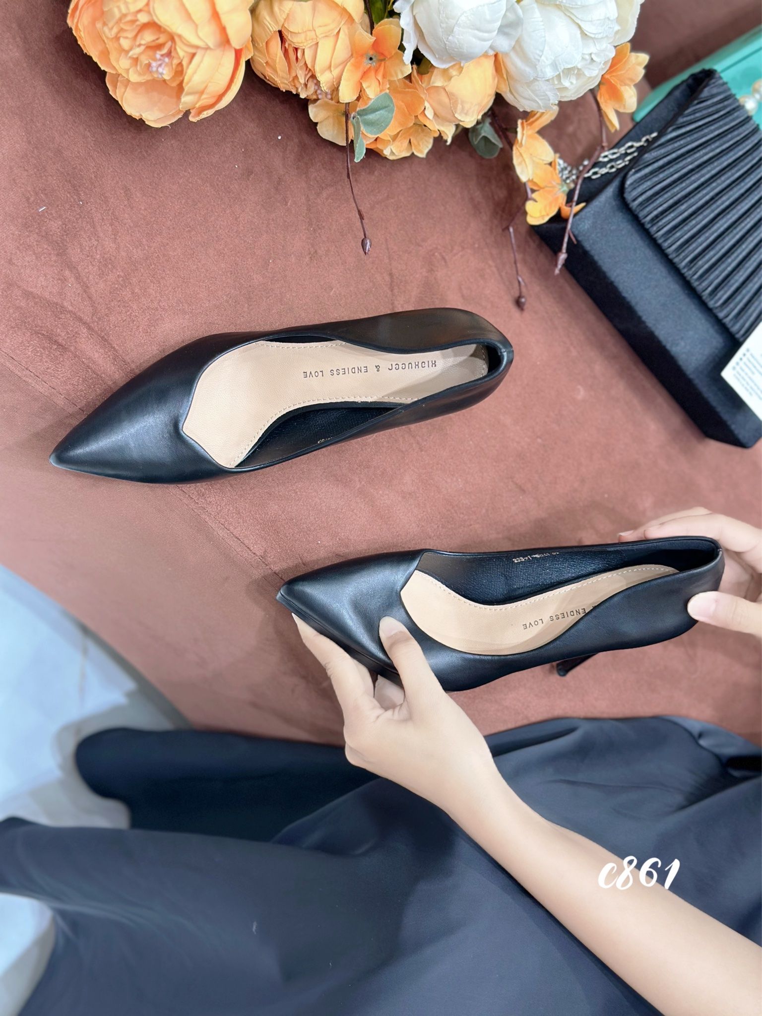 Cao gót nhọn da trơn đúp C861