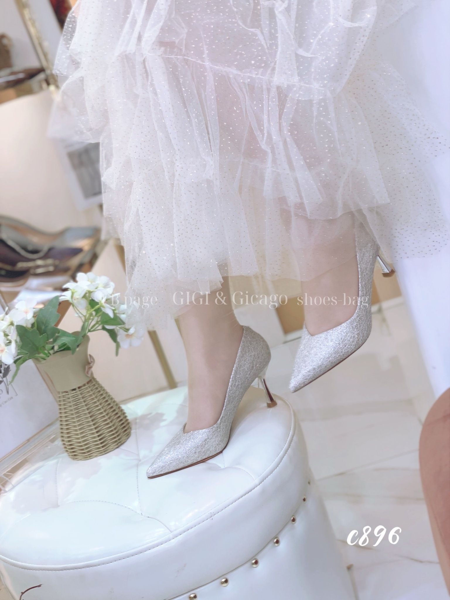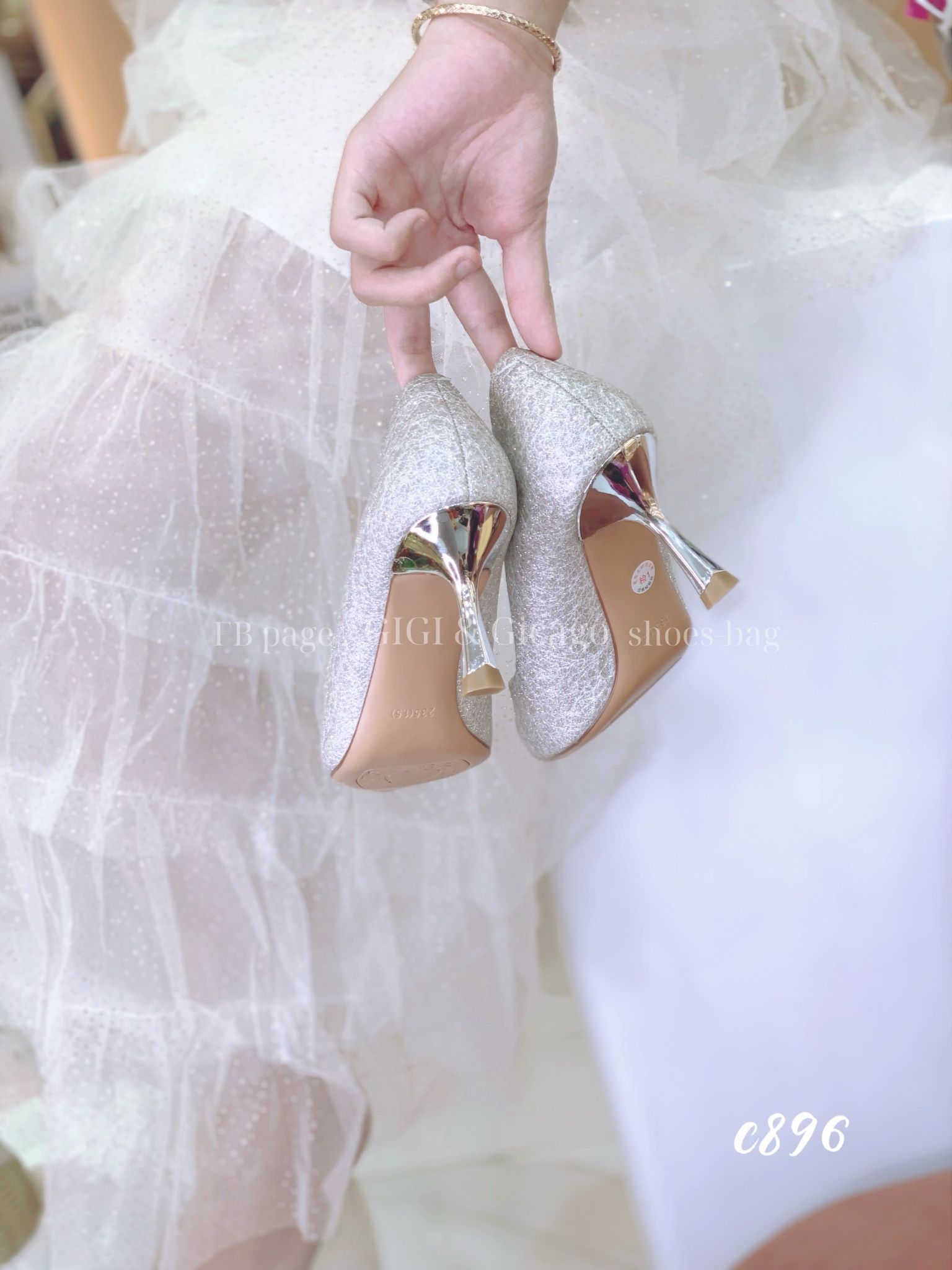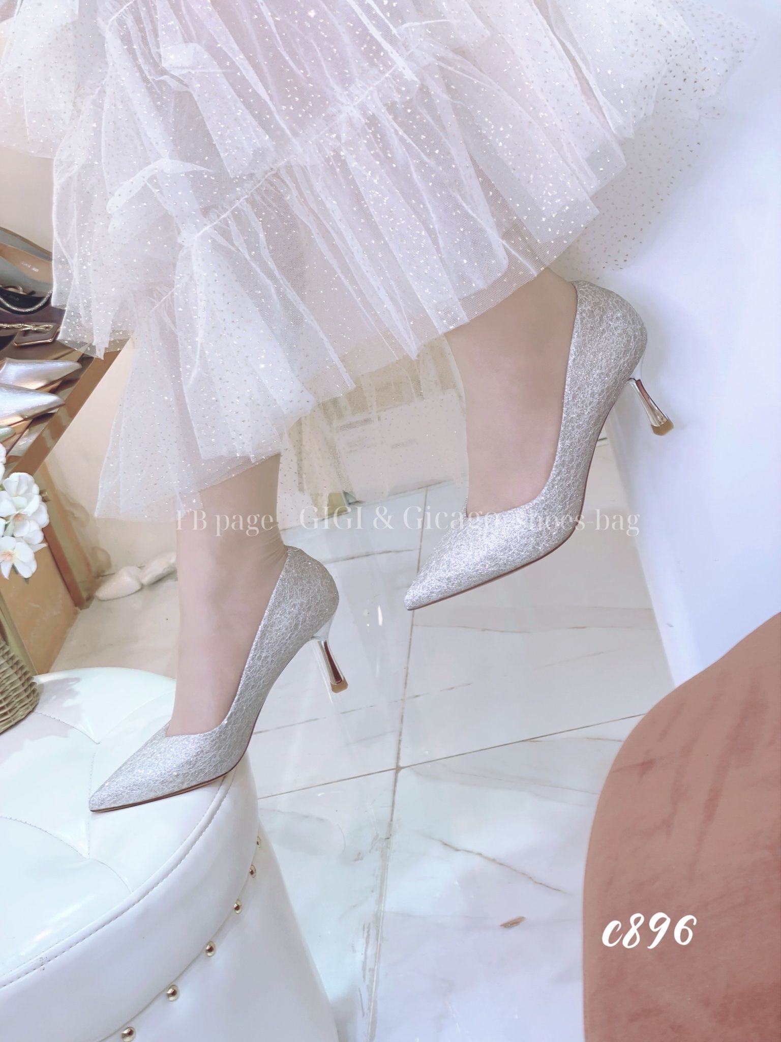 Cao gót nhọn tiệc bling C896