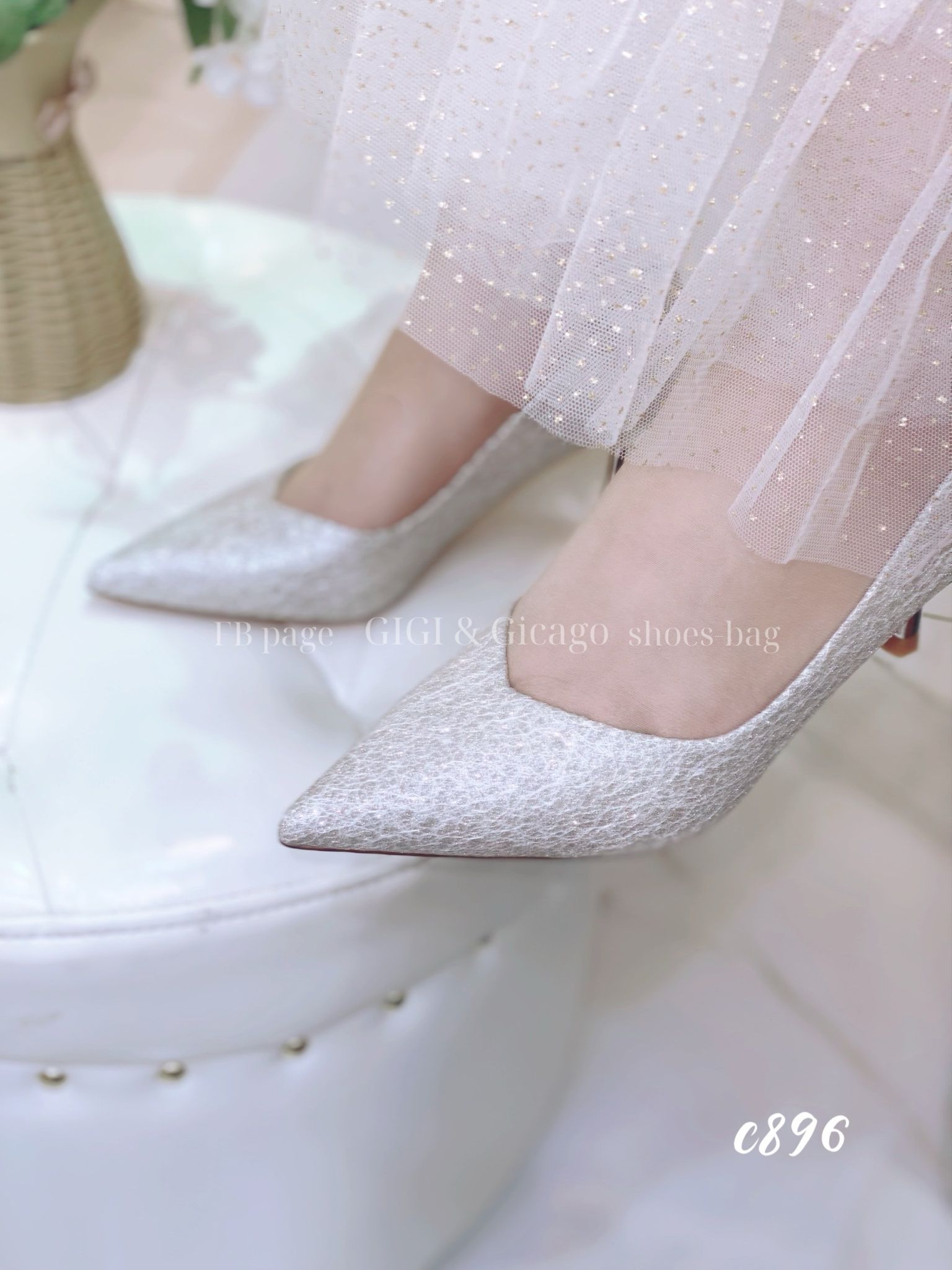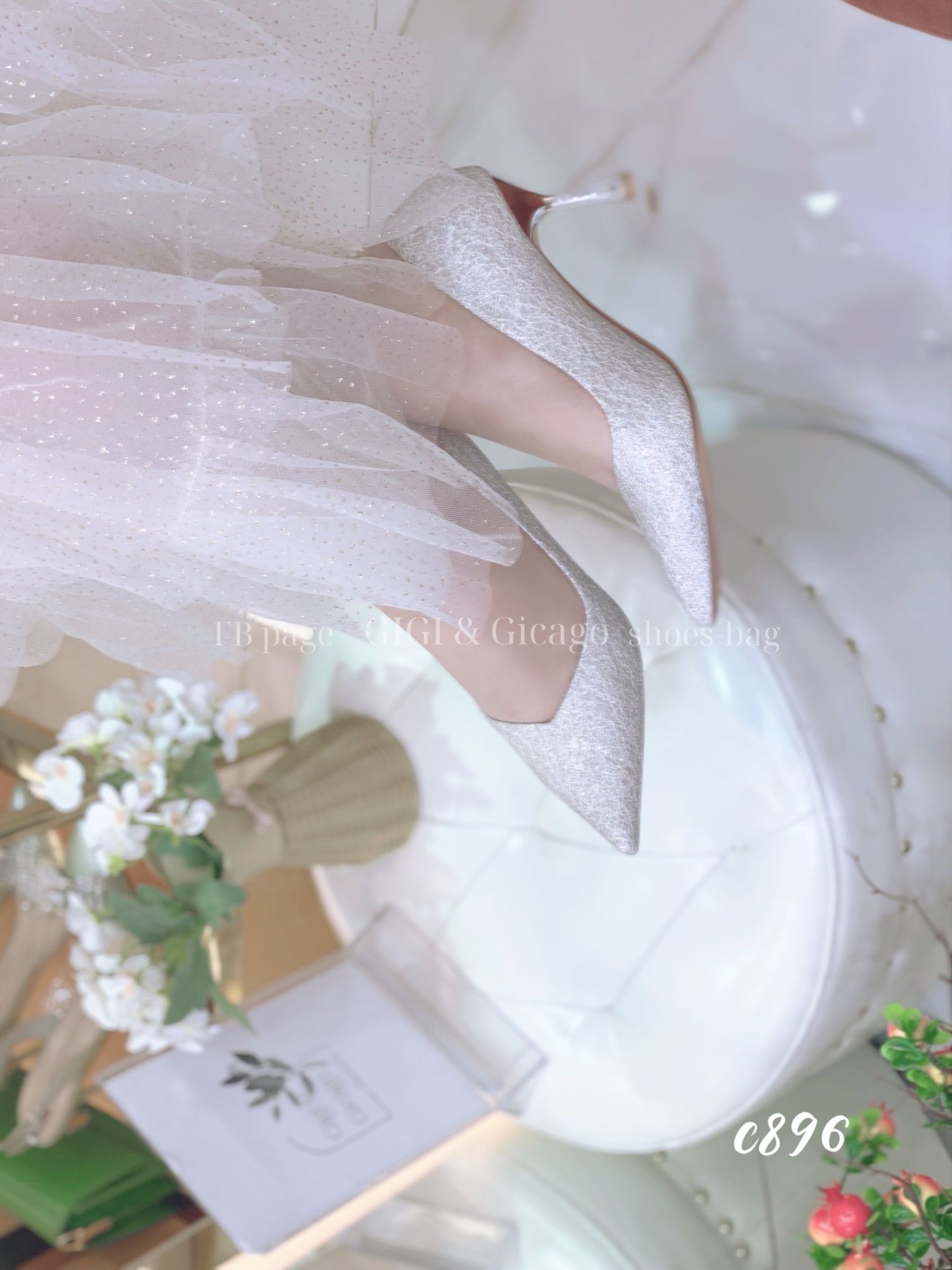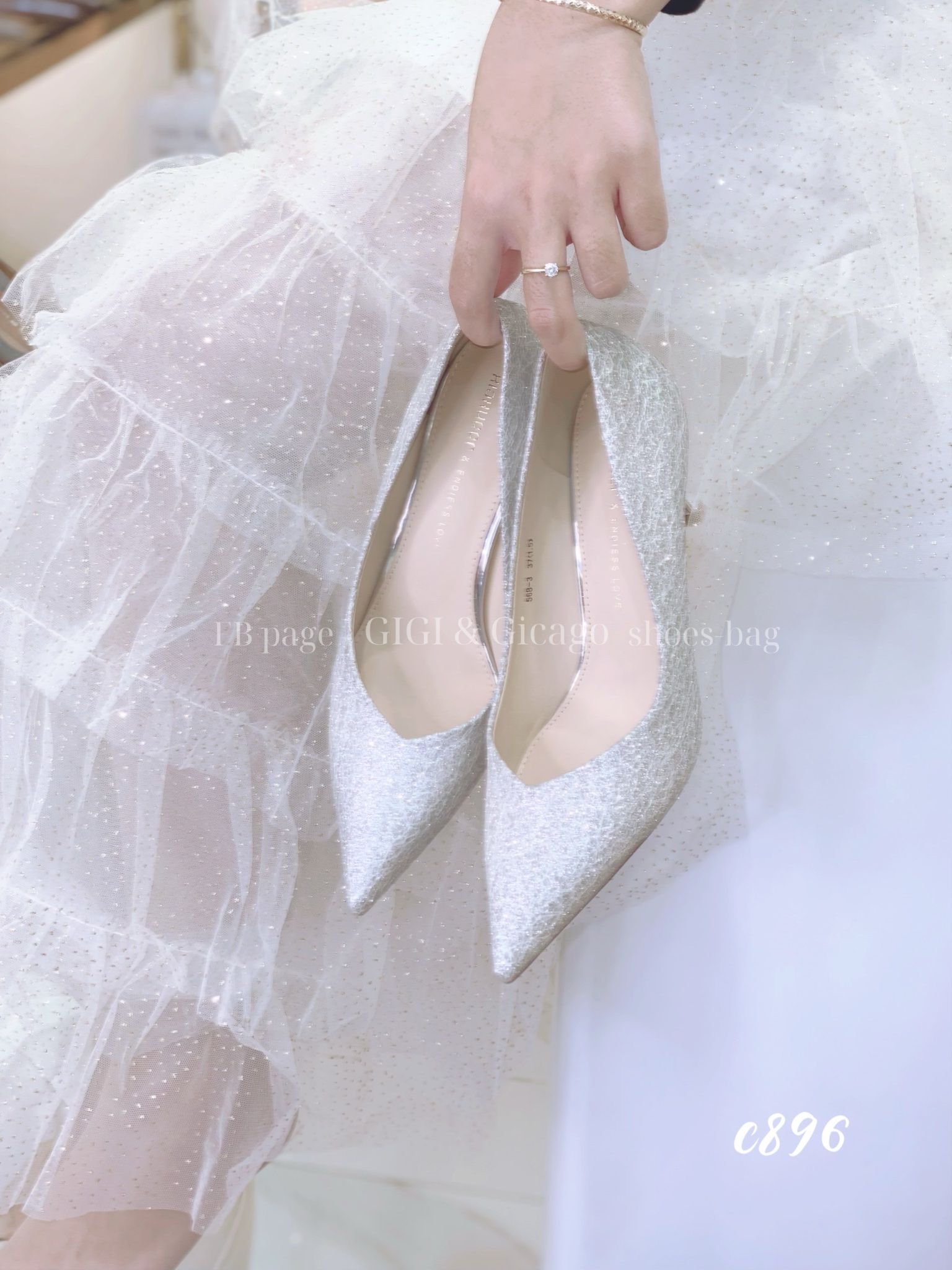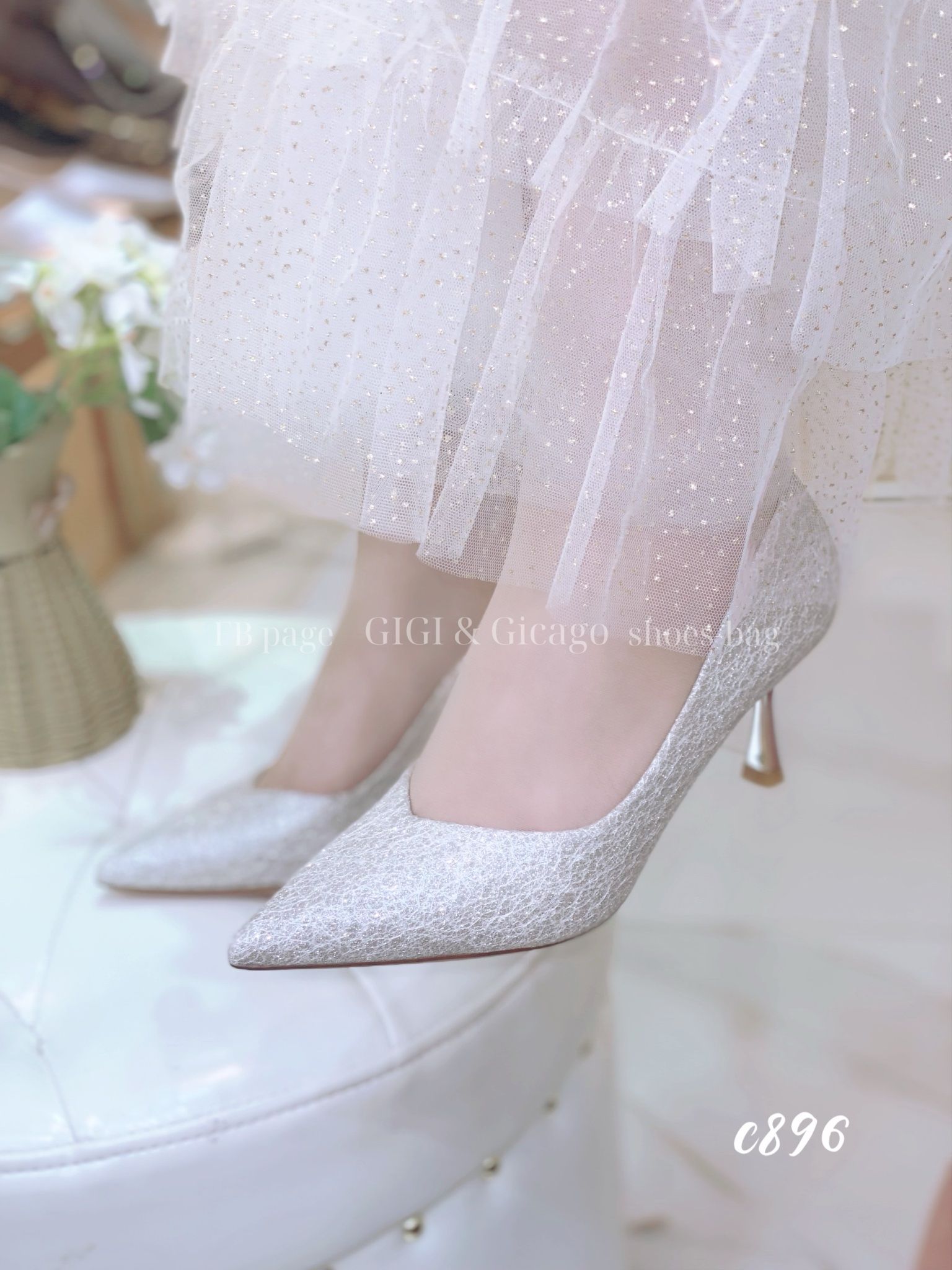 Cao gót nhọn tiệc bling C896