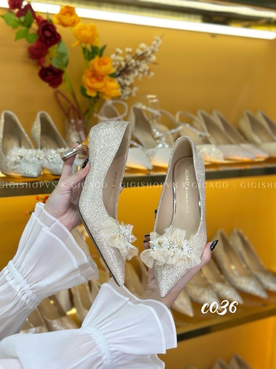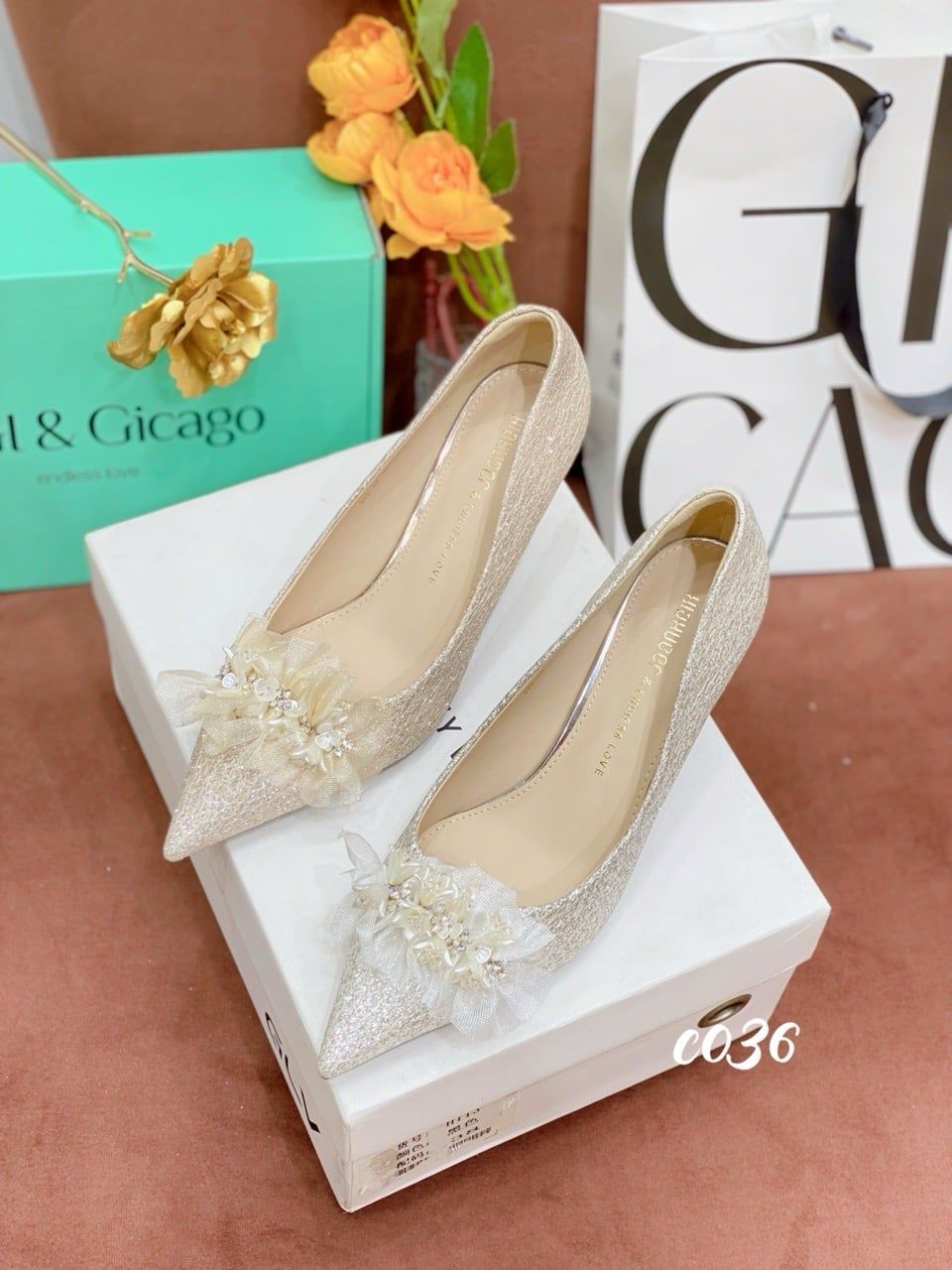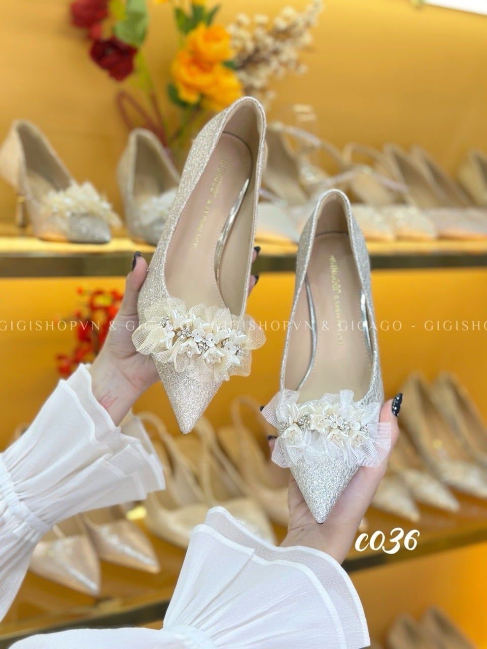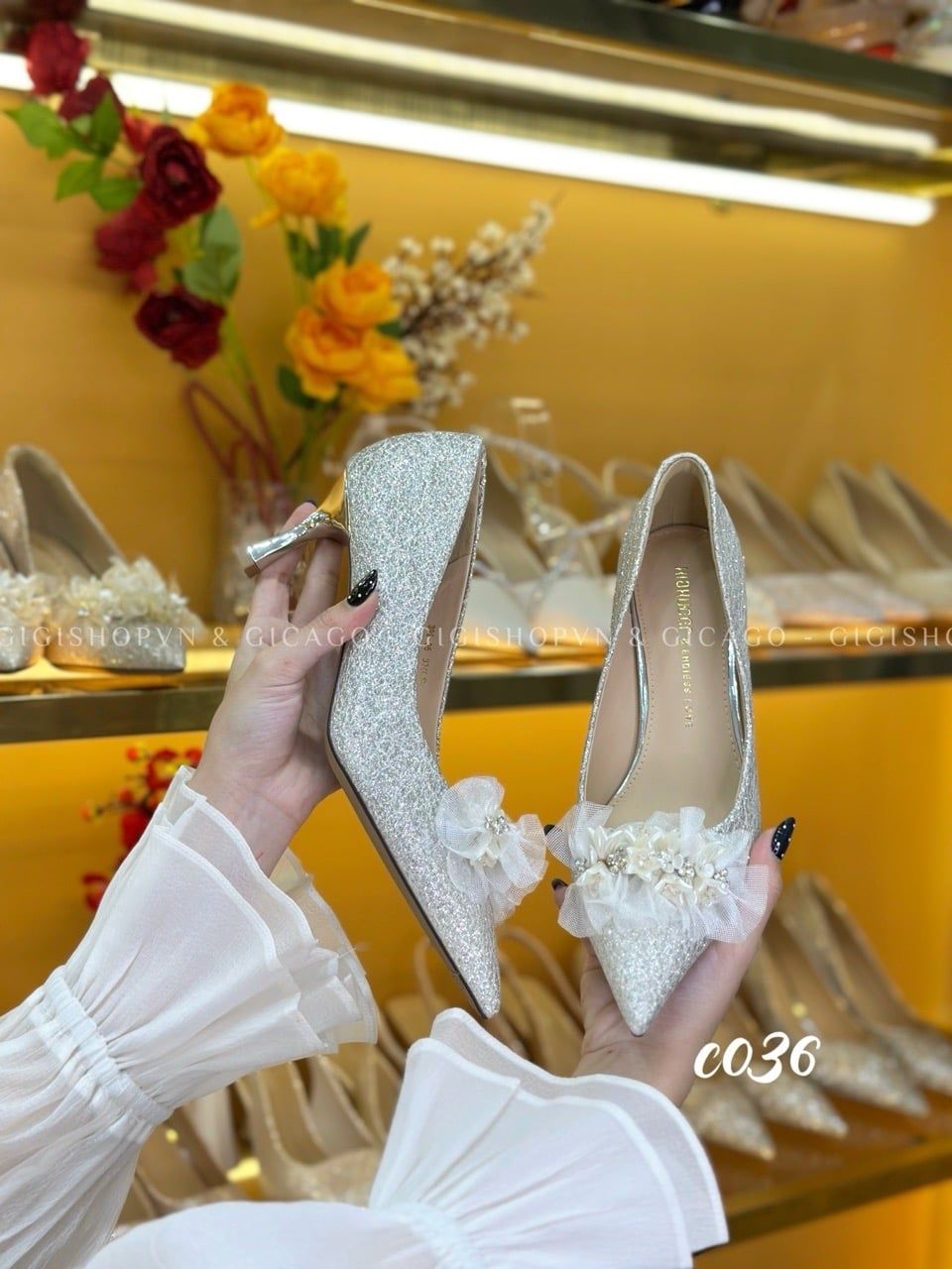 Cao gót nhọn tiệc Bling Hoa WD C036
