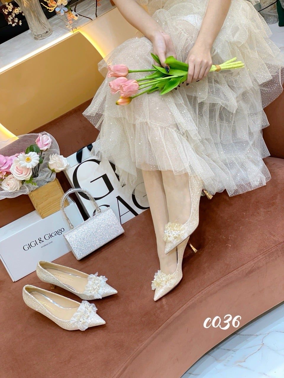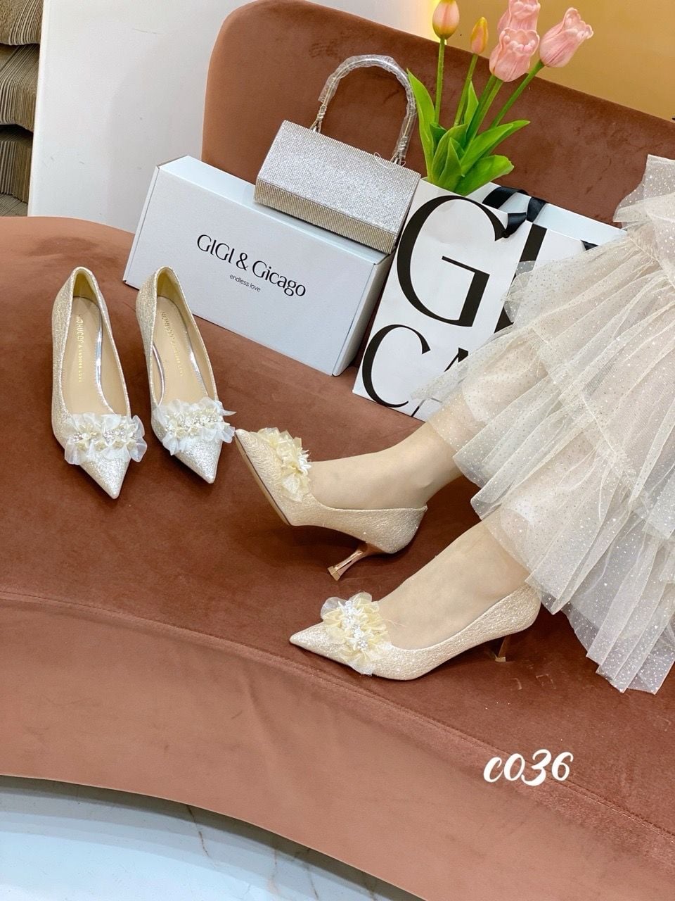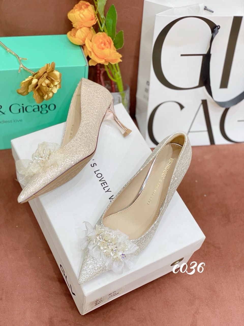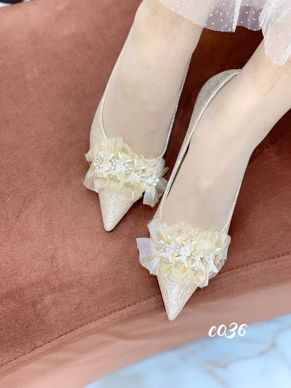 Cao gót nhọn tiệc Bling Hoa WD C036