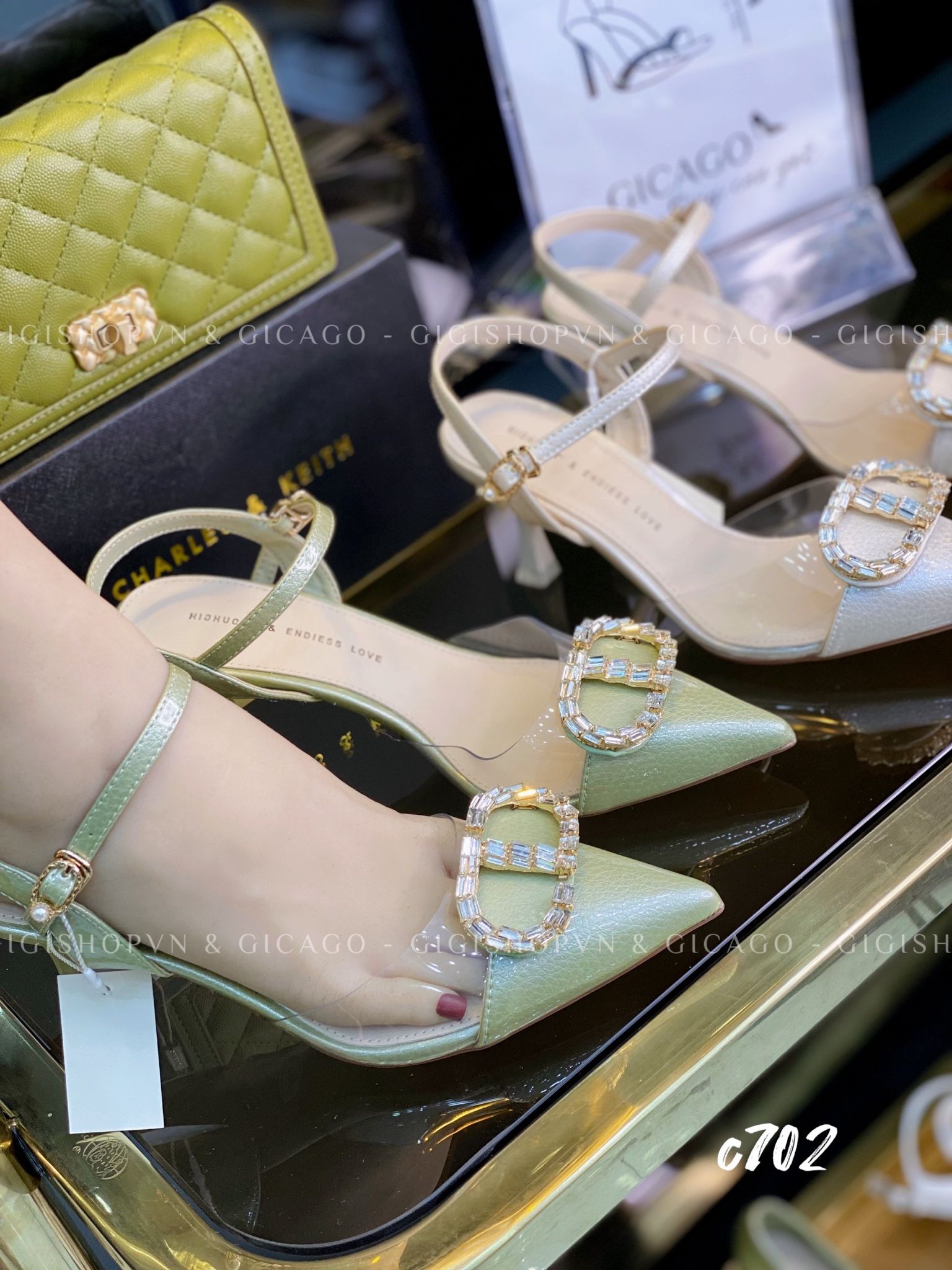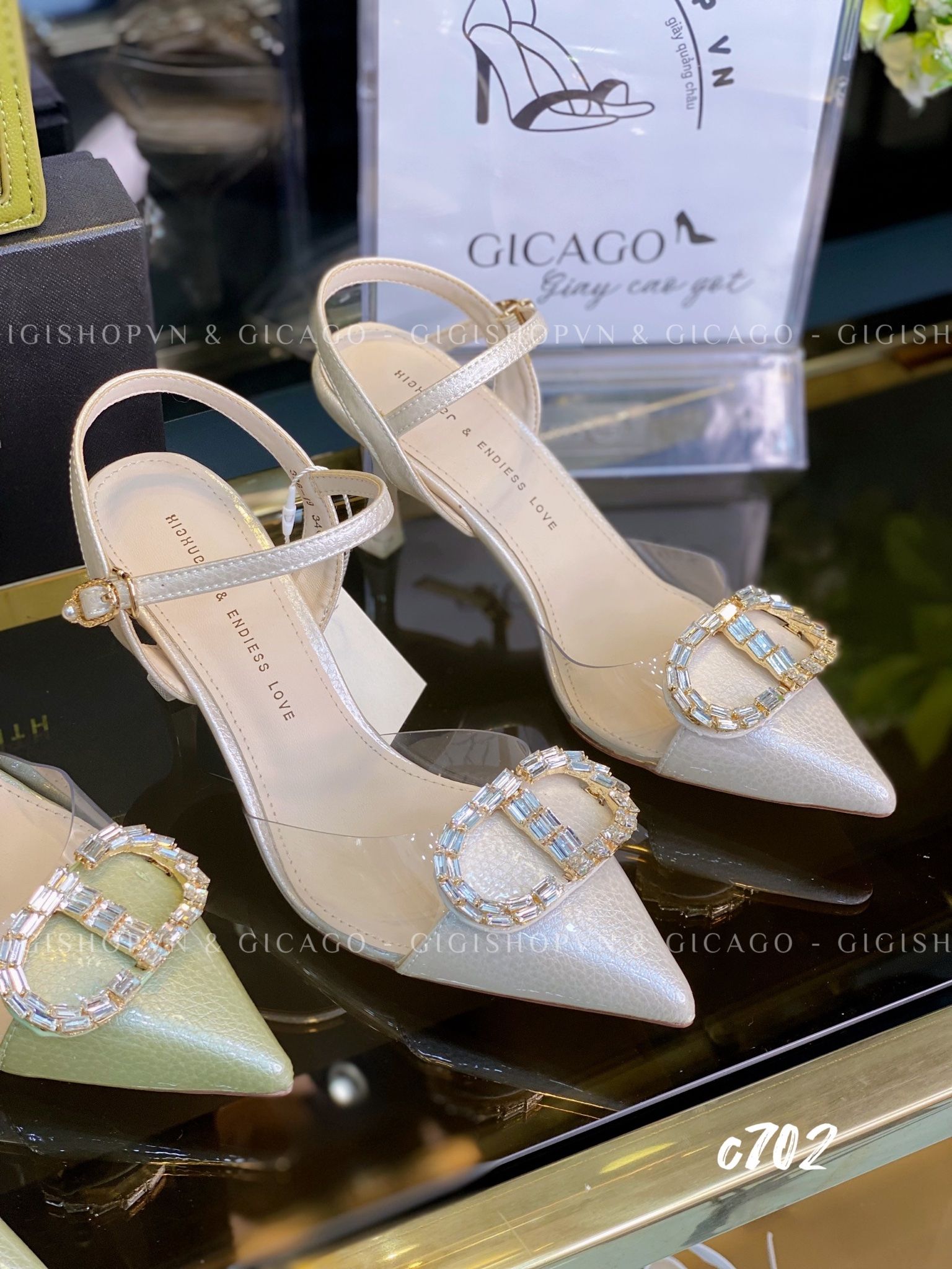 Cao gót nhọn hở gót cào quai CD C702