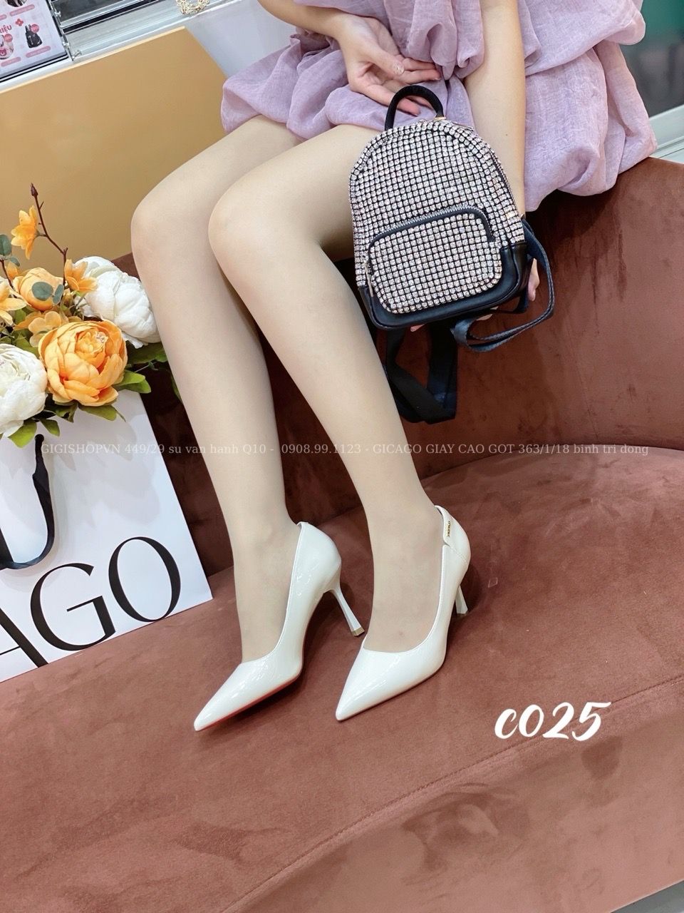 Cao gót nhọn da trơn C025
