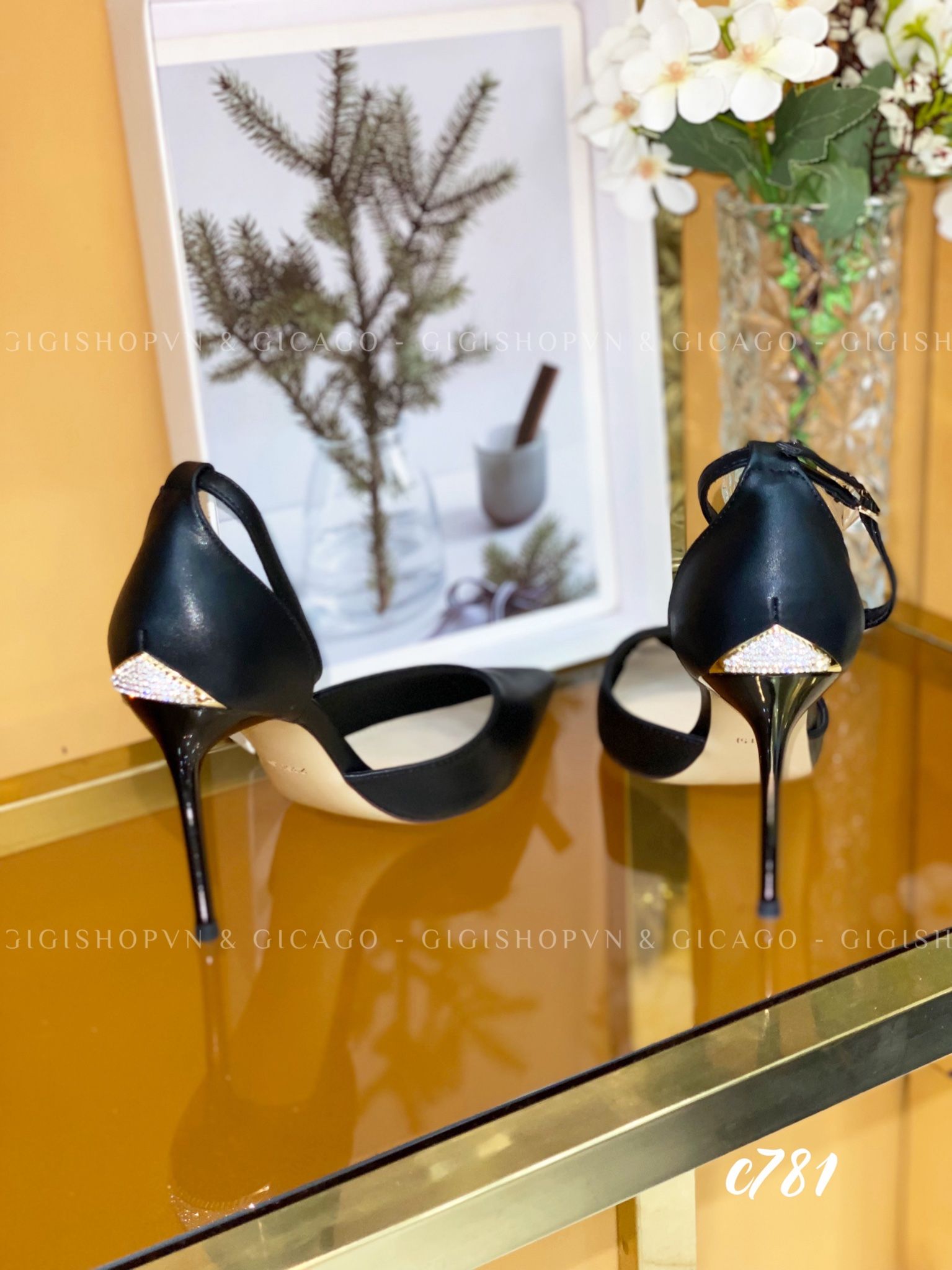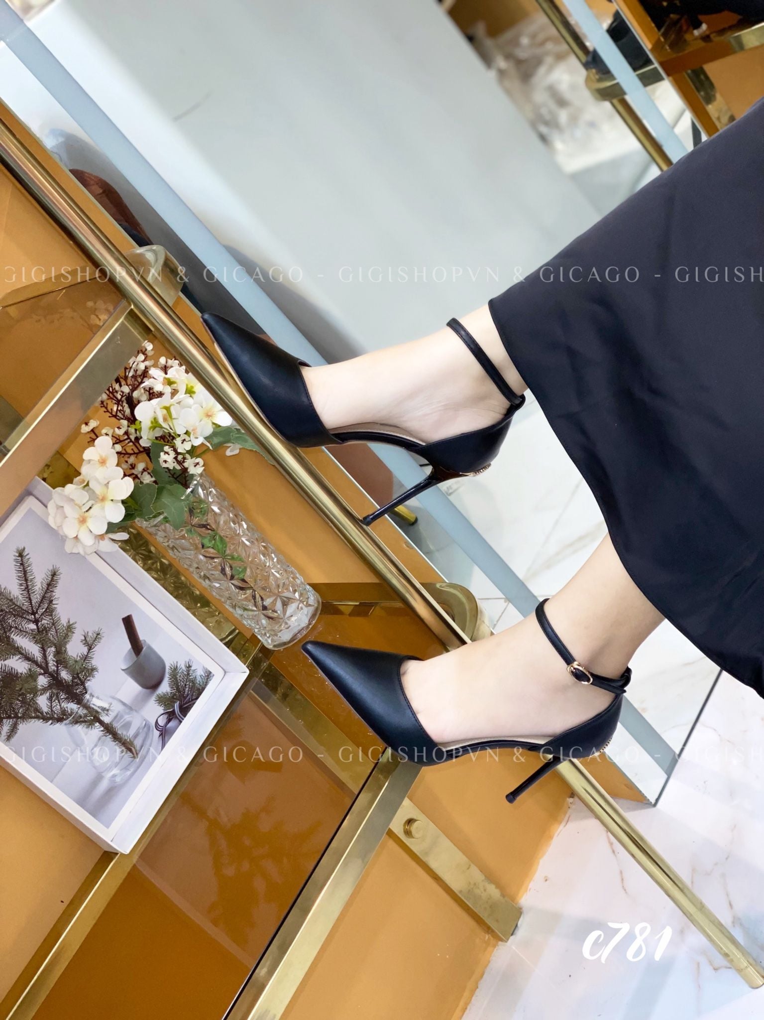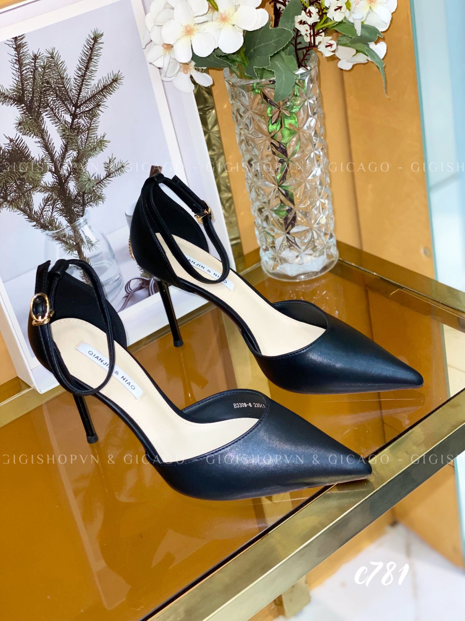 Cao gót nhọn da trơn cài quai C781
