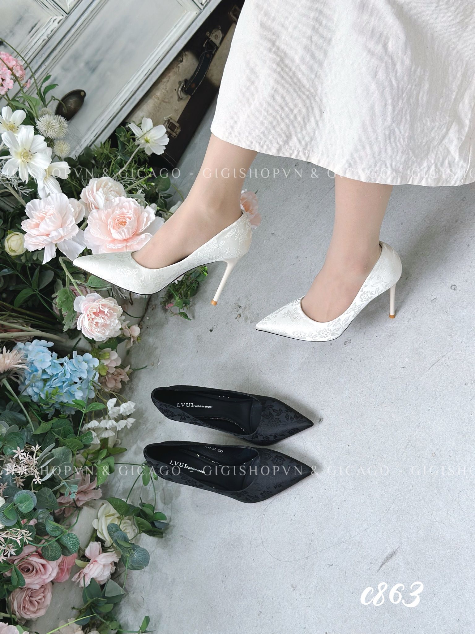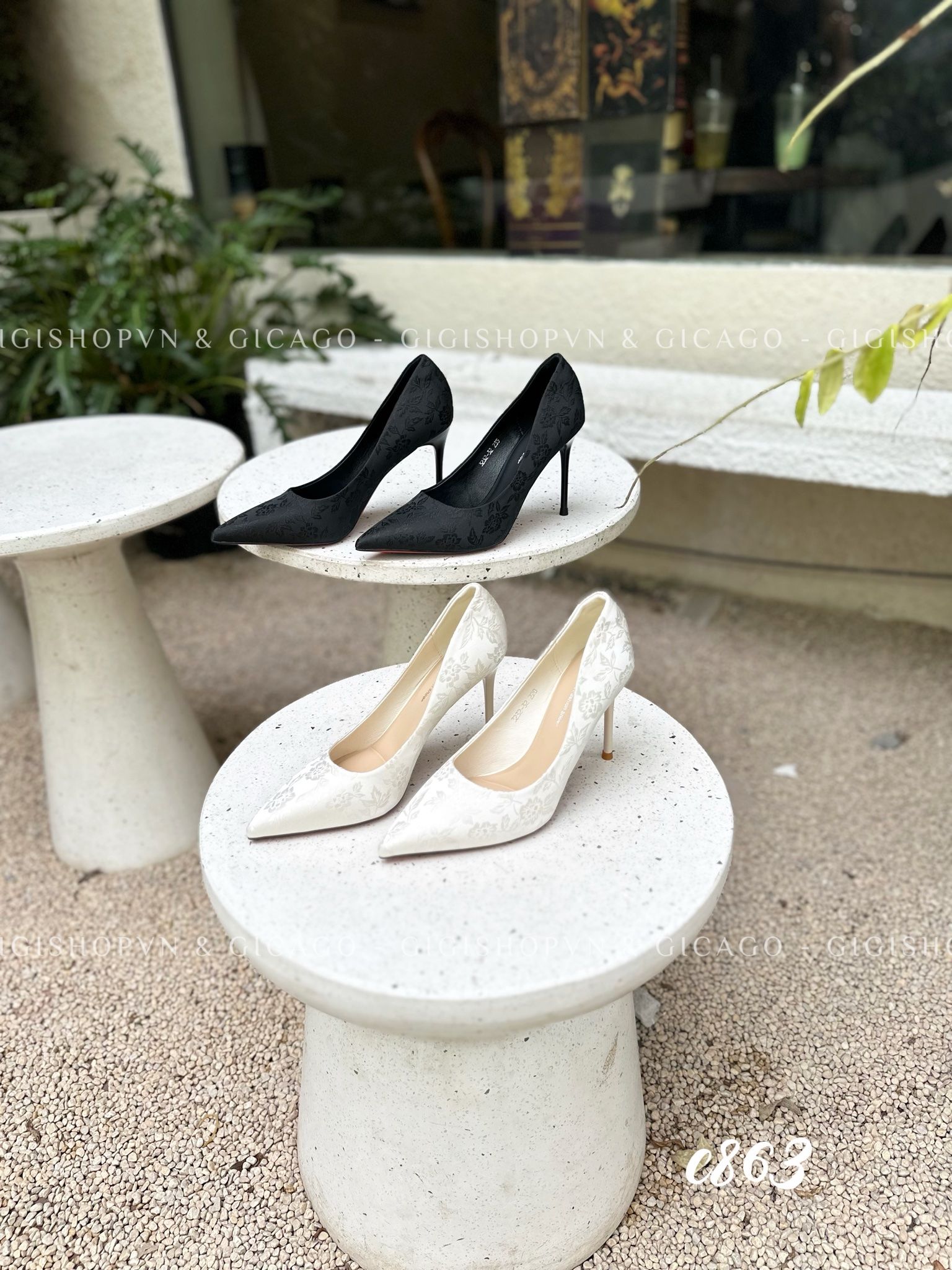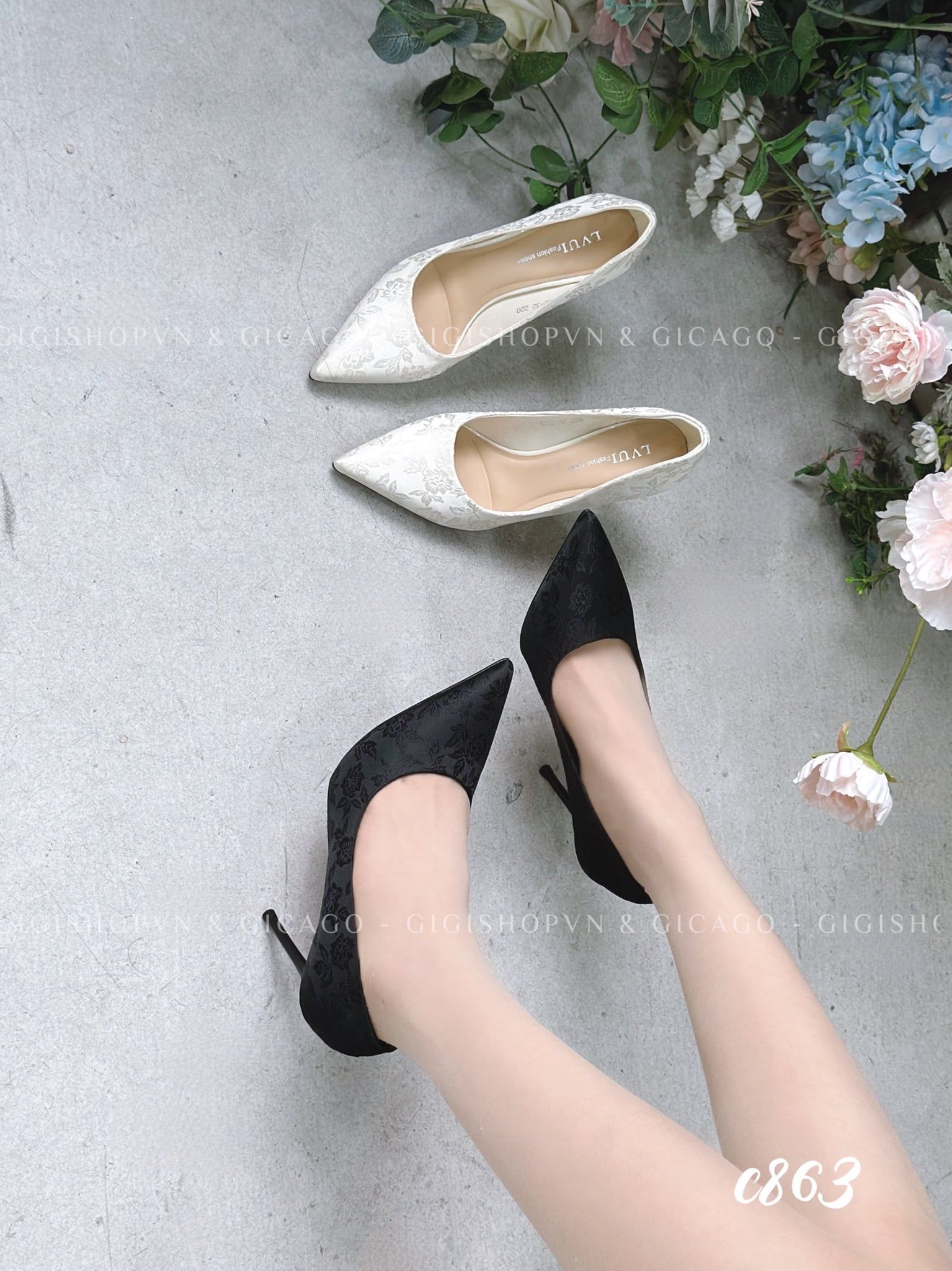 Cao gót nhọn gấm da trơn C863