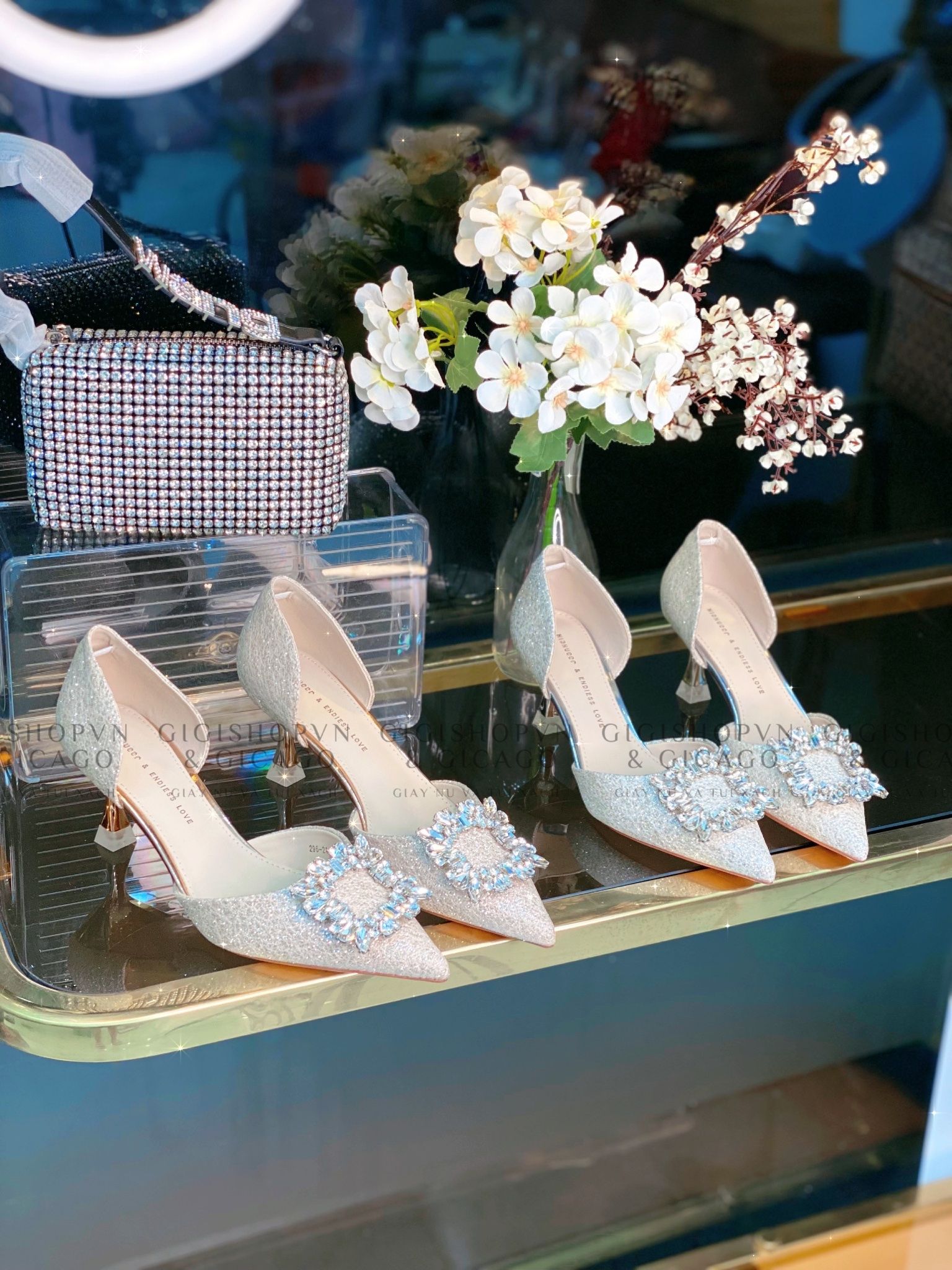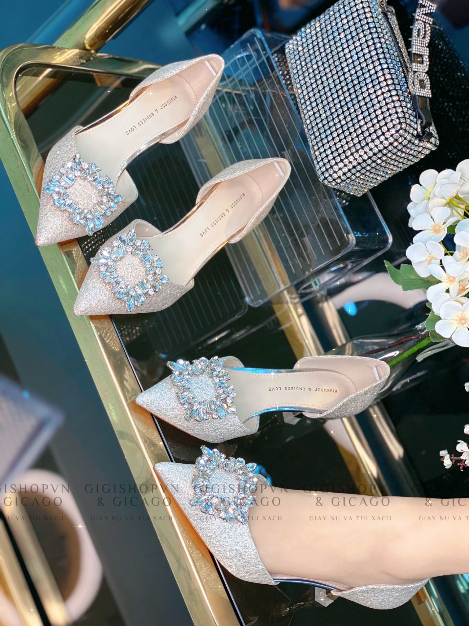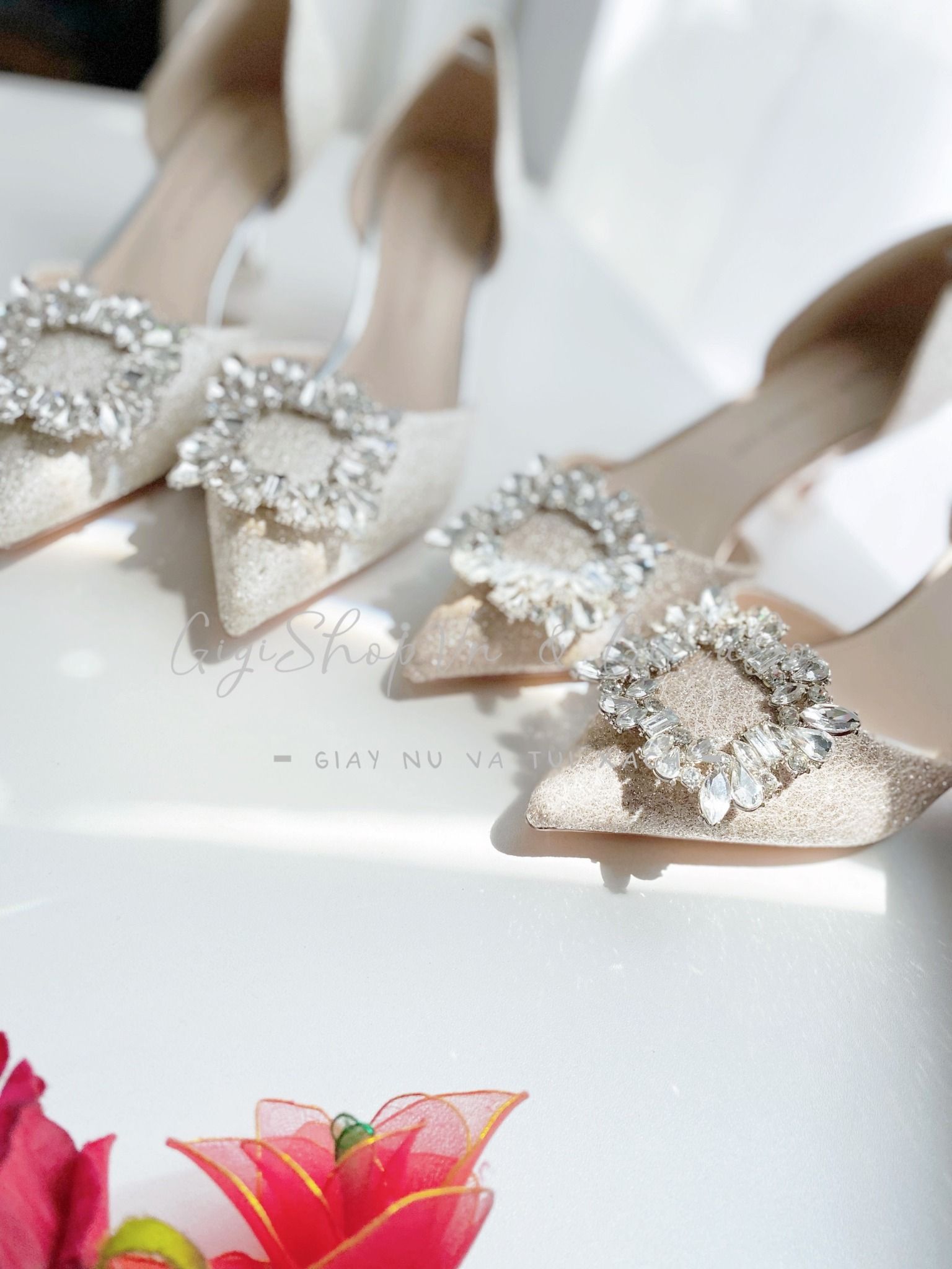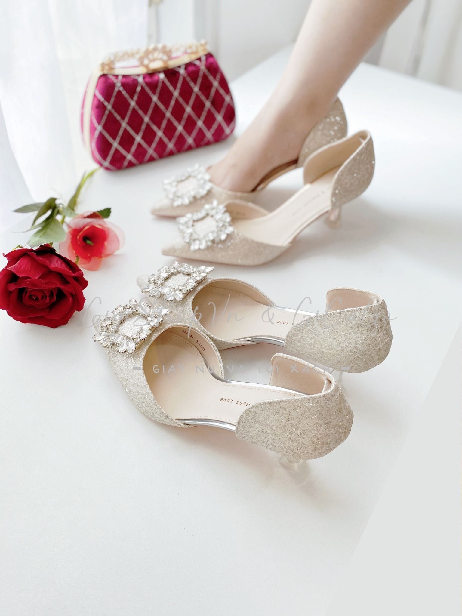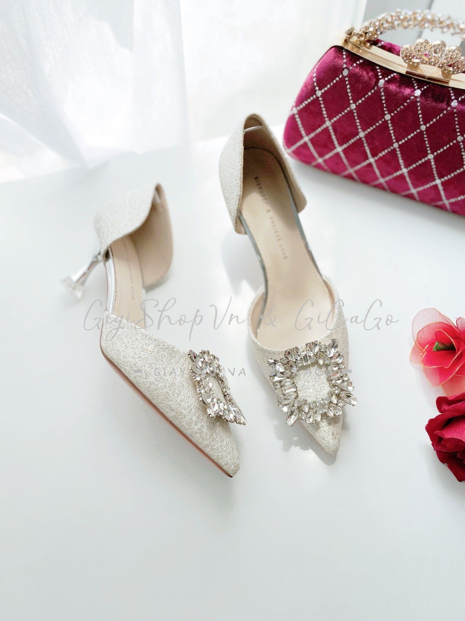 Cao gót nhọn hở eo bling khoá đá tiệc C655