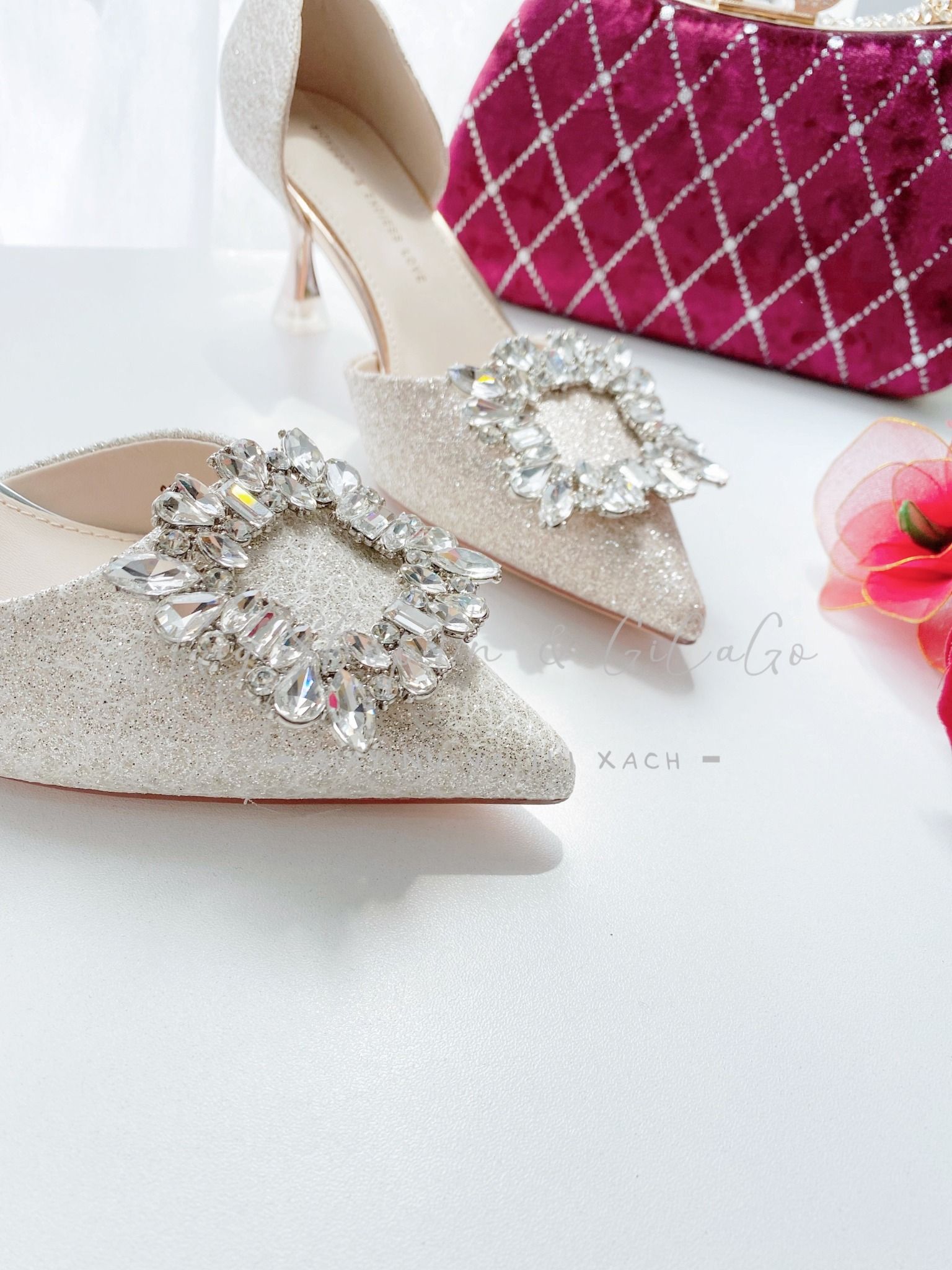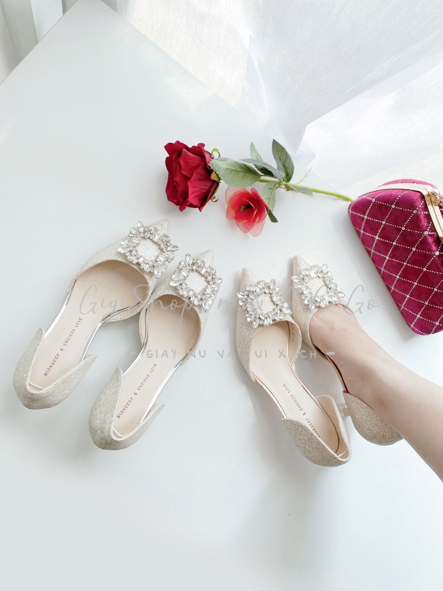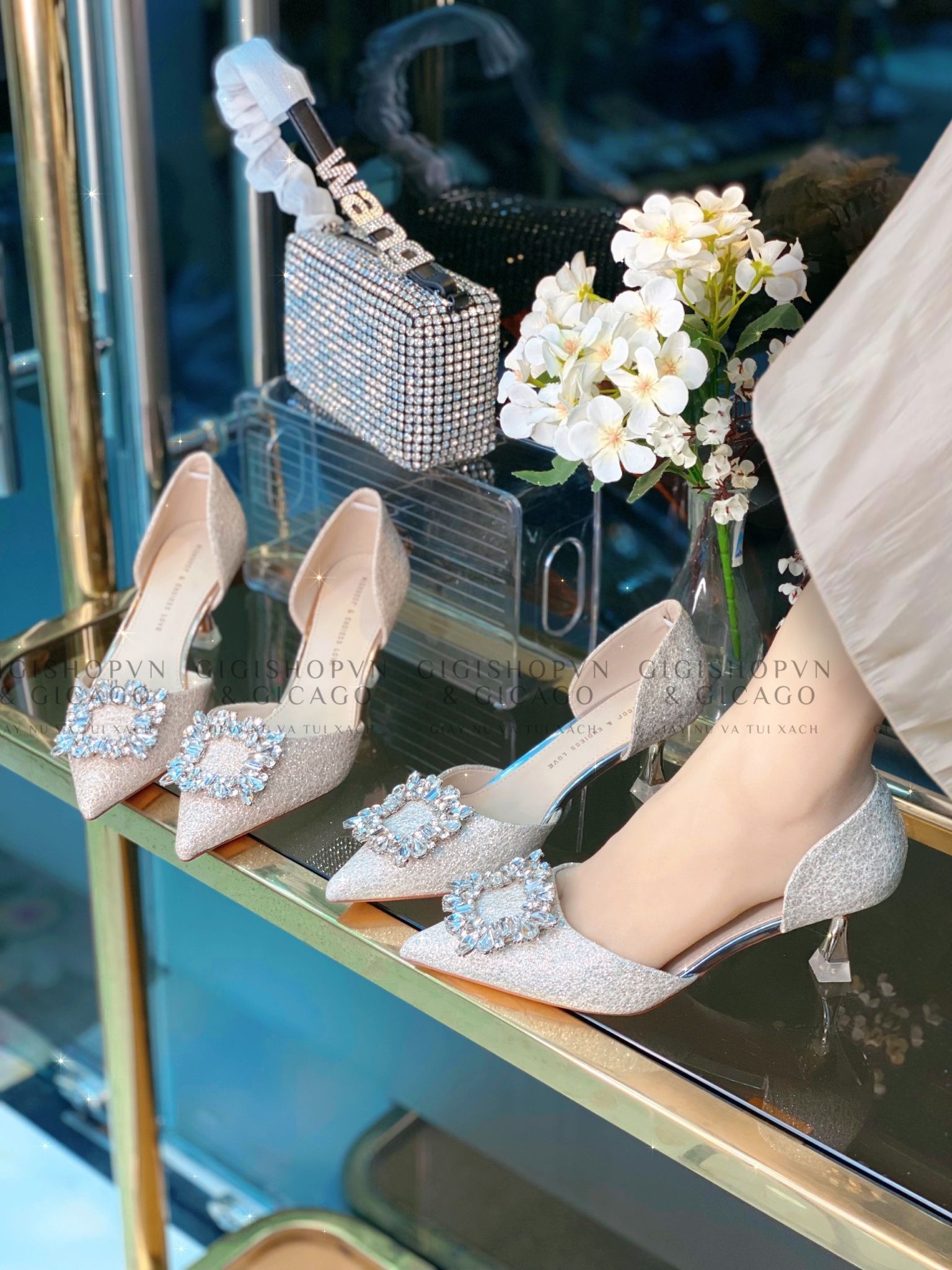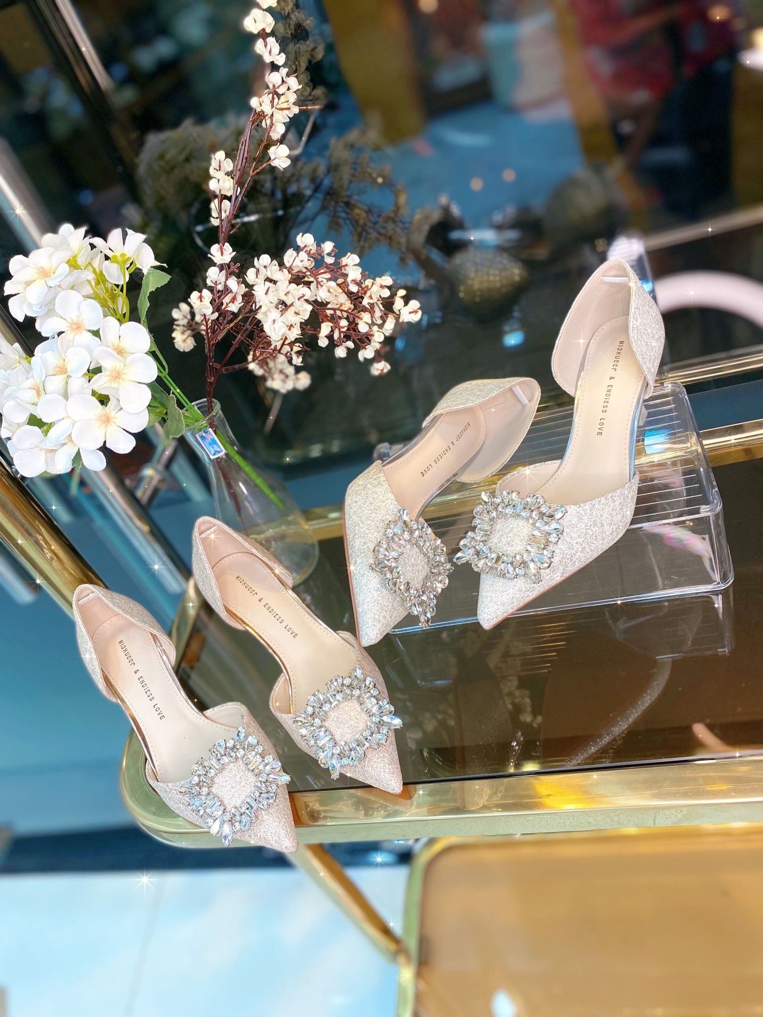Cao gót nhọn hở eo bling khoá đá tiệc C655