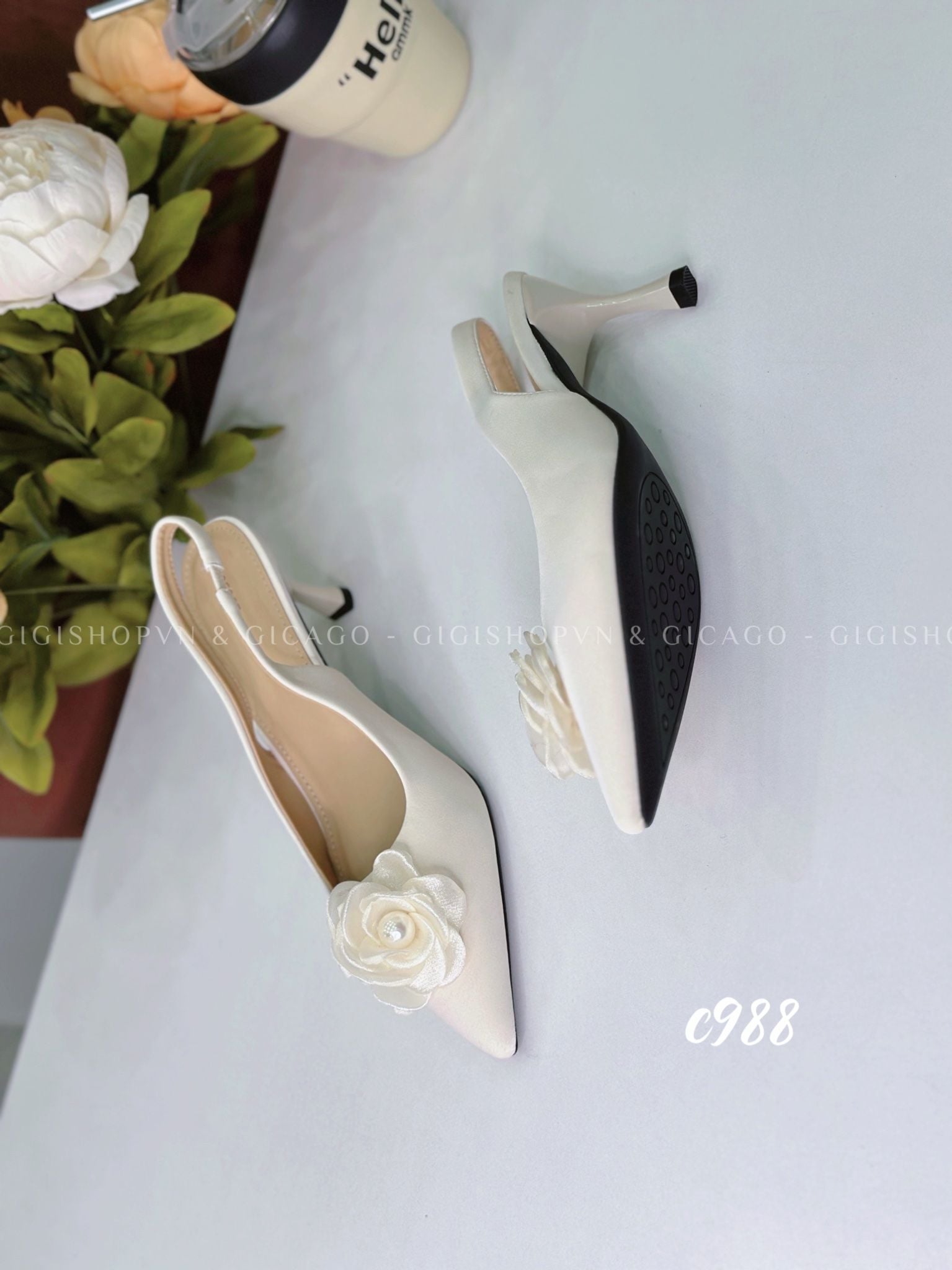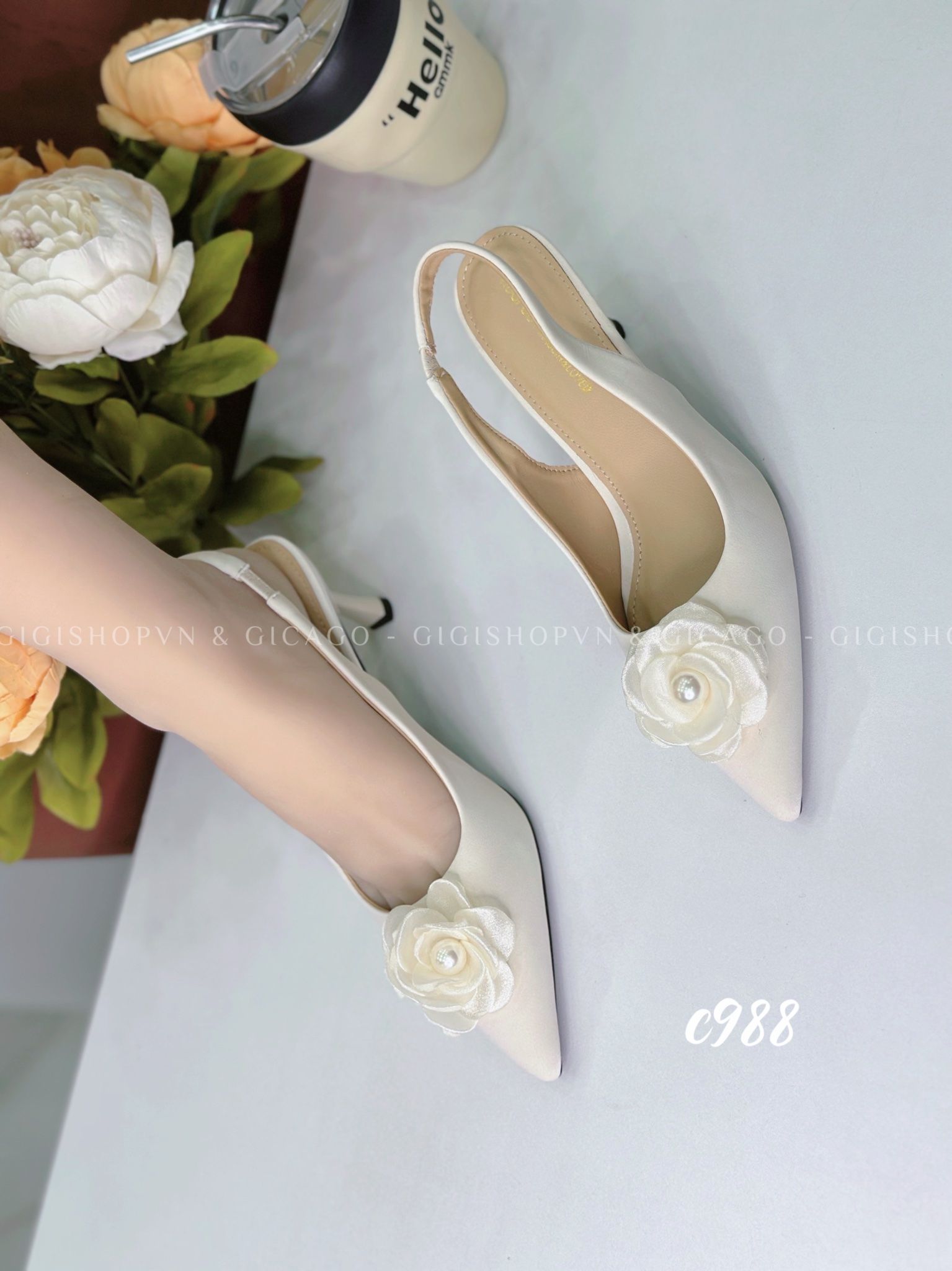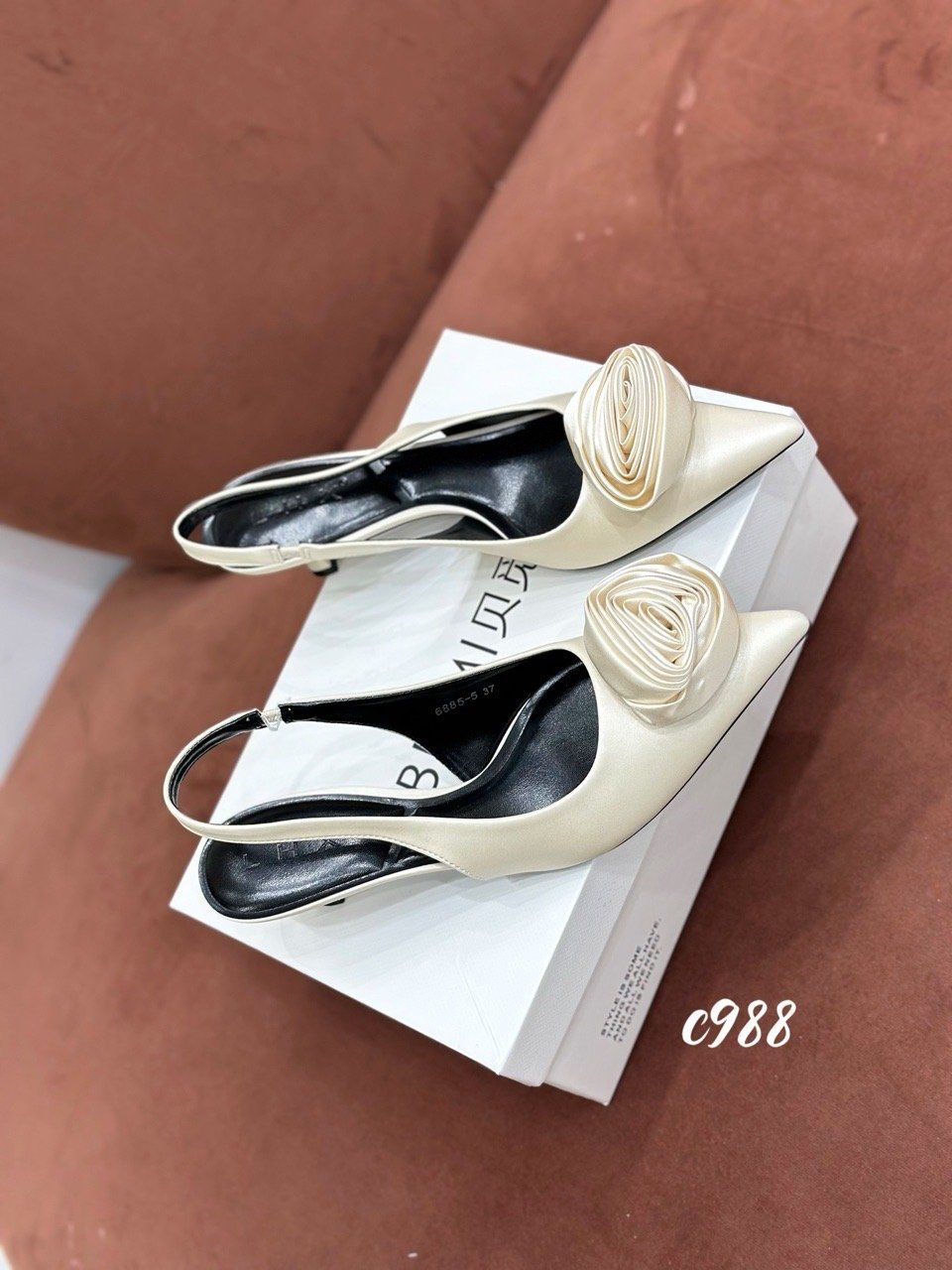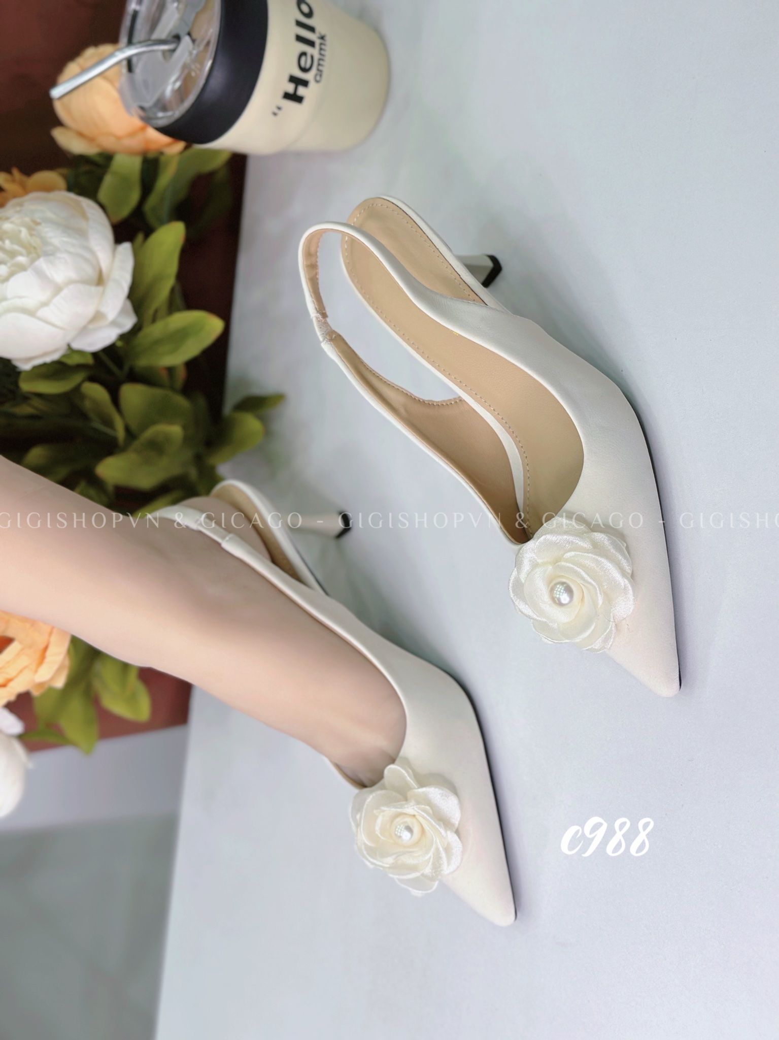 Cao gót nhọn hở gót Hoa C988