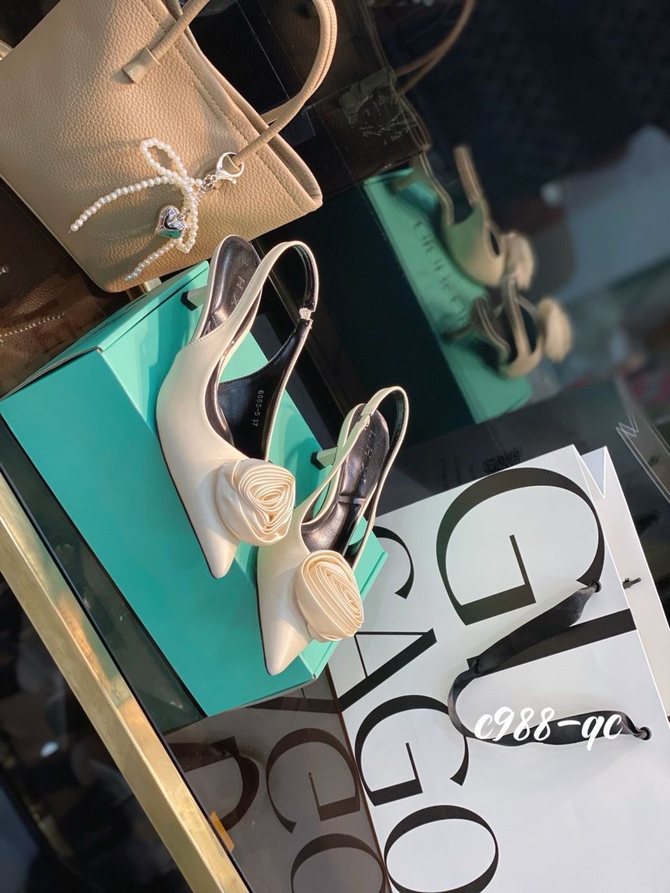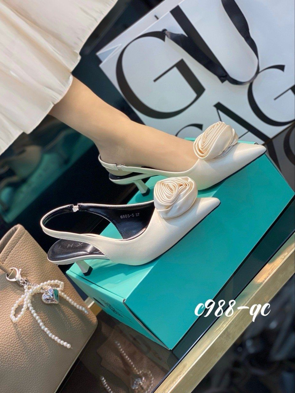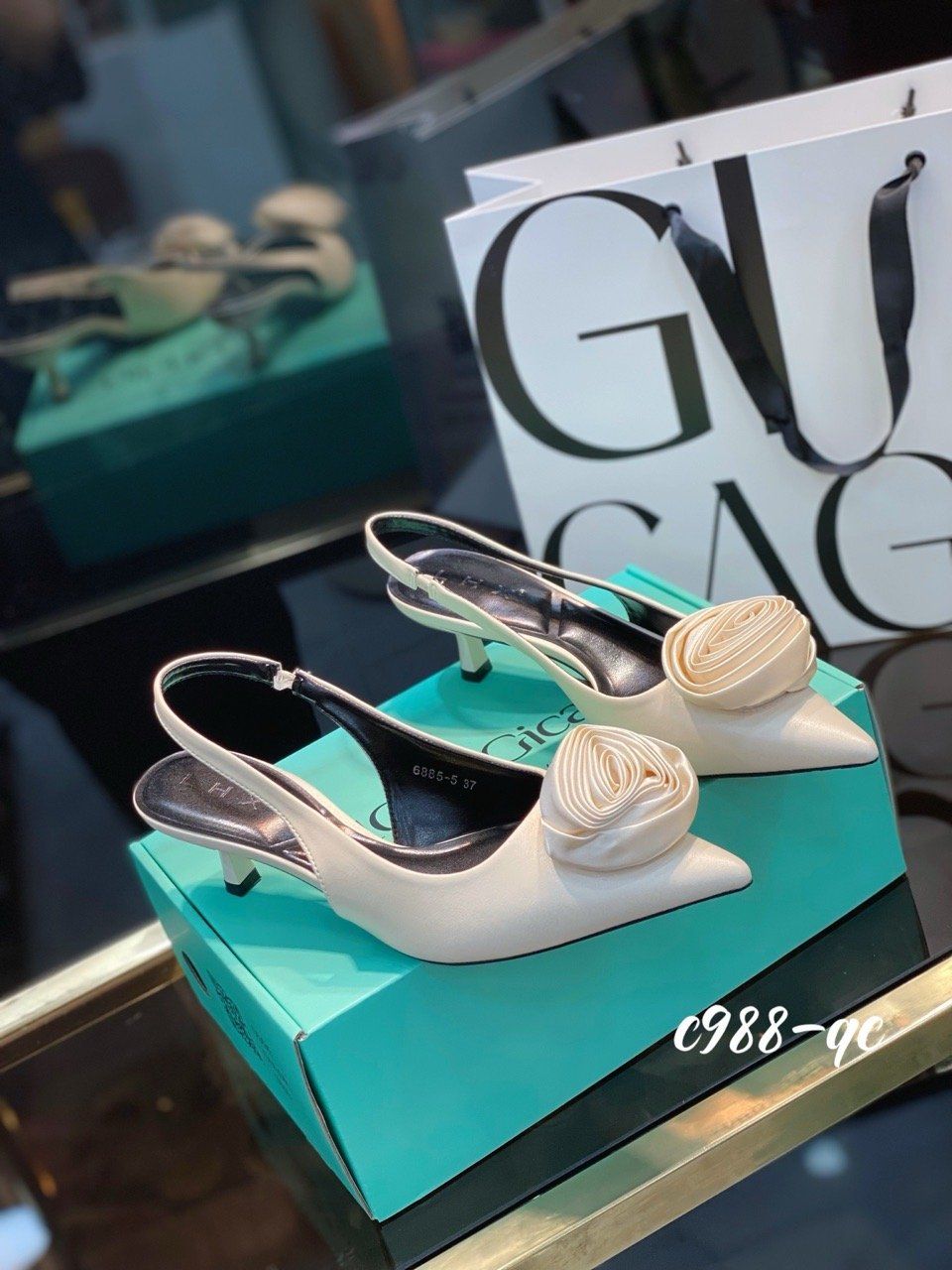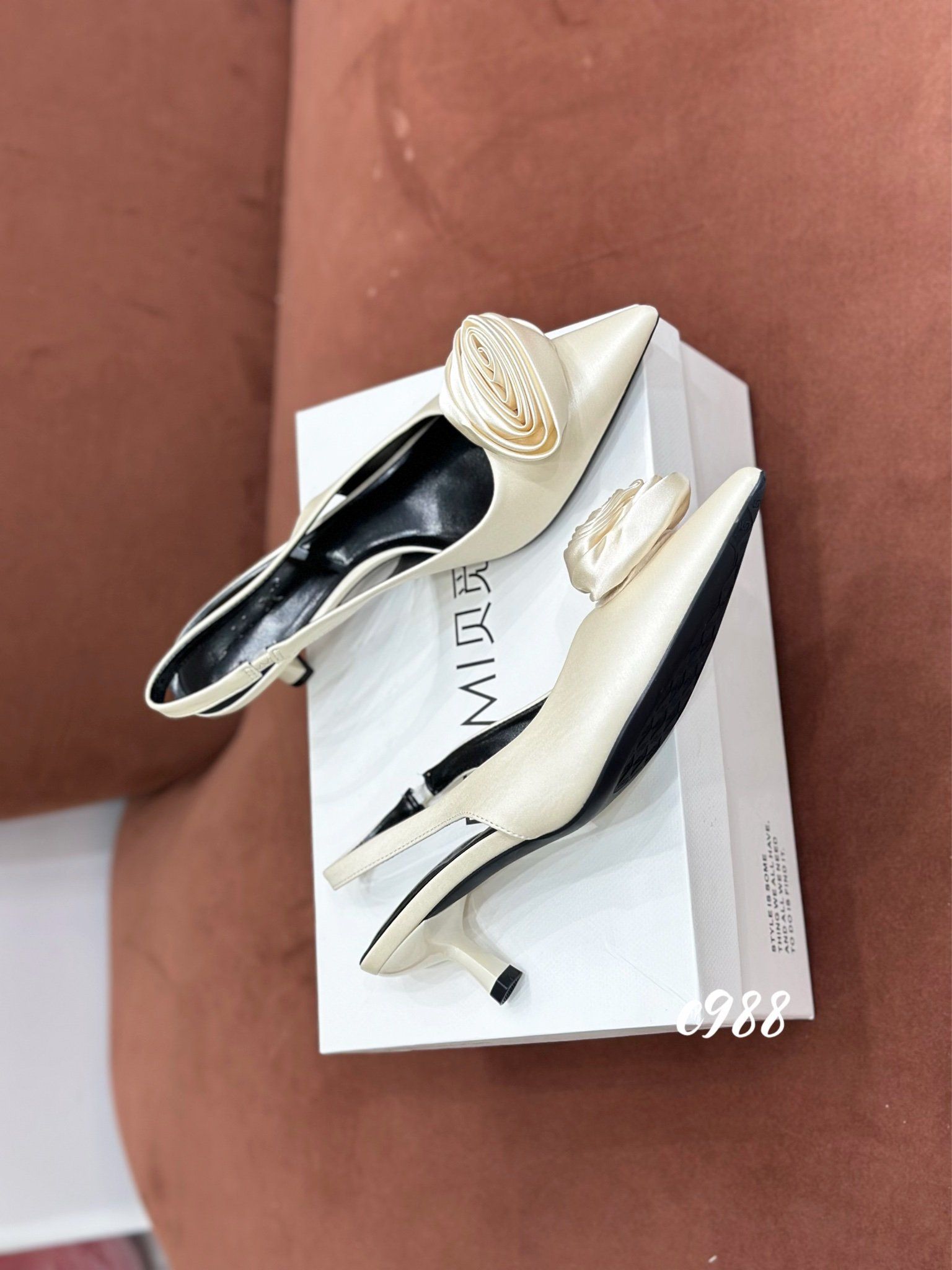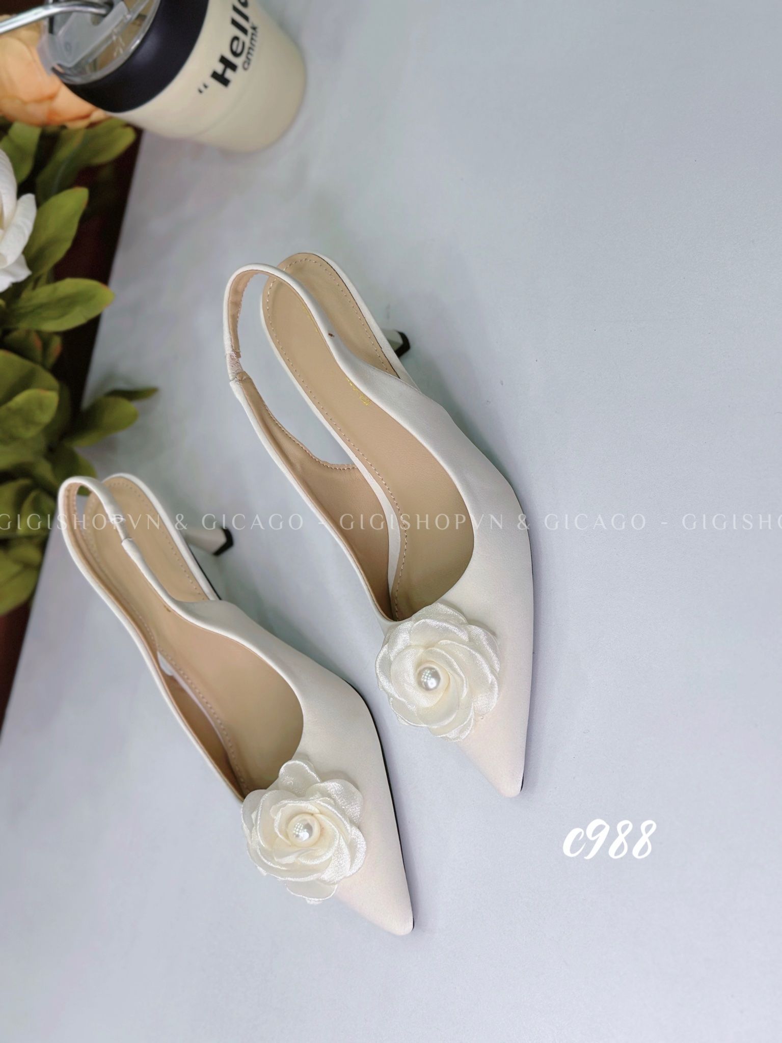 Cao gót nhọn hở gót Hoa C988