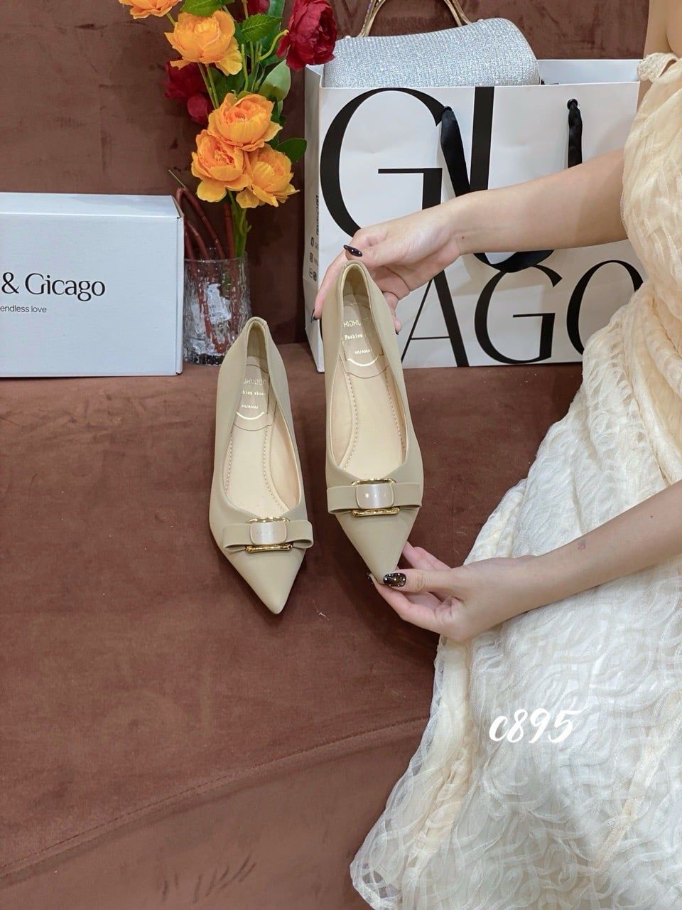 Cao gót nhọn nơ Fashion C895