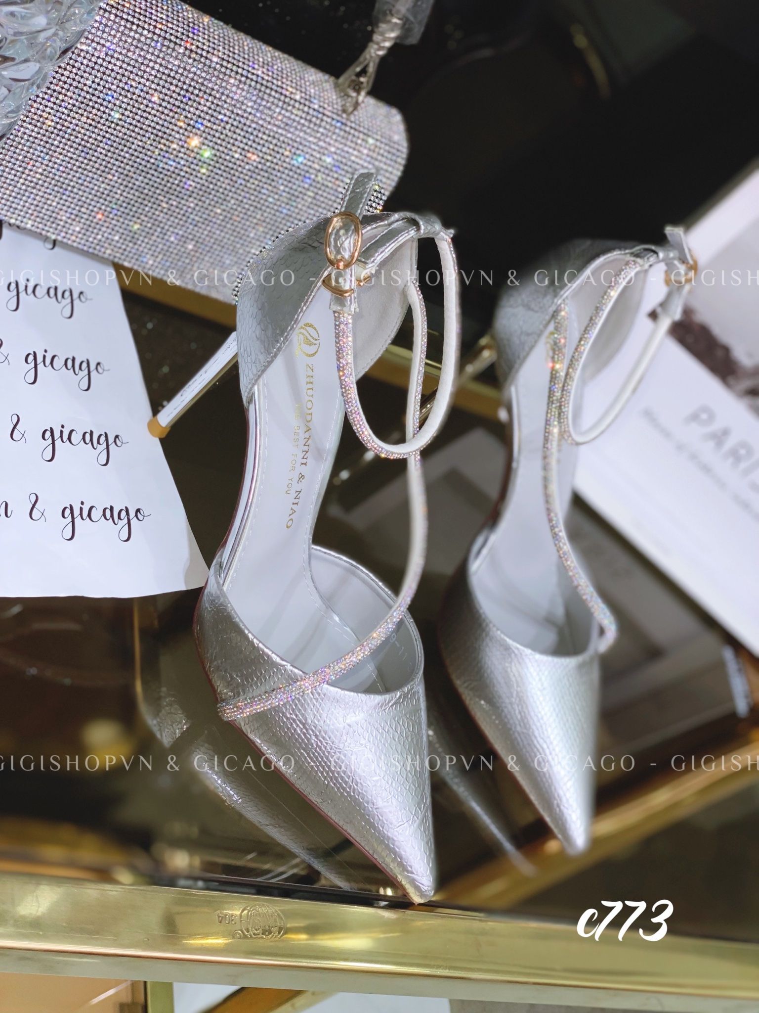 Cao gót nhọn phối dây C773