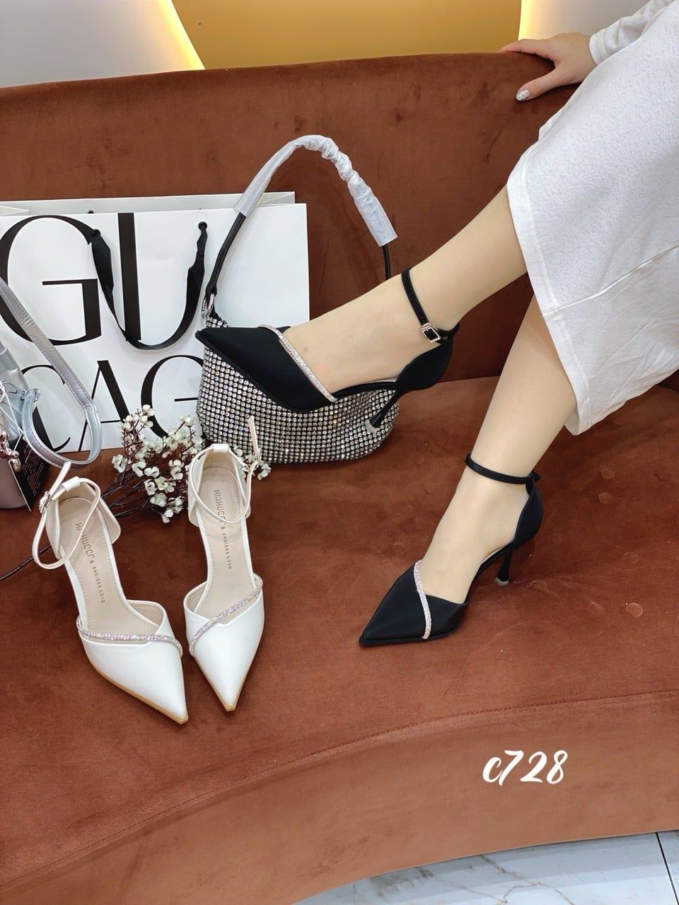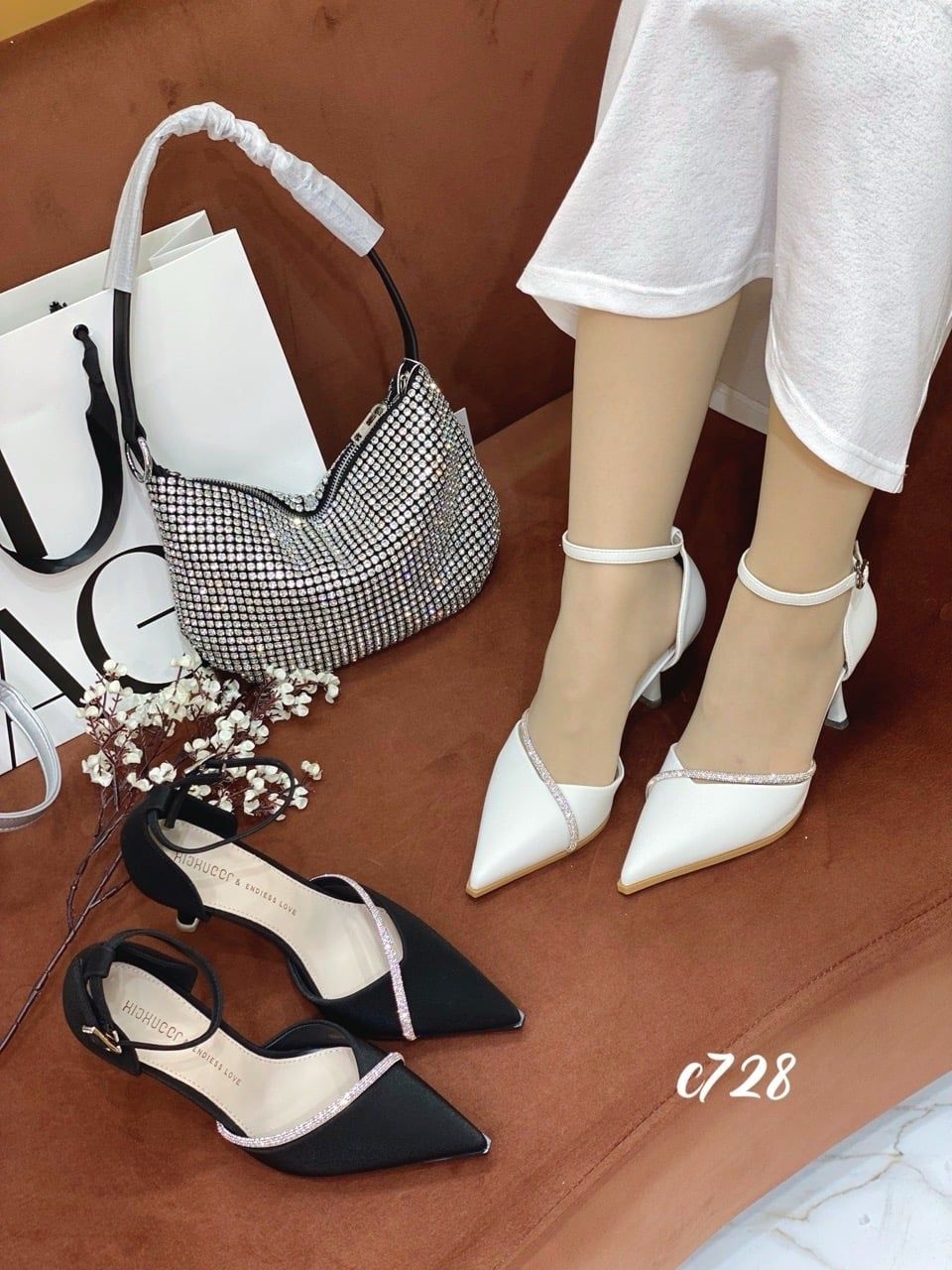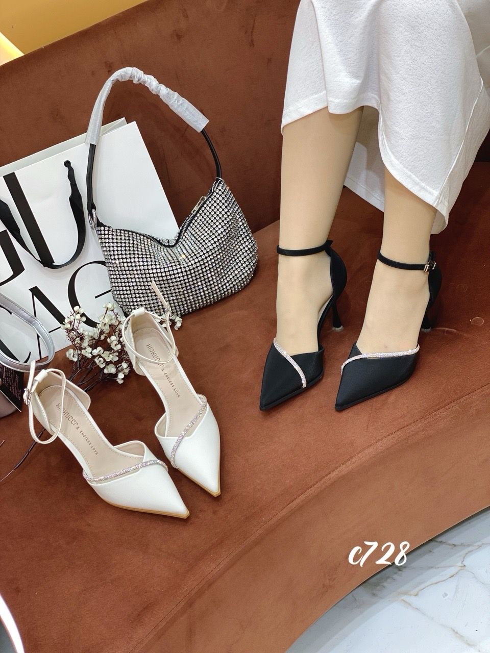 Cao gót nhọn phối dây đá WD C728