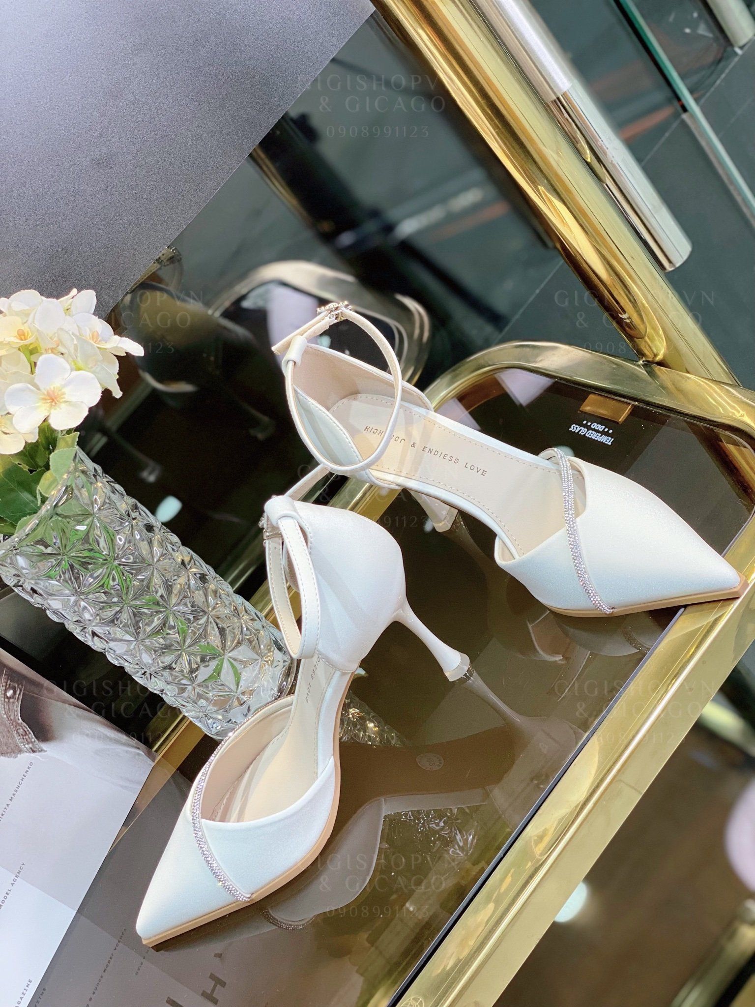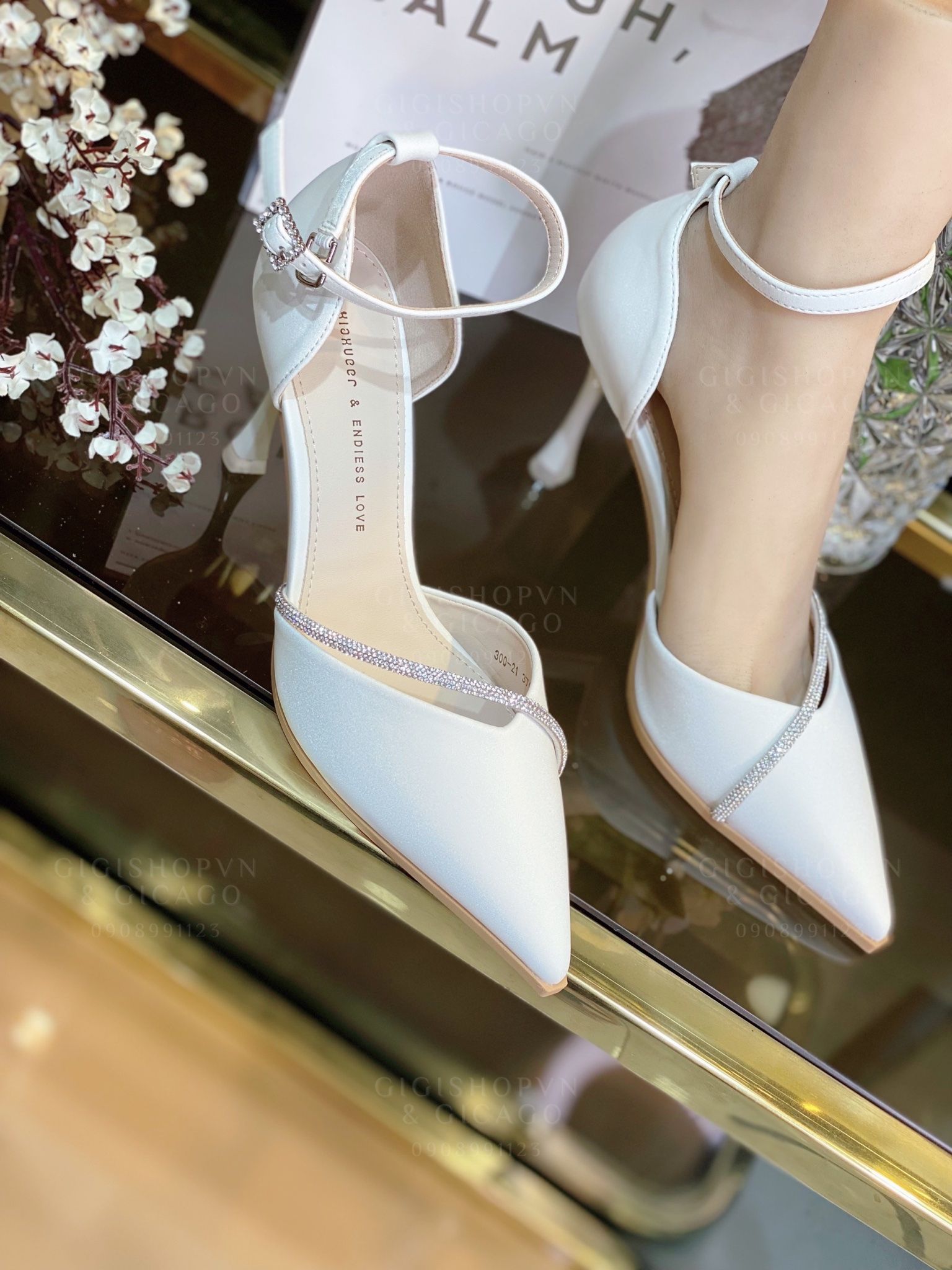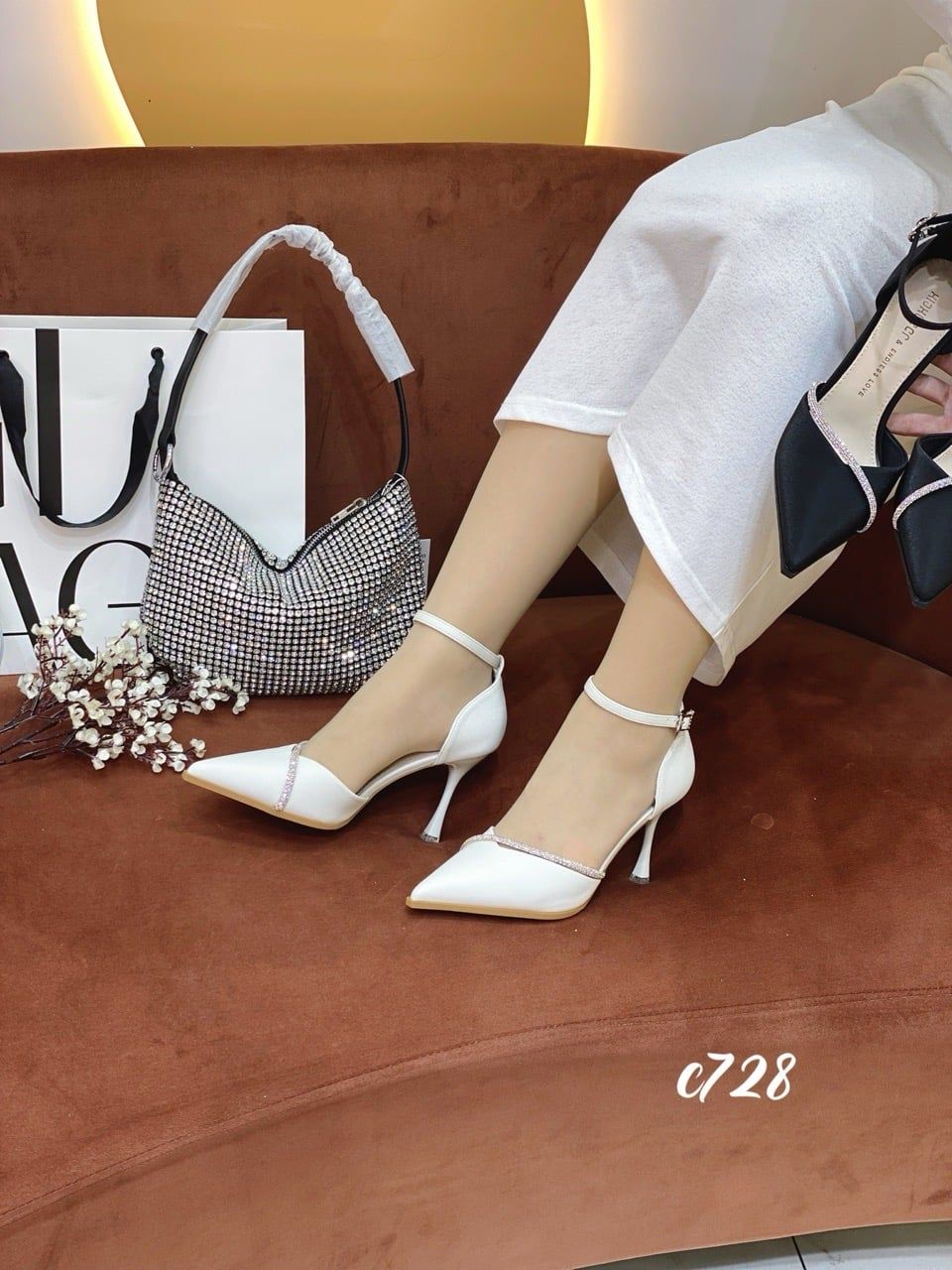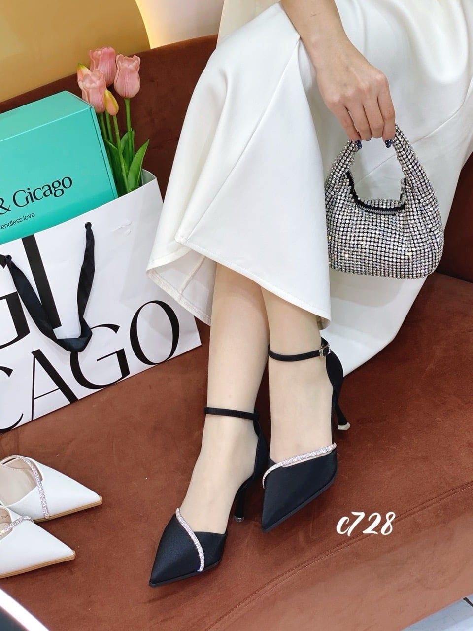Cao gót nhọn phối dây đá WD C728