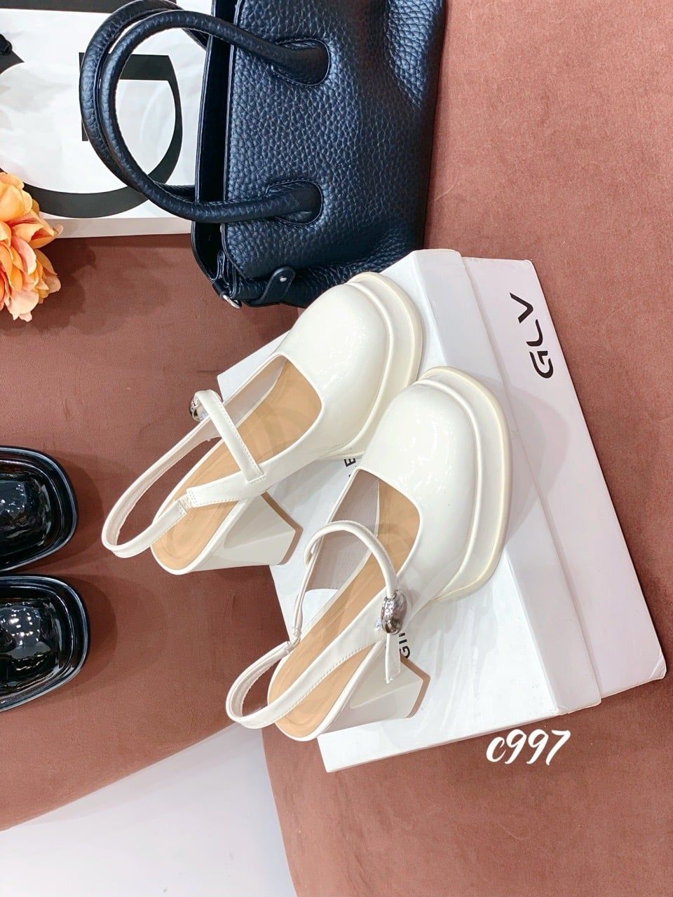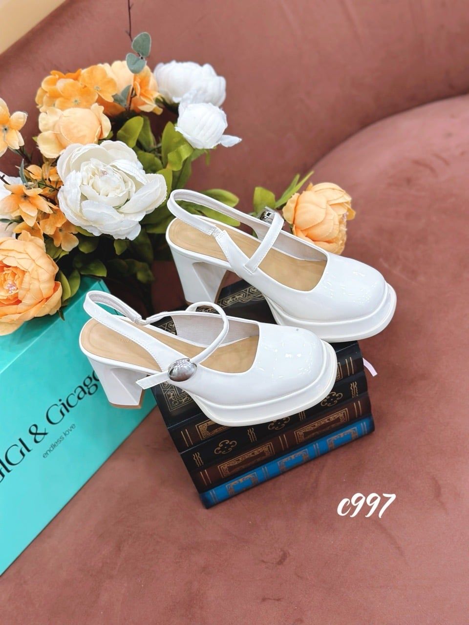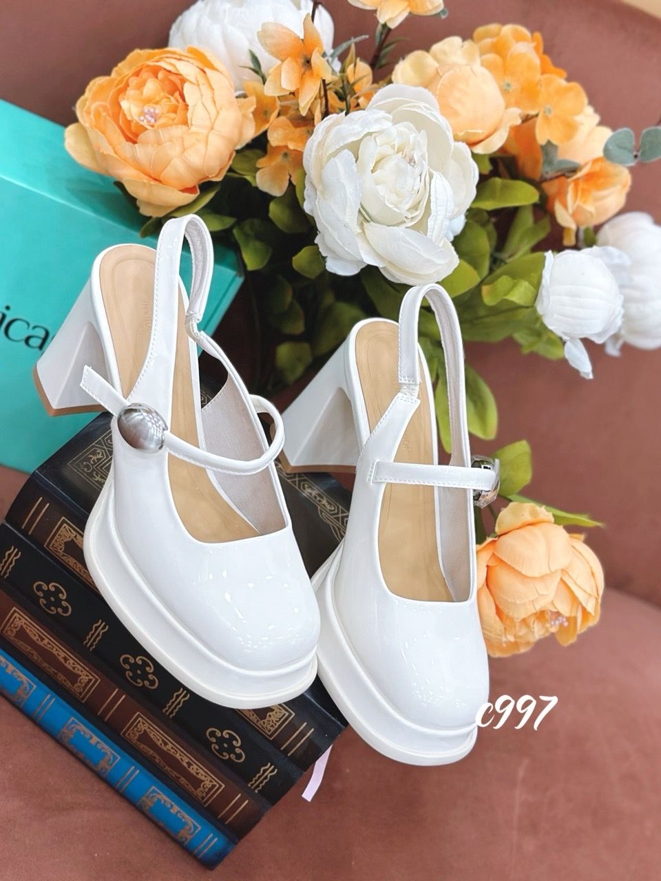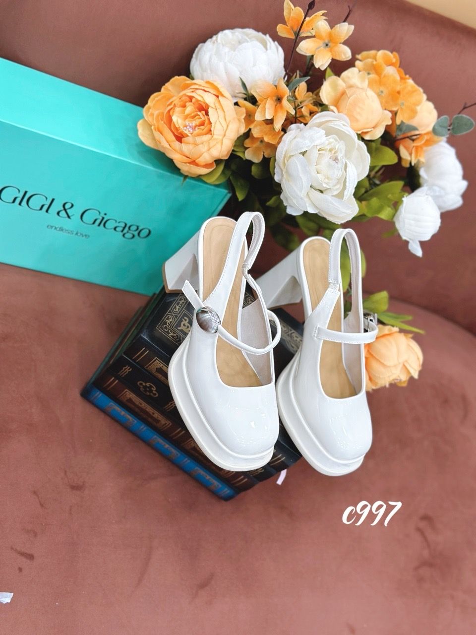 Cao gót vuông mũi tròn đế đúp hở gót Loli C997