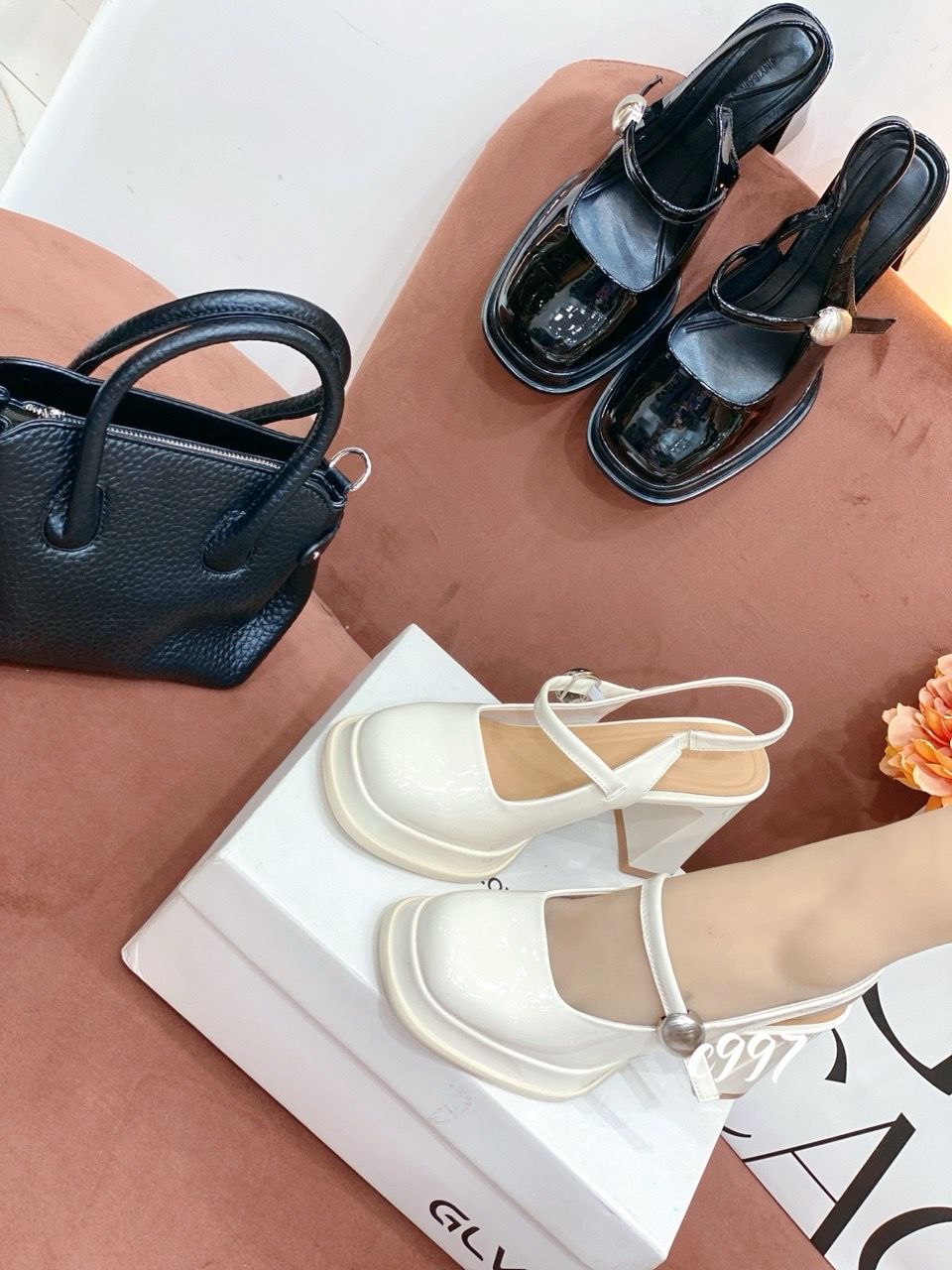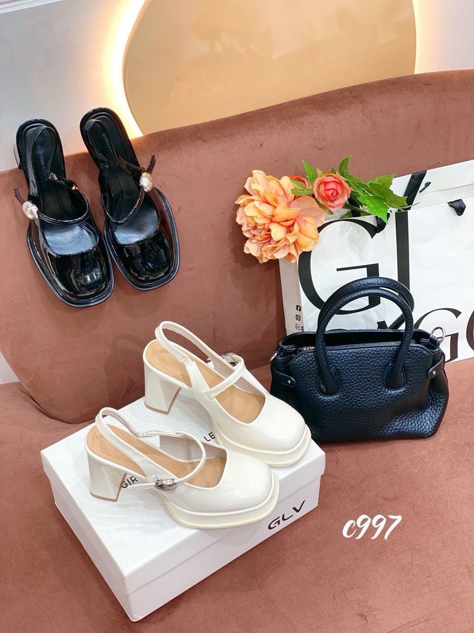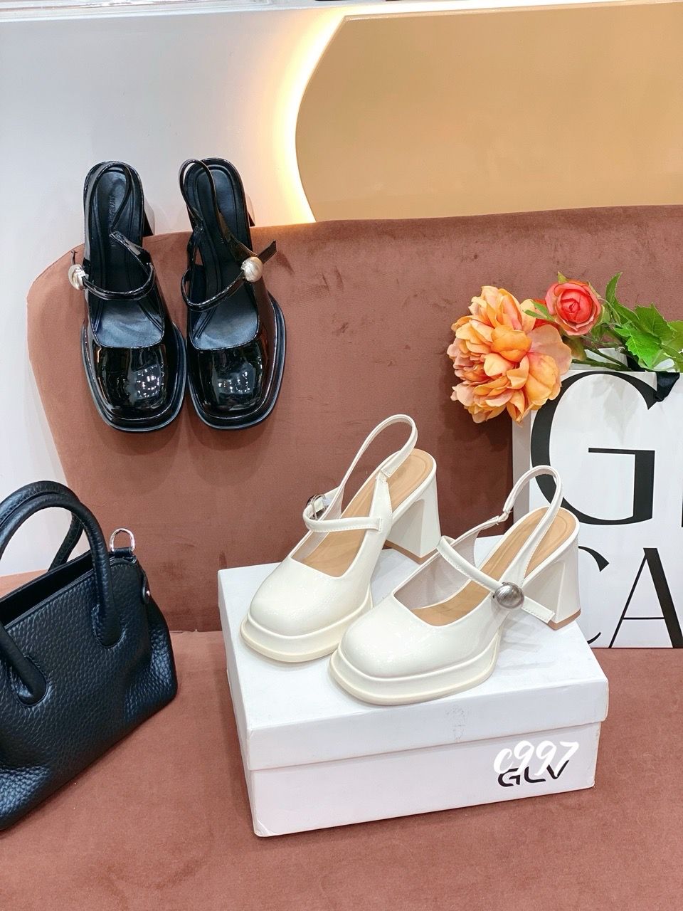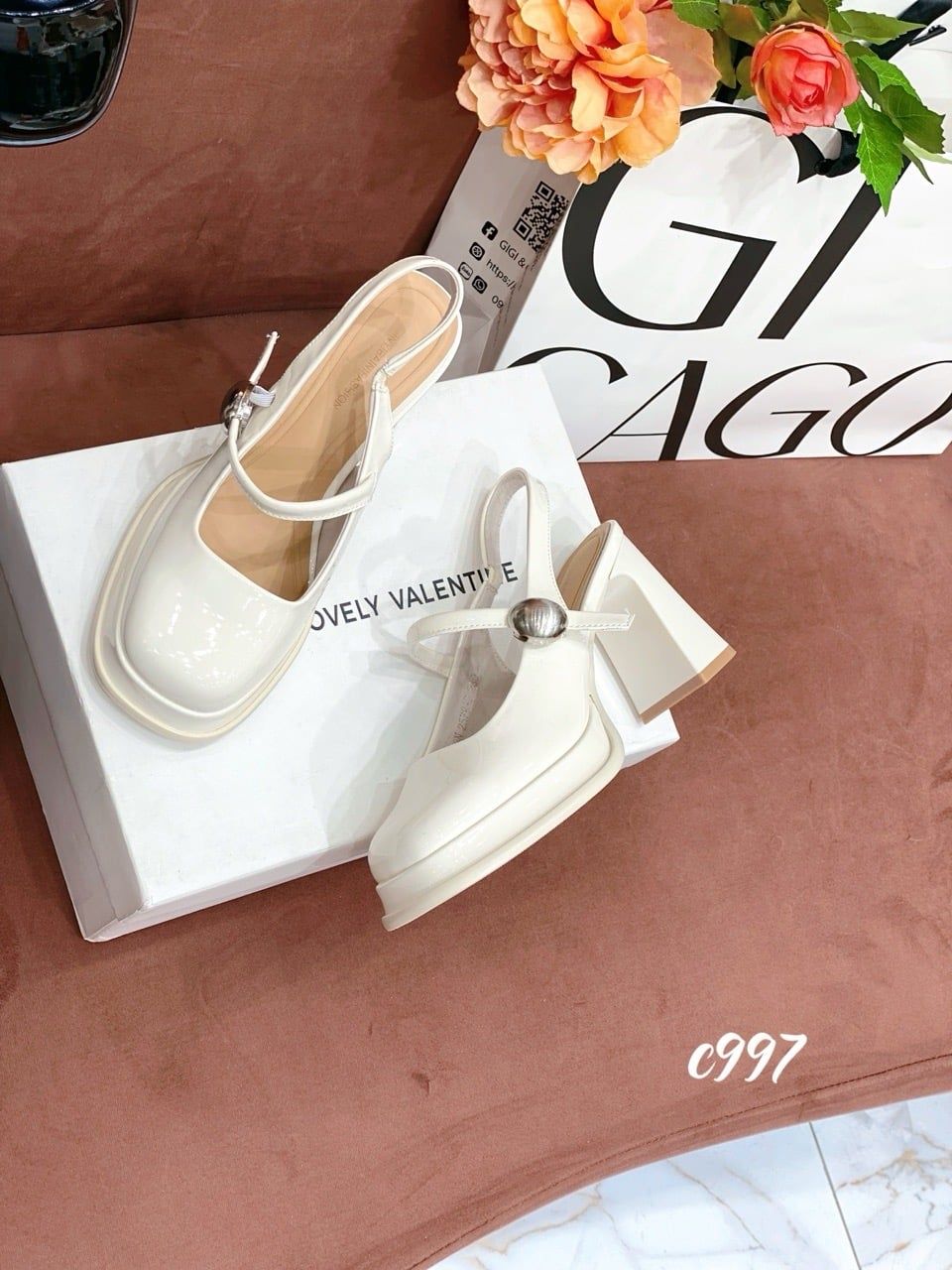 Cao gót vuông mũi tròn đế đúp hở gót Loli C997