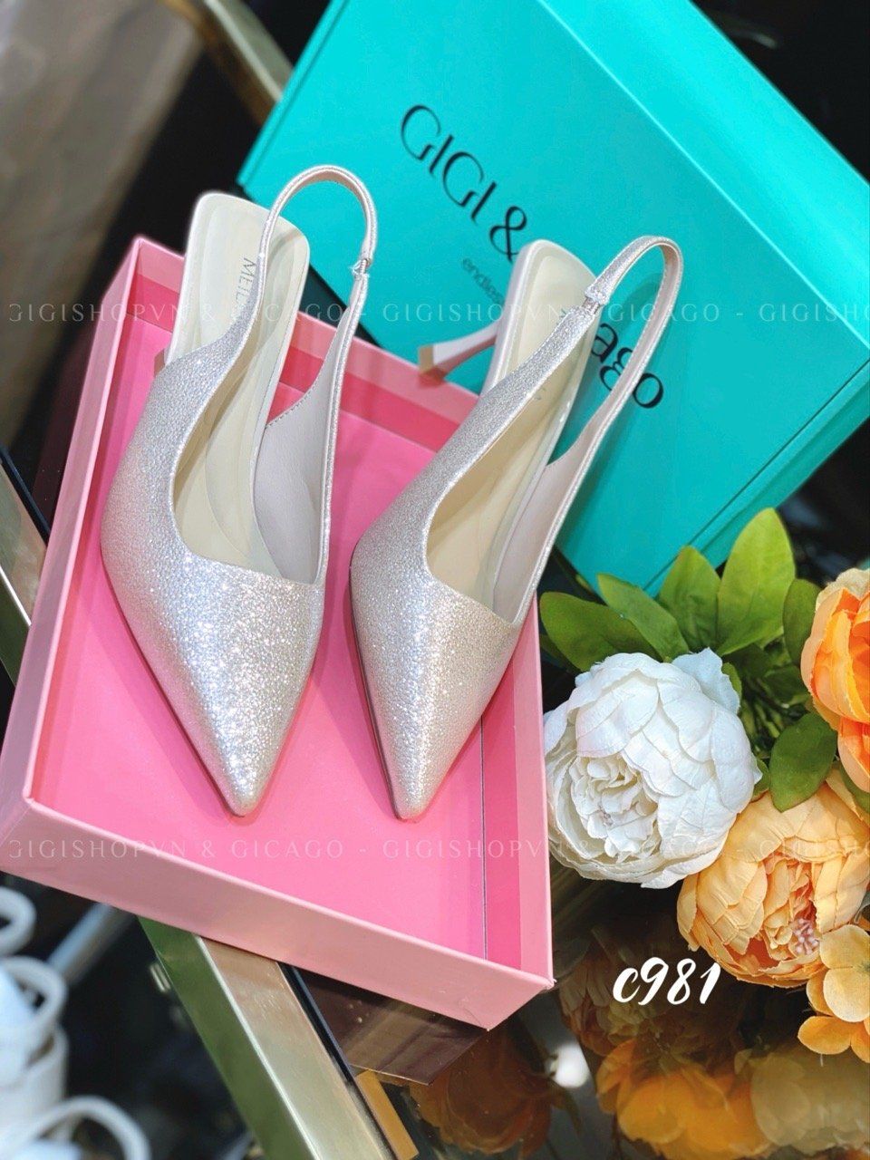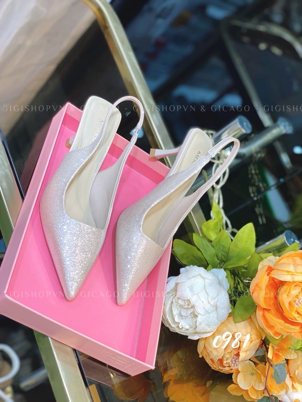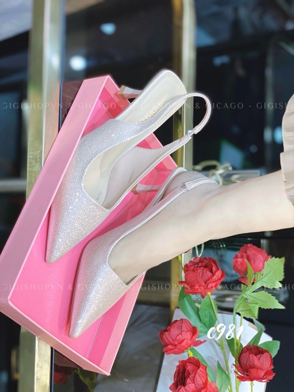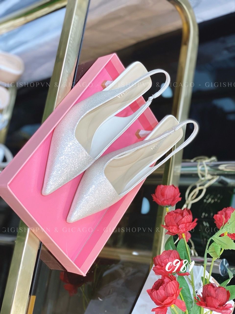 Cao gót nhọn hở gót bling C981