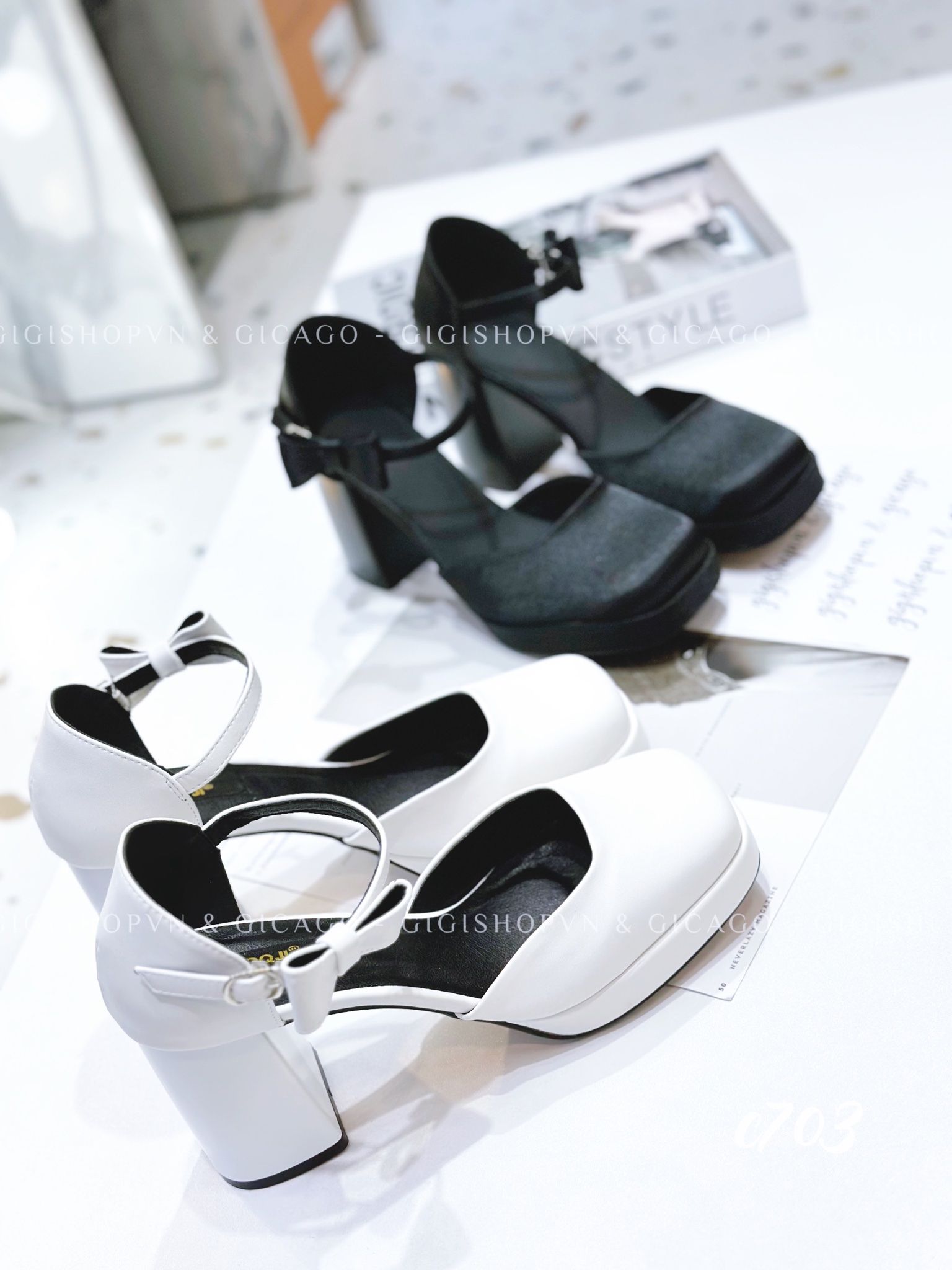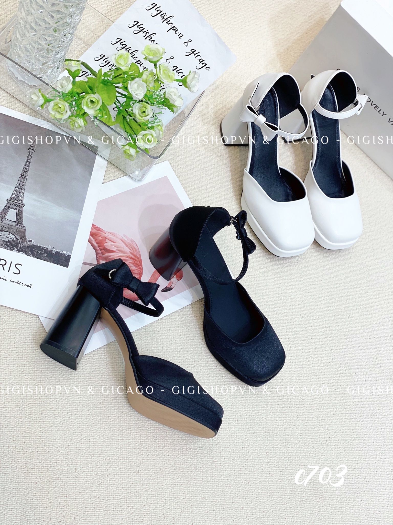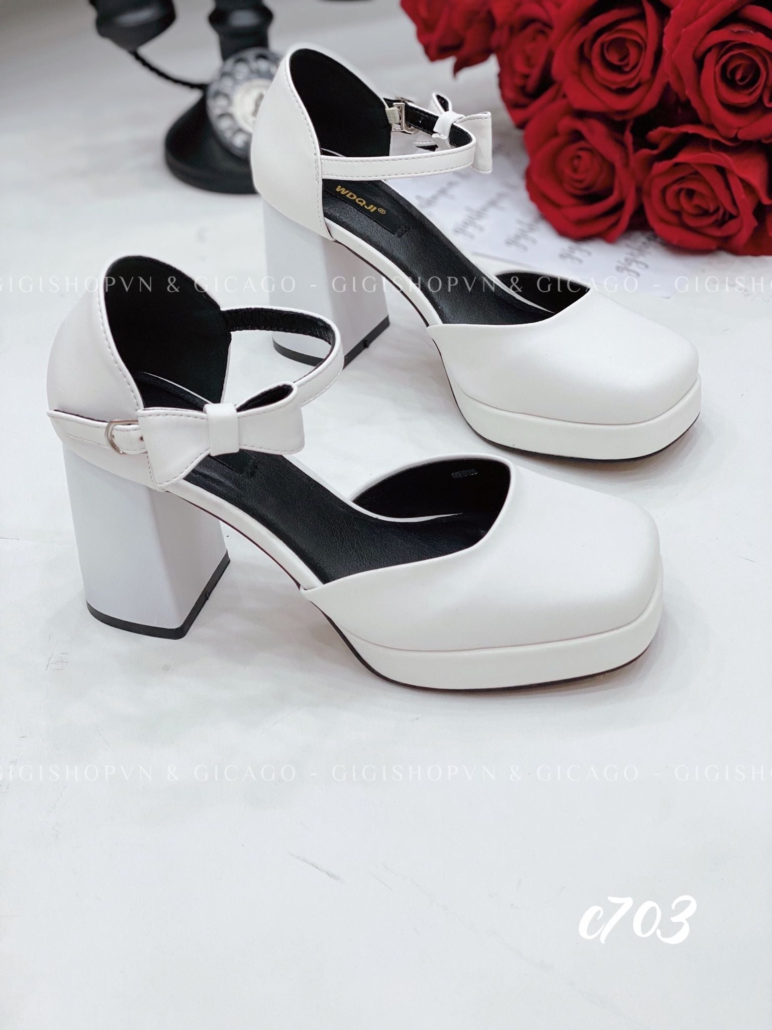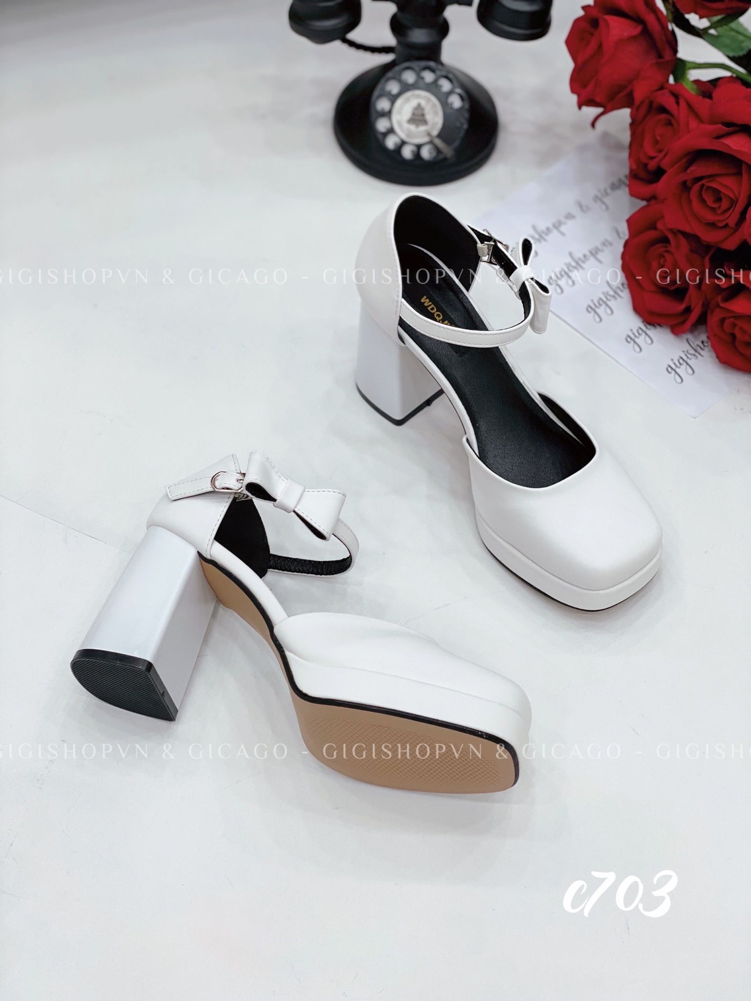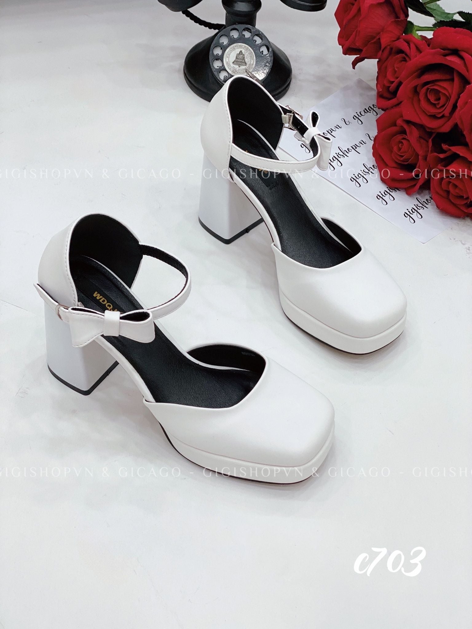 Cao gót vuông mũi tròn Nơ Mary WD C703