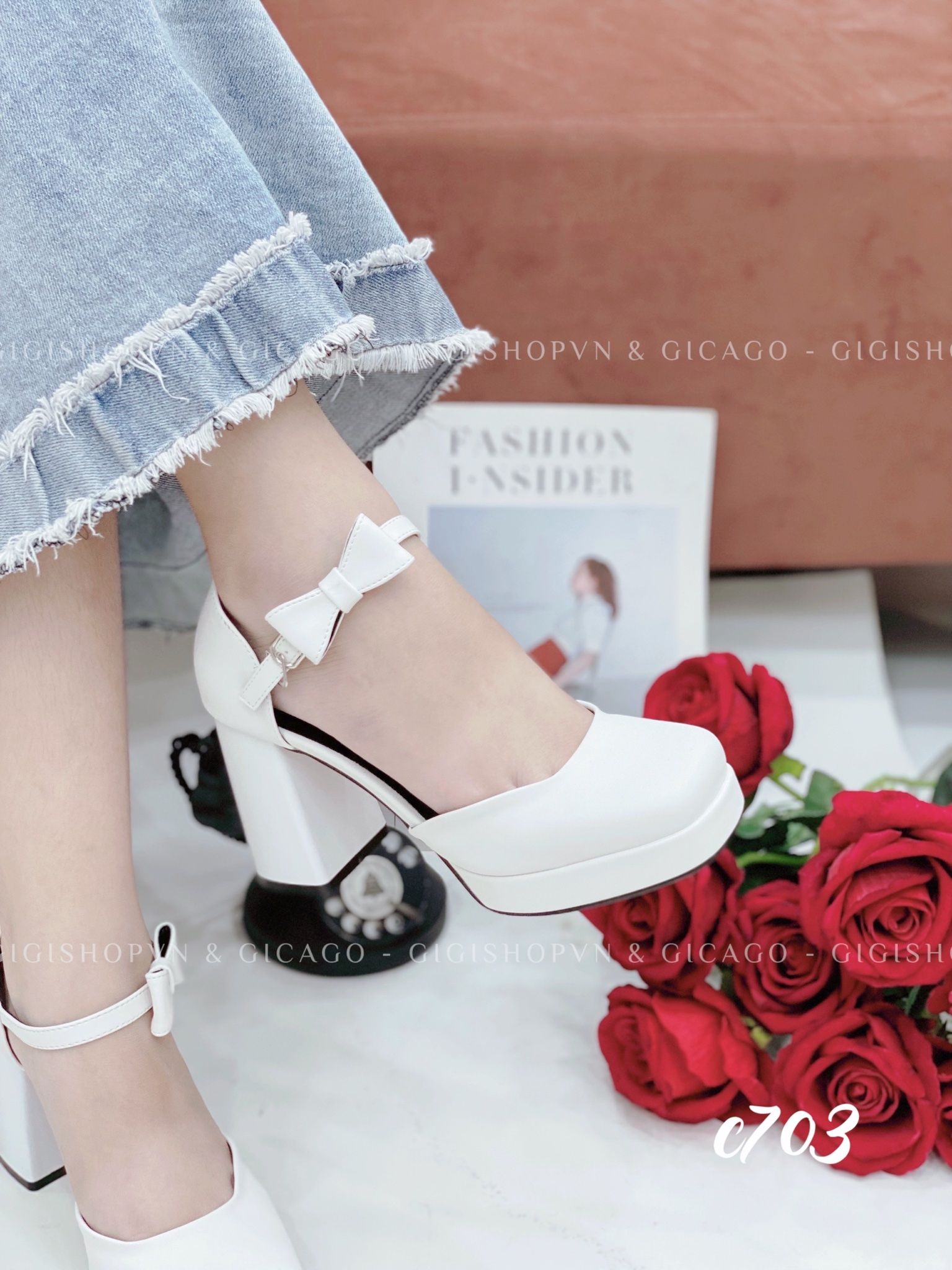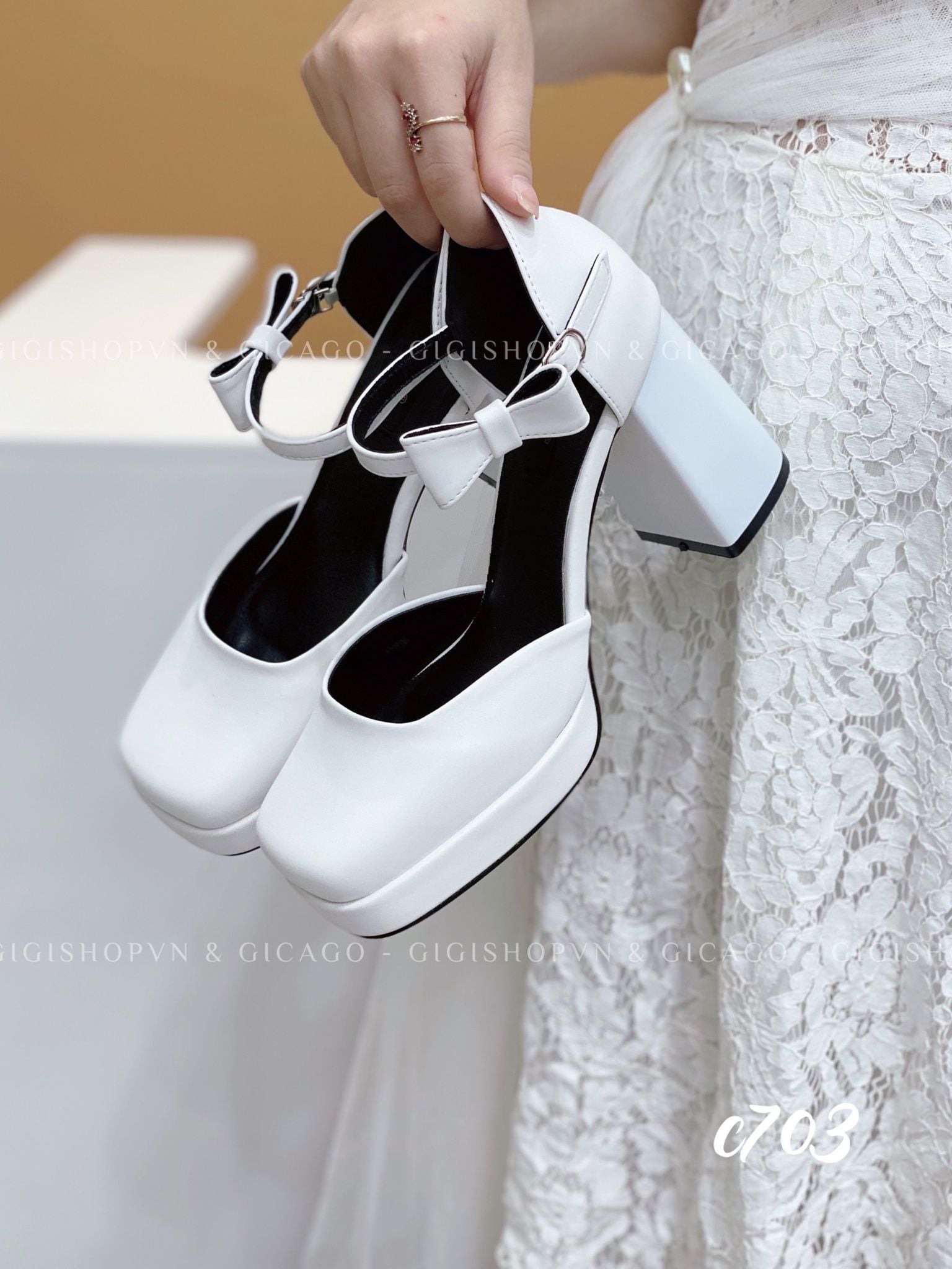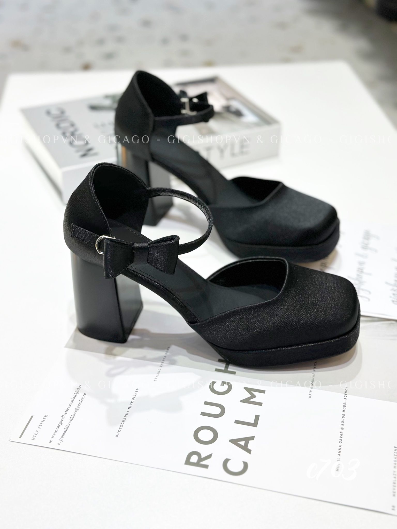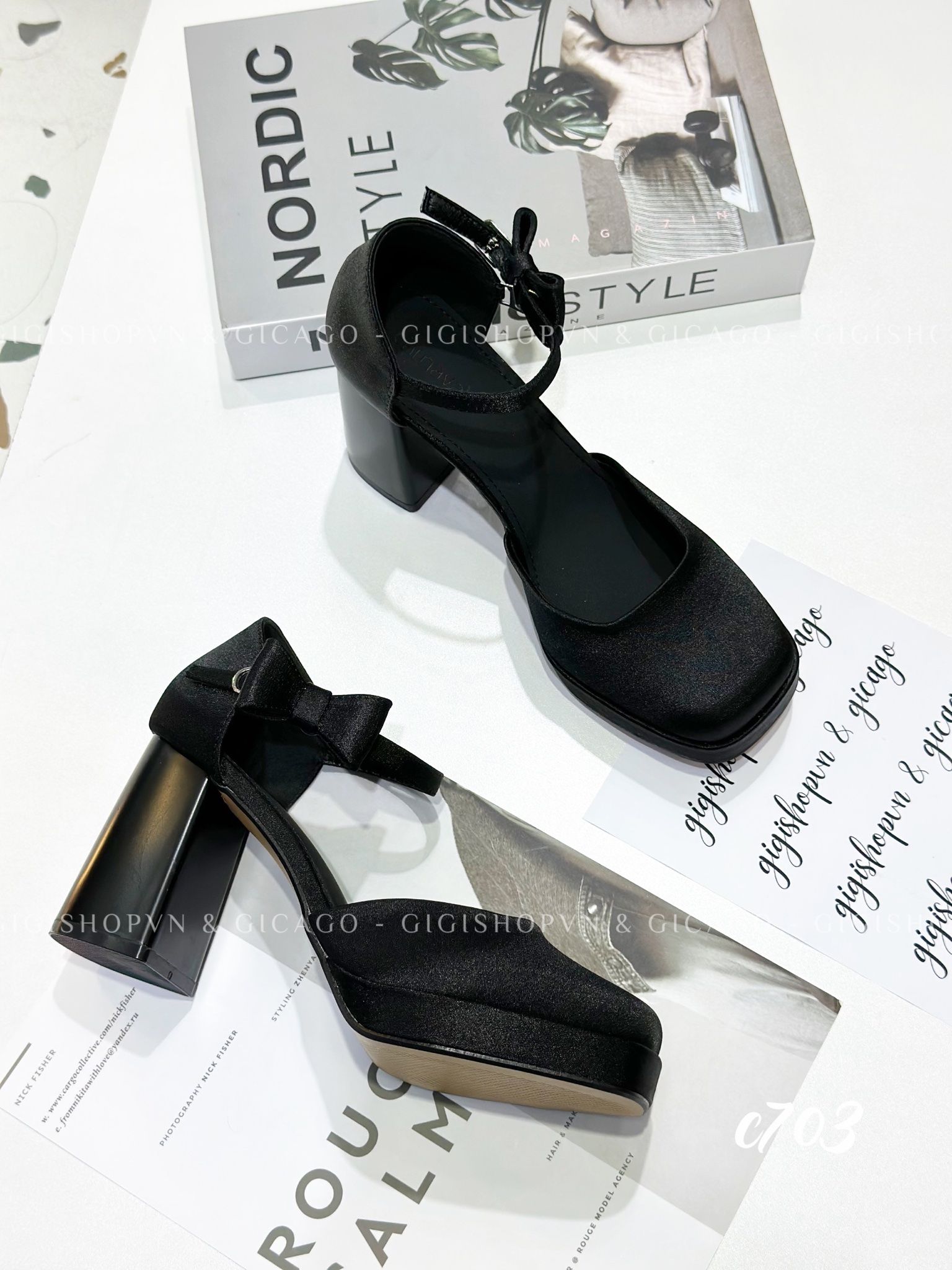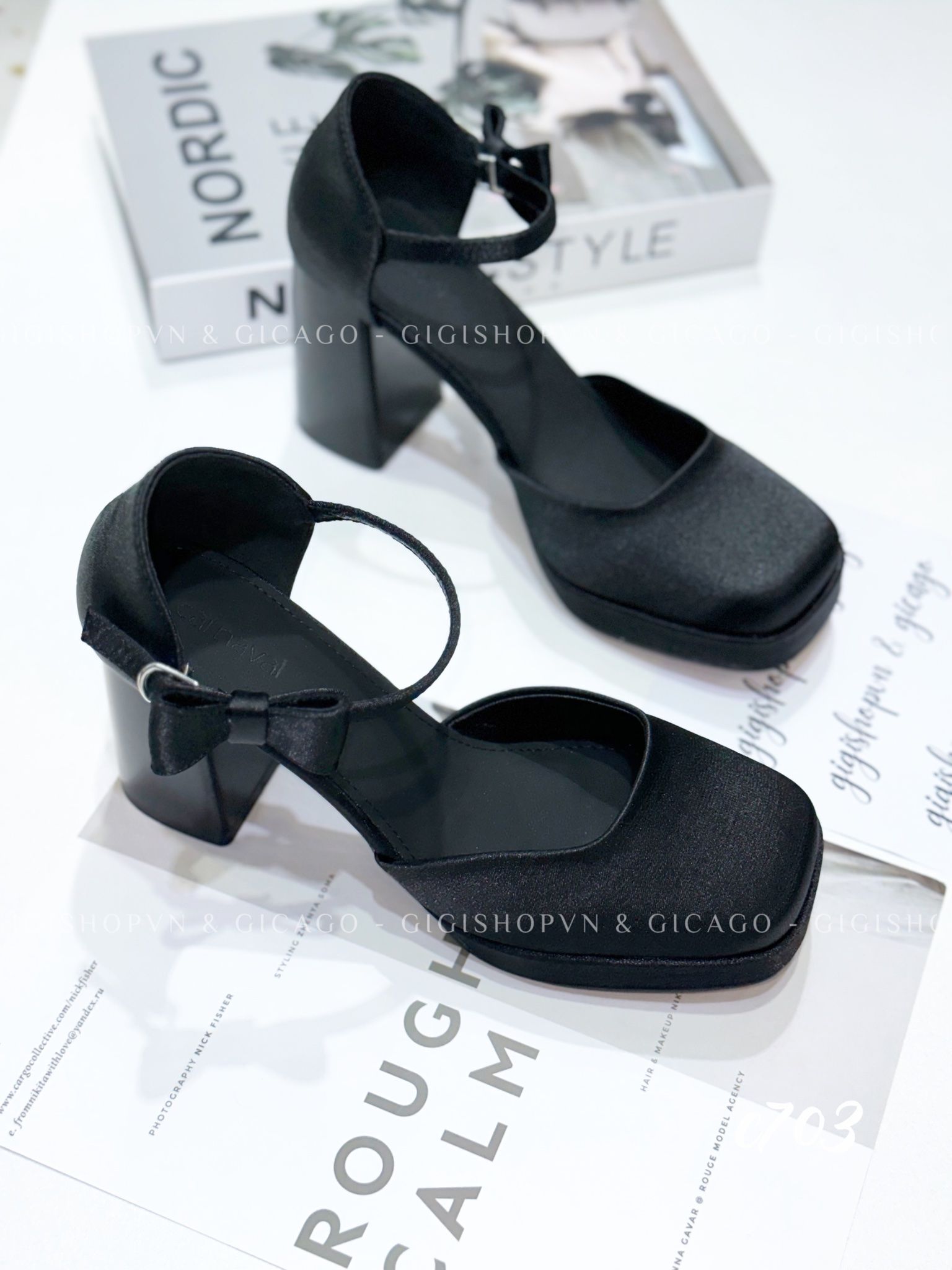 Cao gót vuông mũi tròn Nơ Mary WD C703