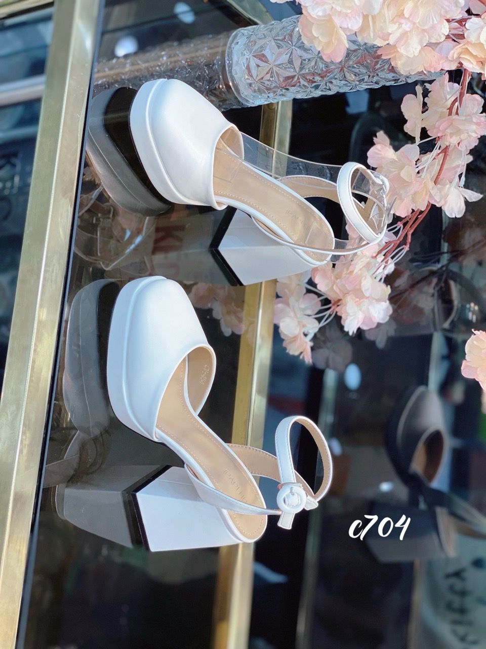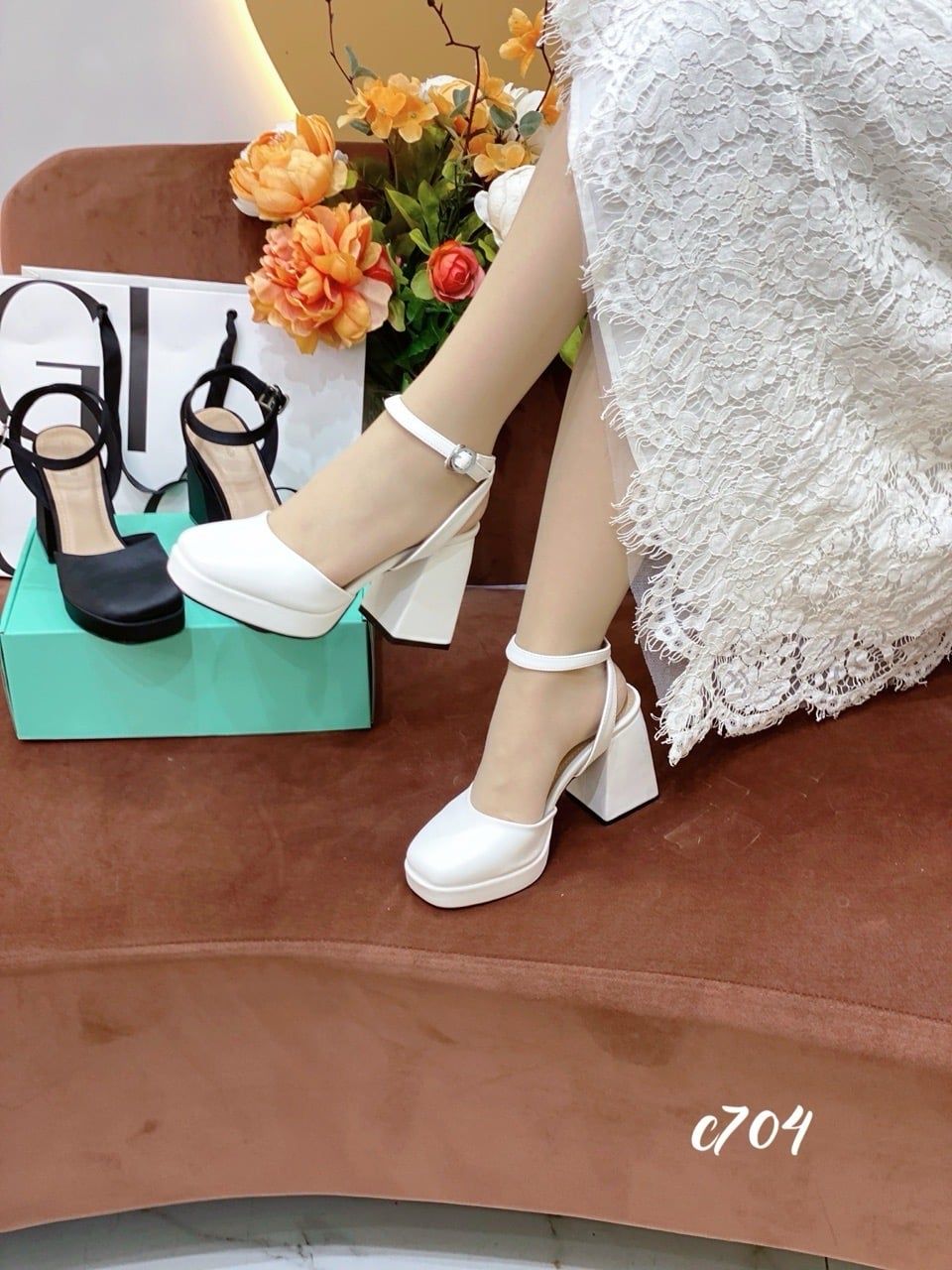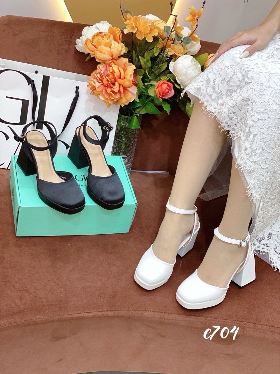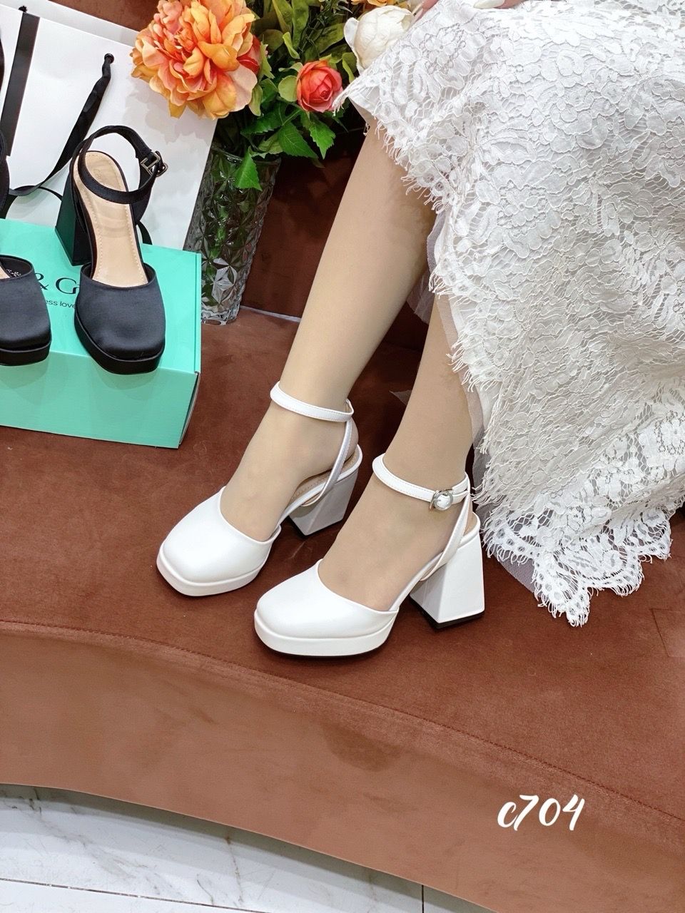 Cao gót vuông mũi tròn hở gót WD C704
