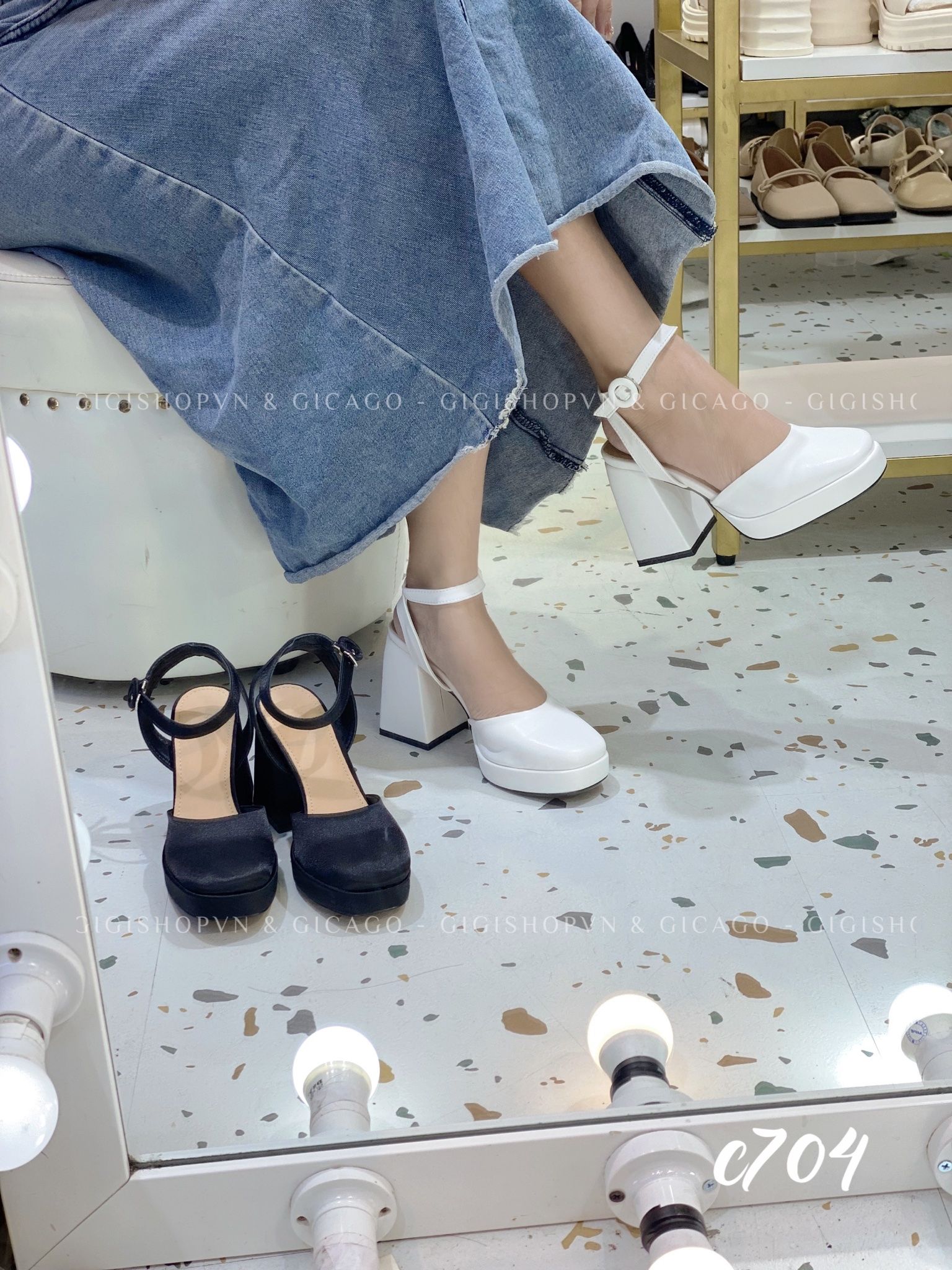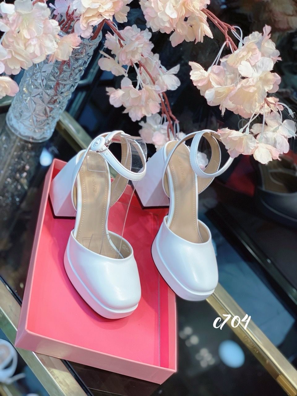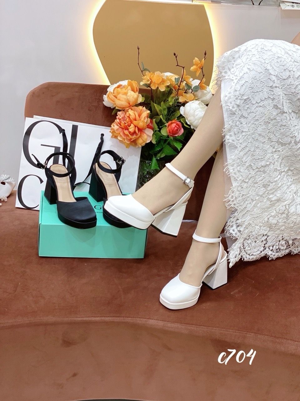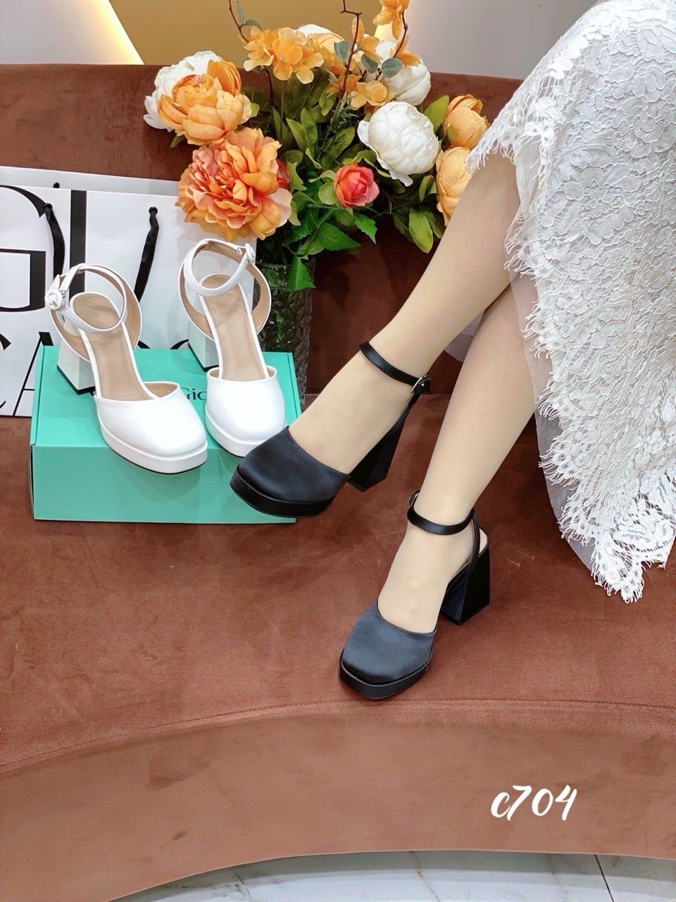 Cao gót vuông mũi tròn hở gót WD C704