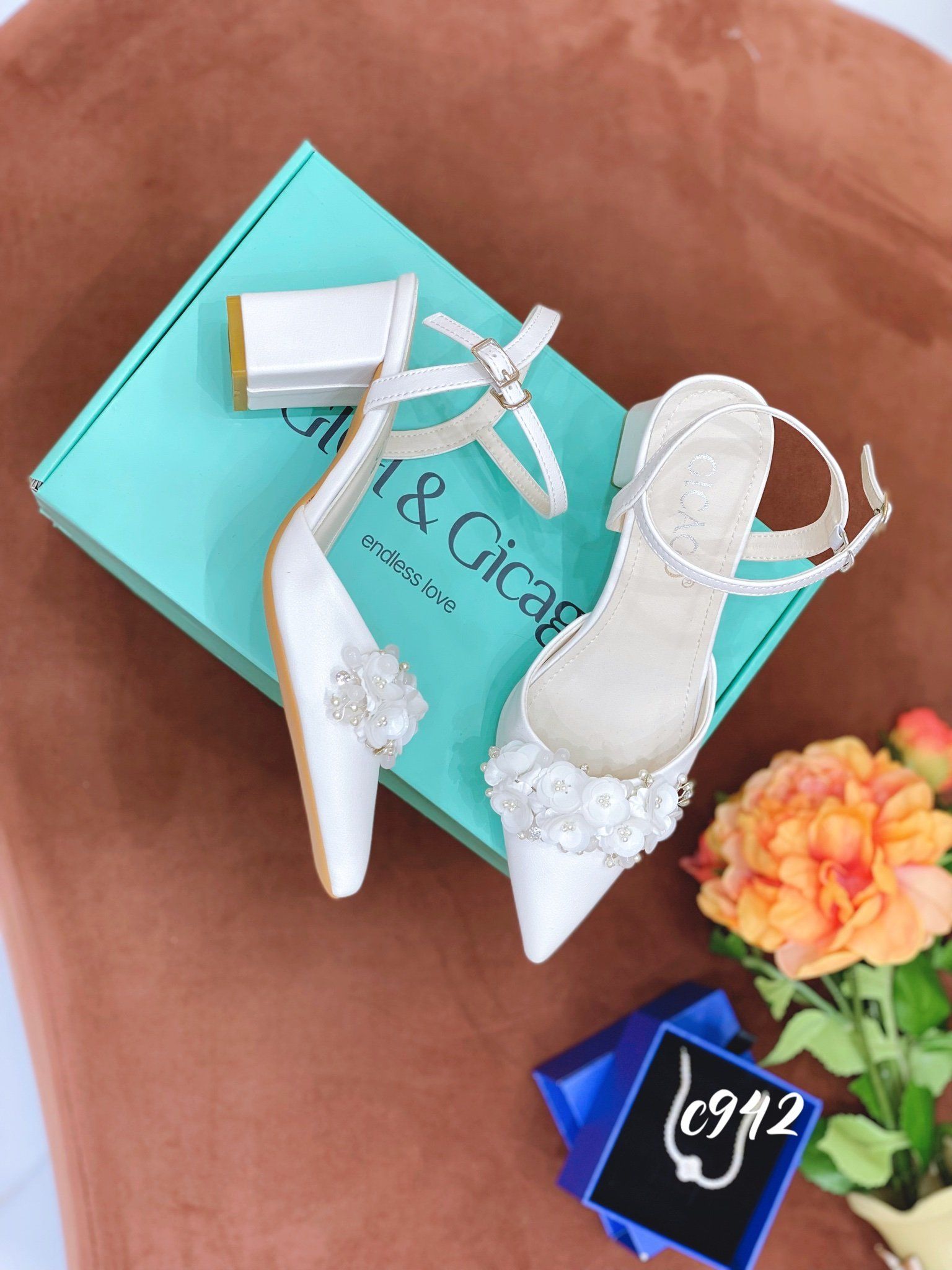 Cao gót vuông hở gót nhiều HOA WD trơn C942