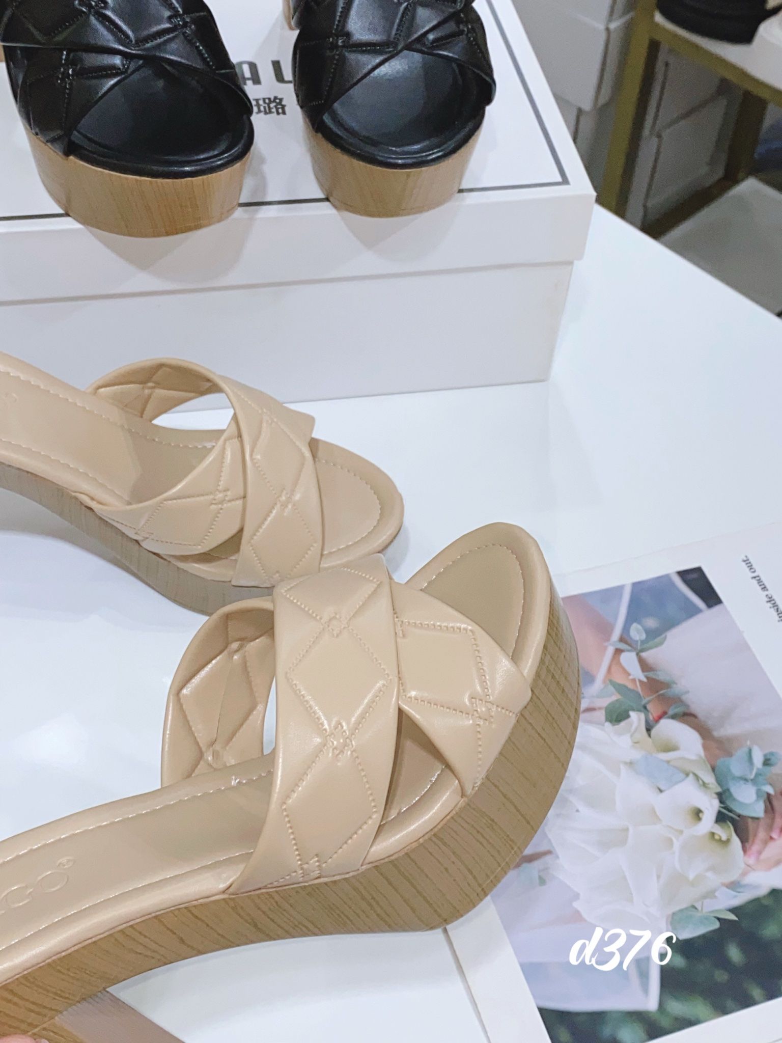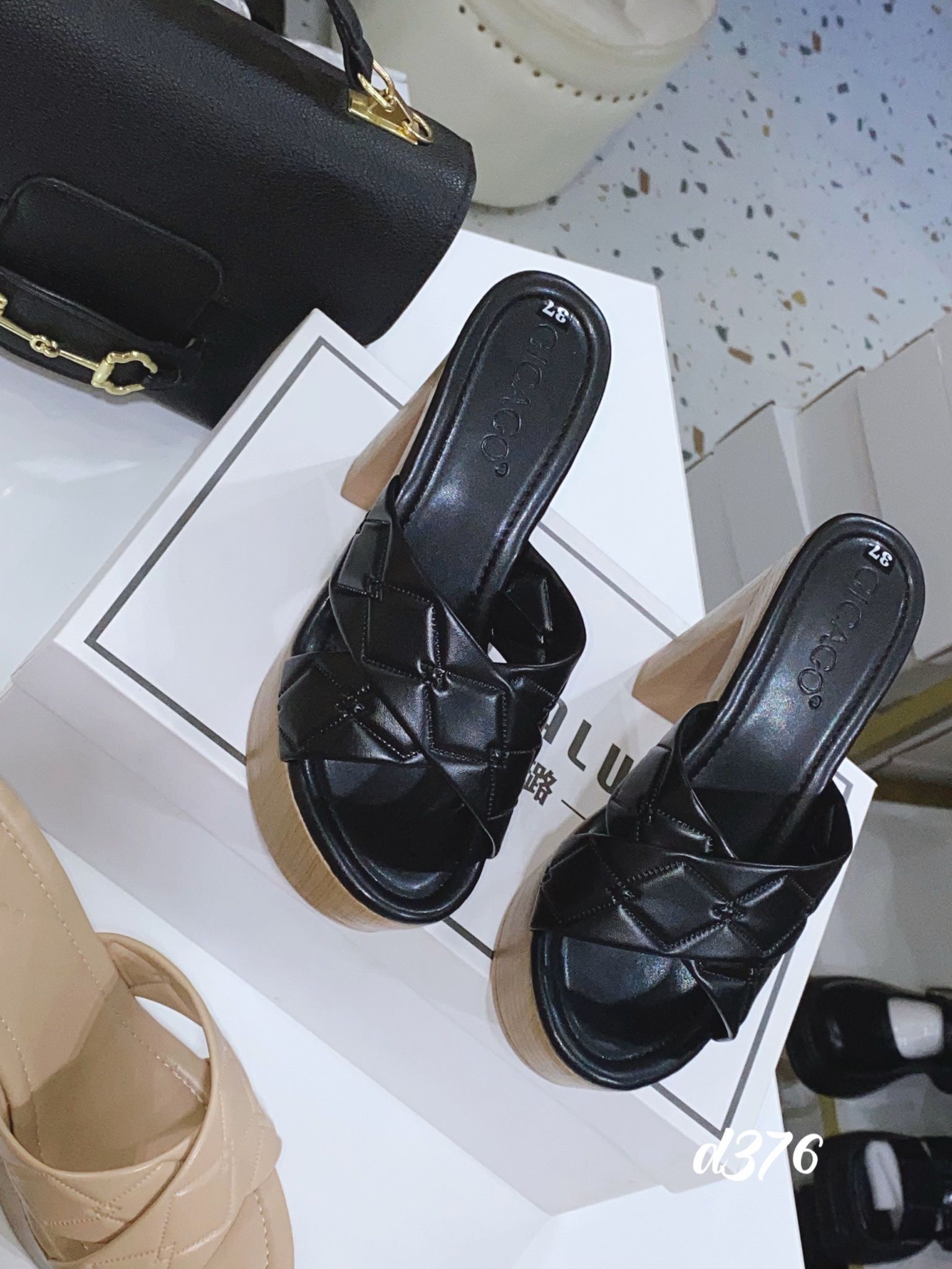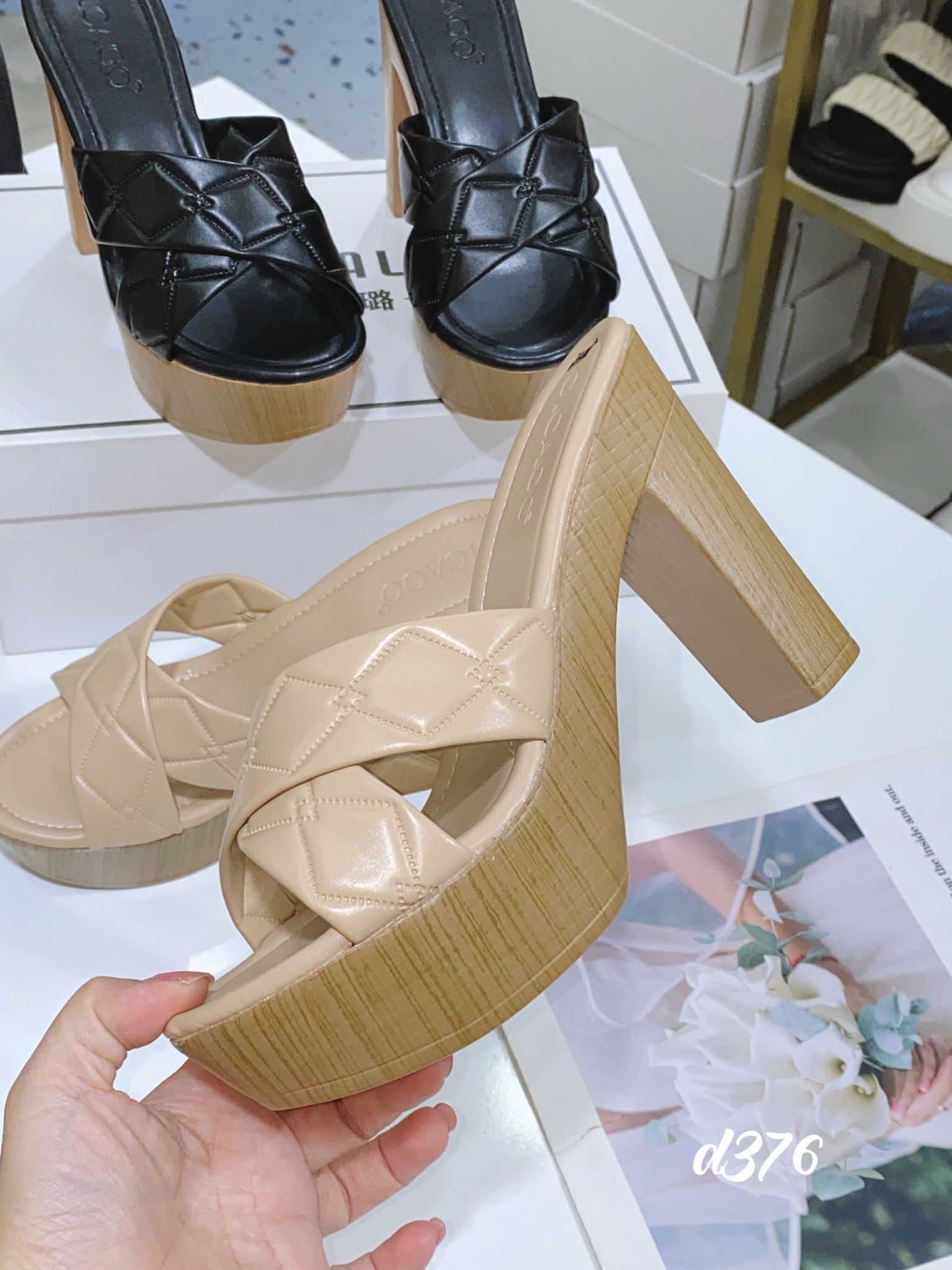 Guốc gót vuông gỗ D376