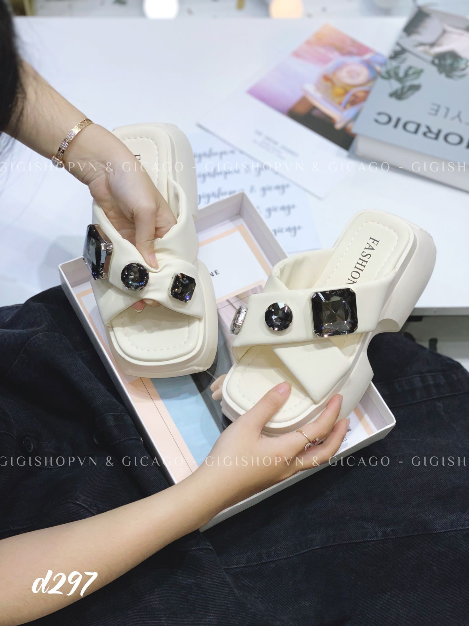 Dép xuồng chéo ngọc D297