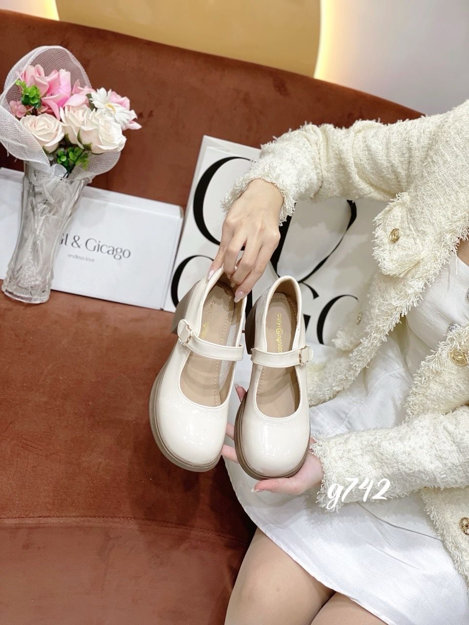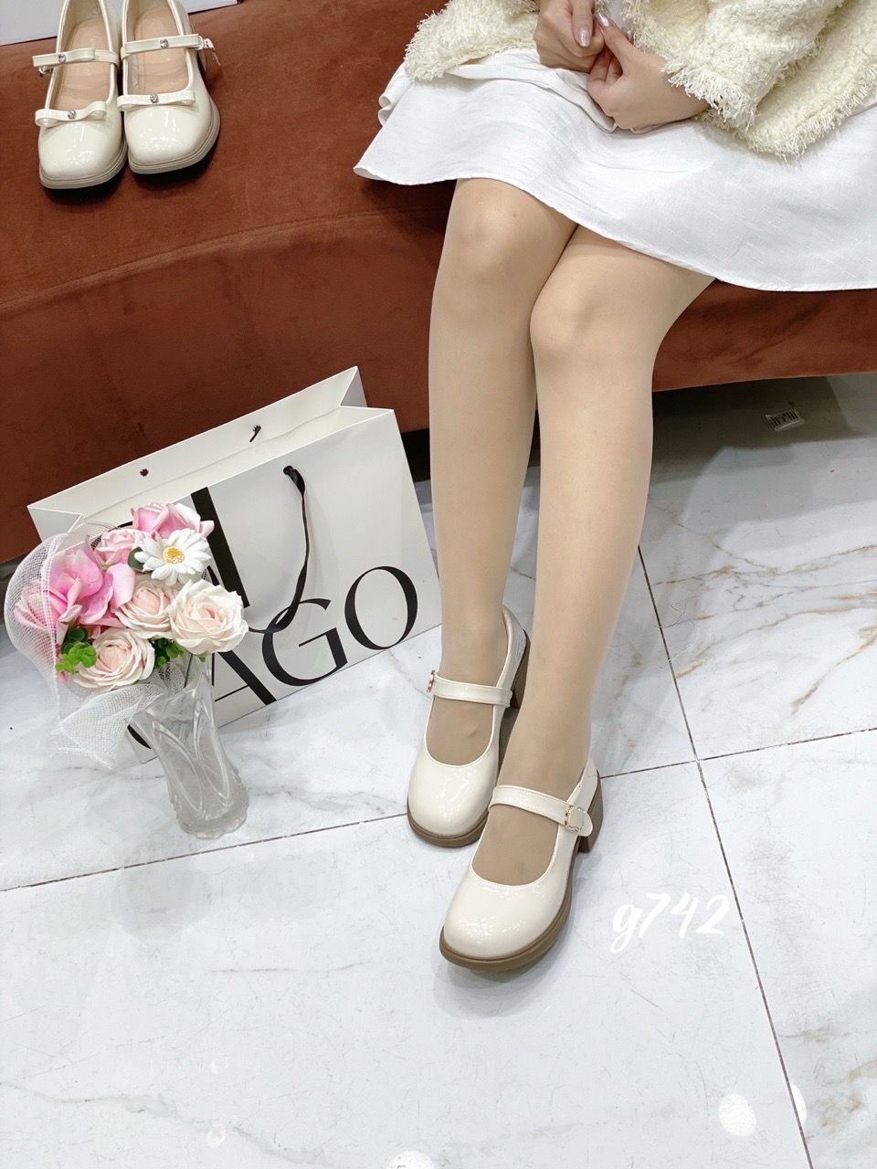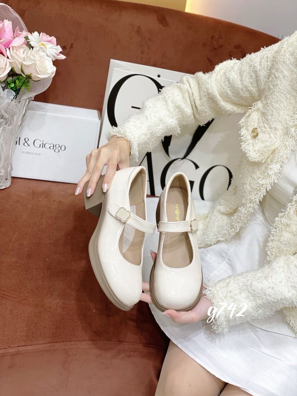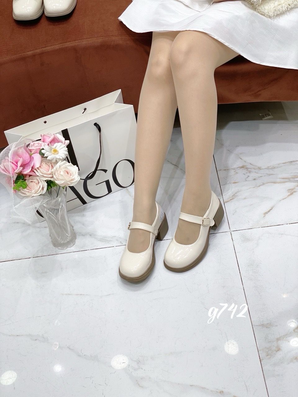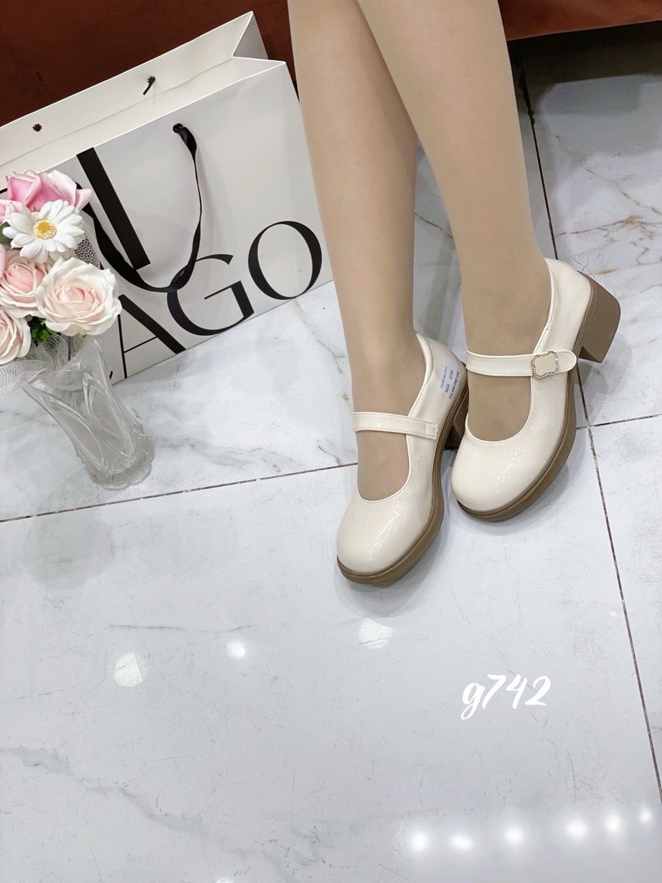 Giày gót vuông mũi tròn Mary G742