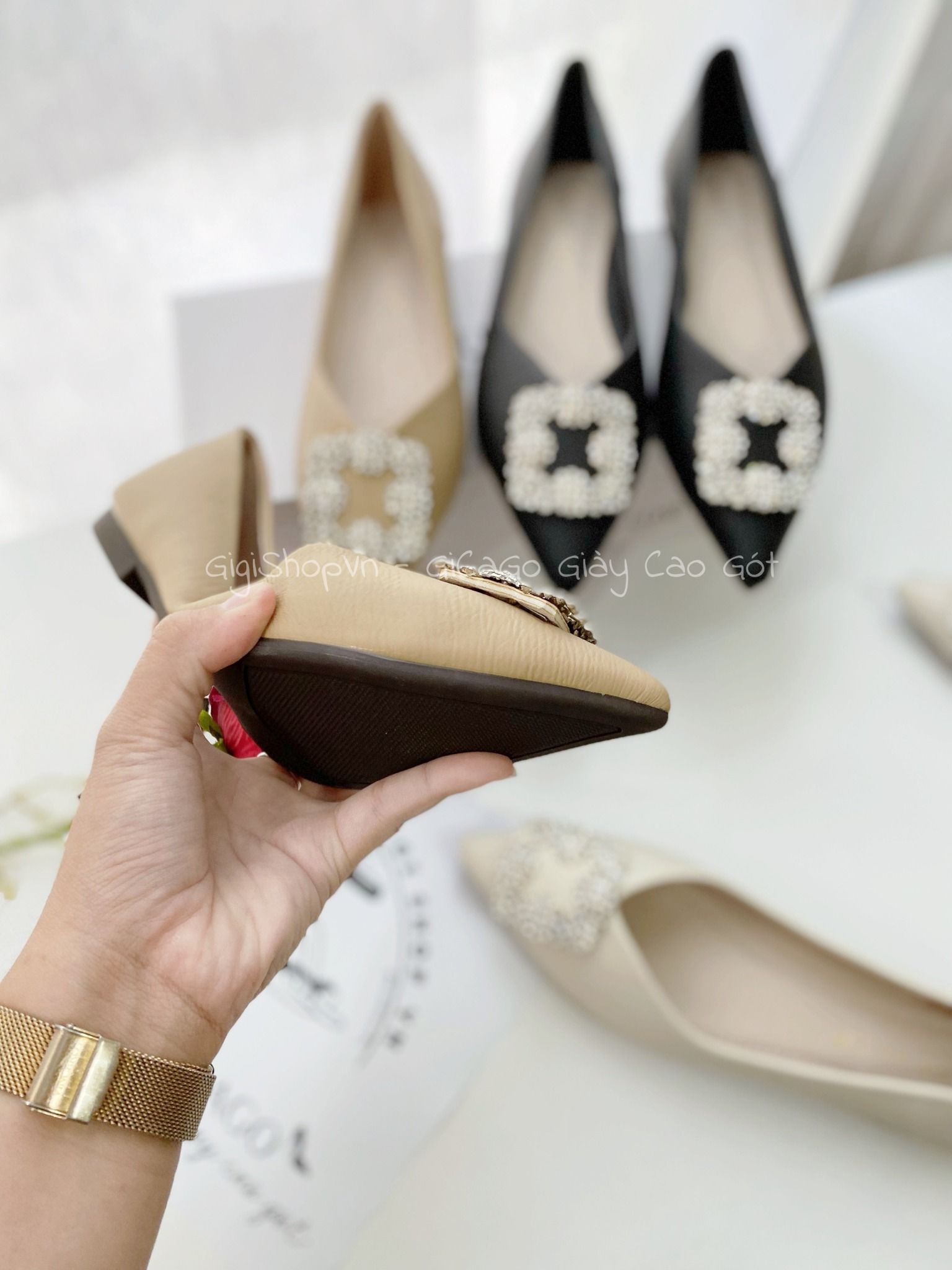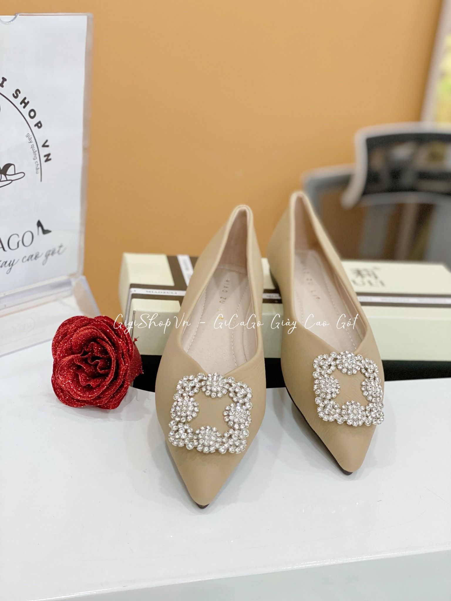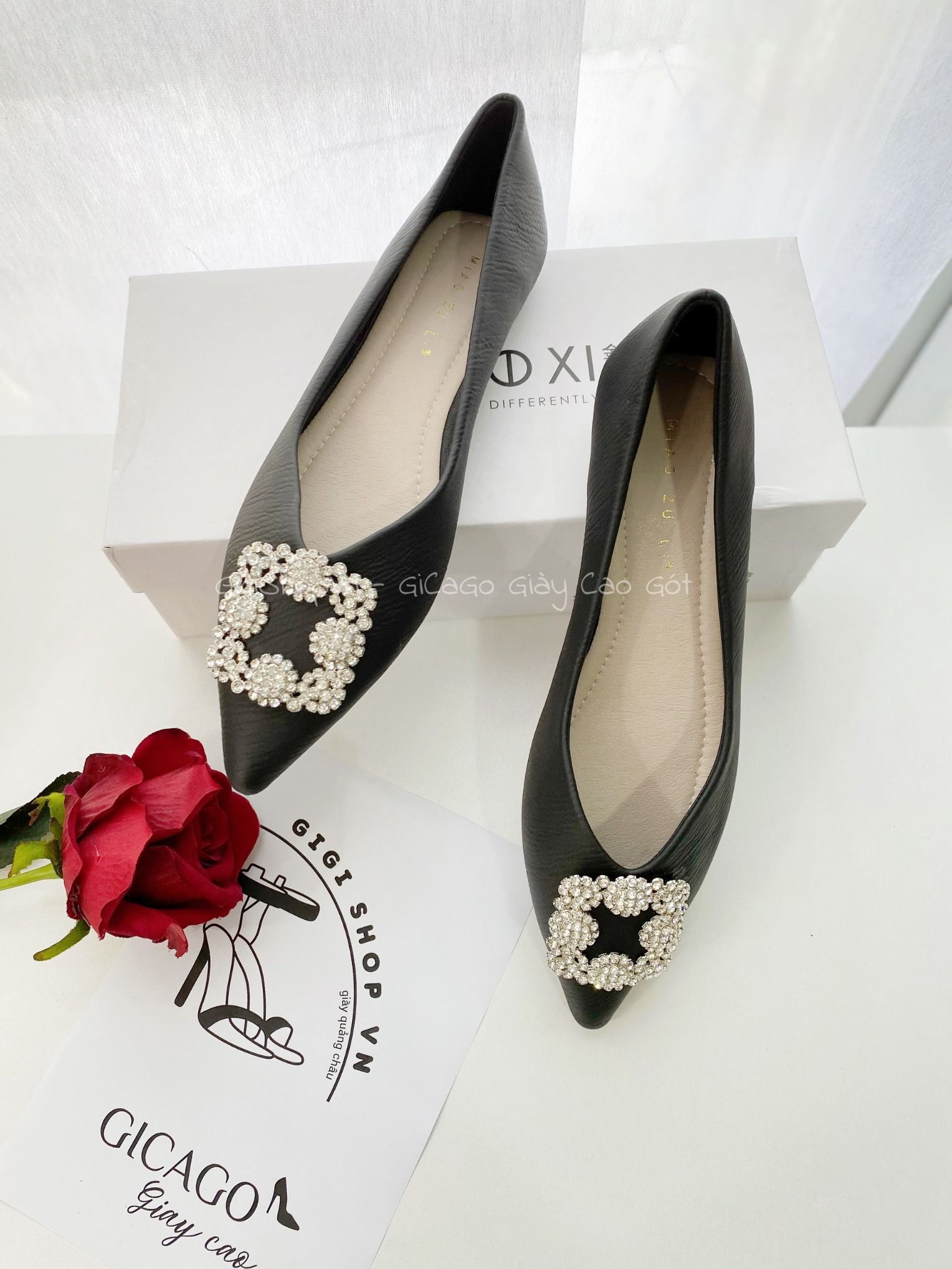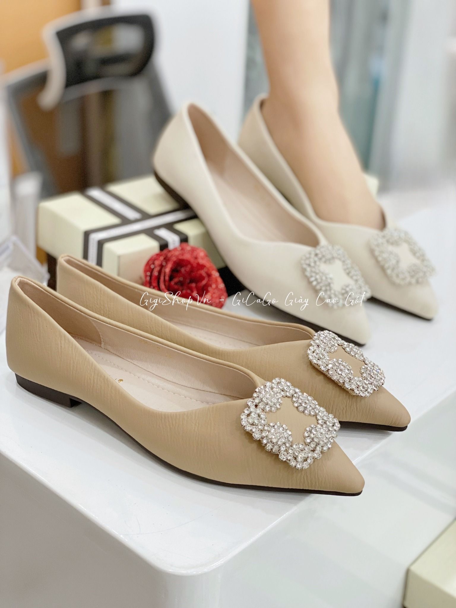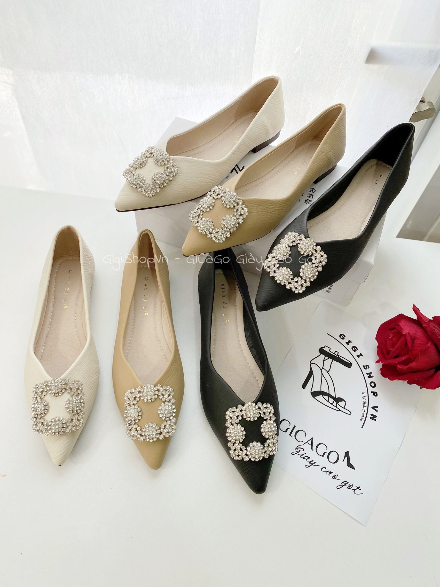 Giày búp bê mũi nhọn khóa đá B882