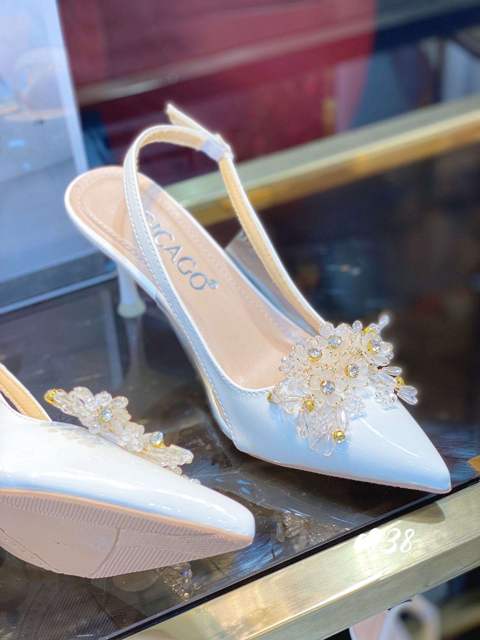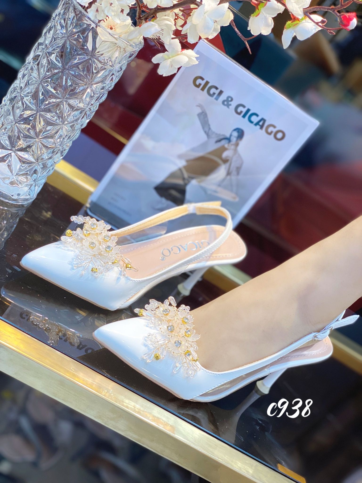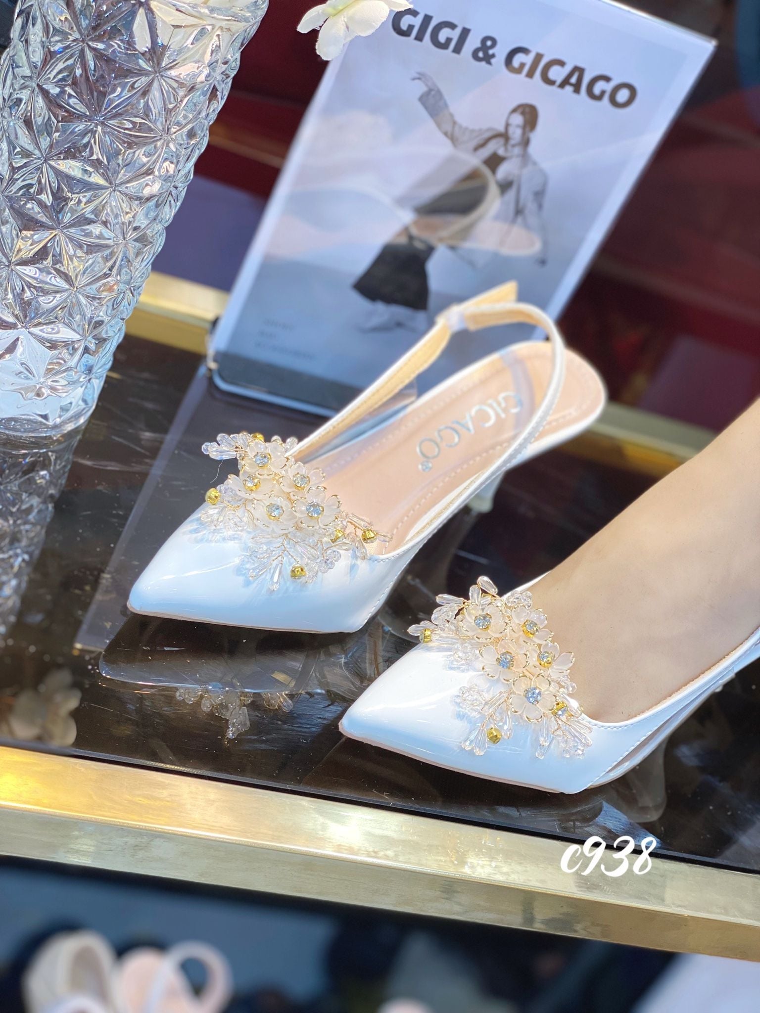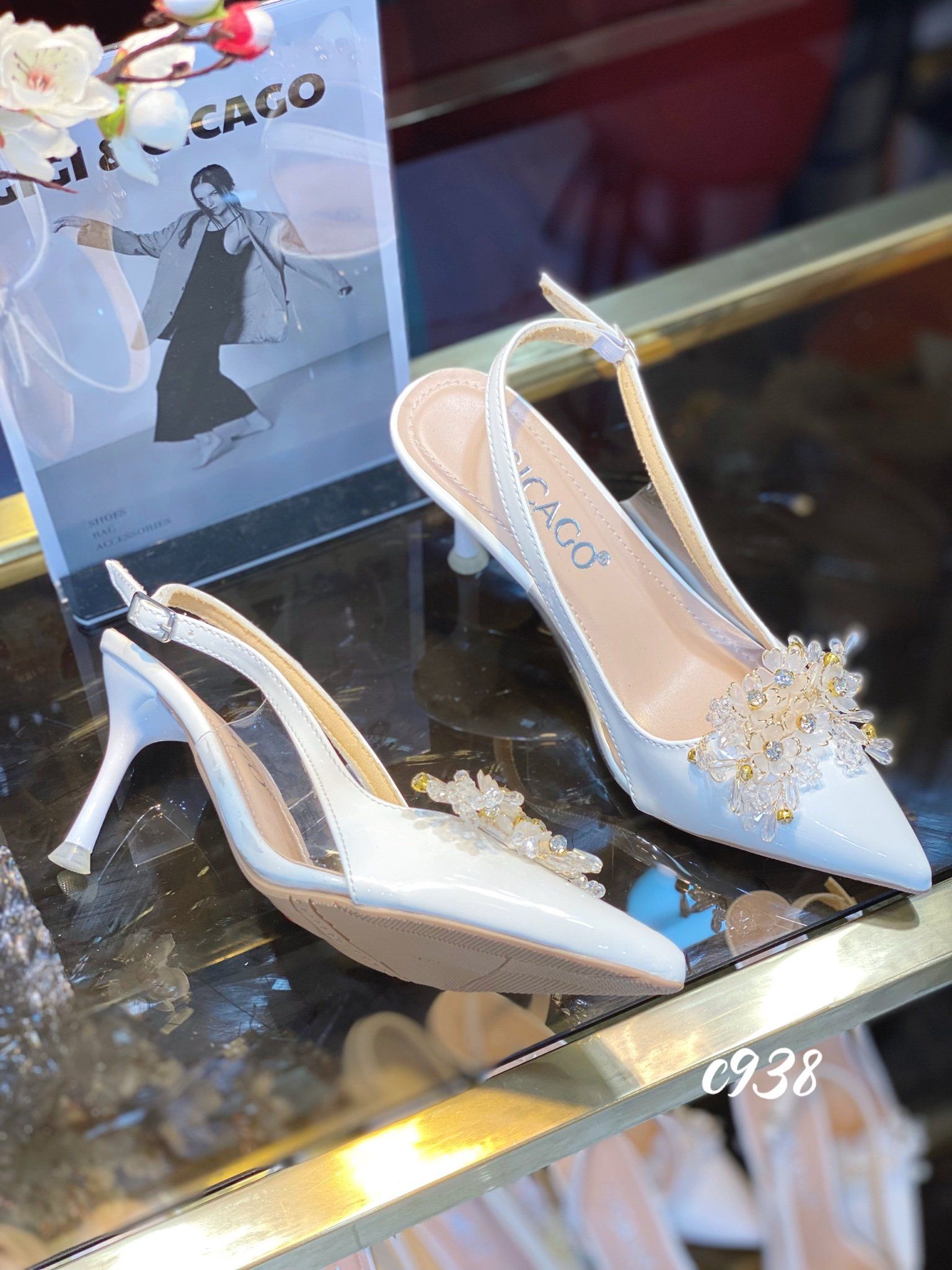 Giày cao gót nhọn hở gót HOA WD pha lê C938