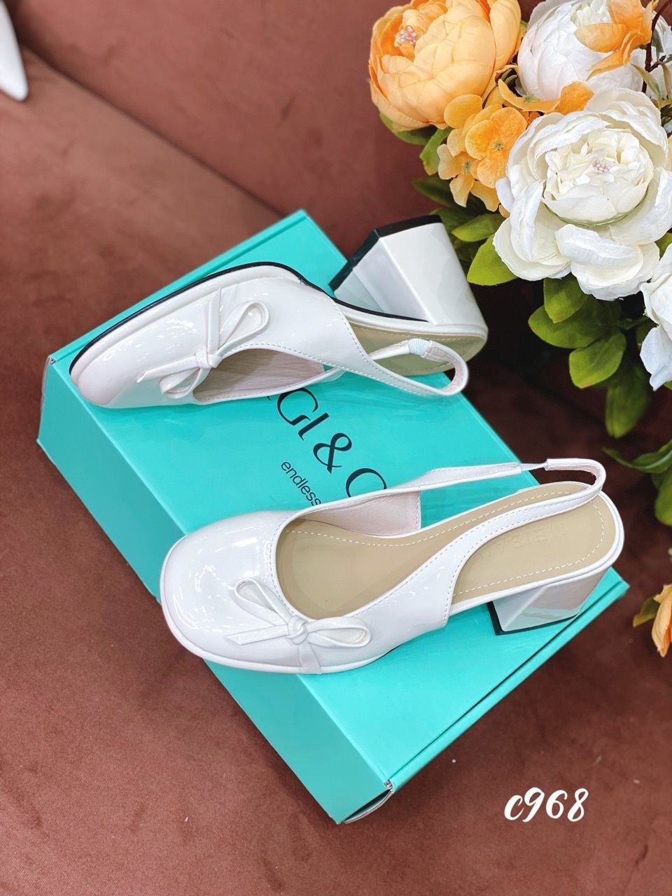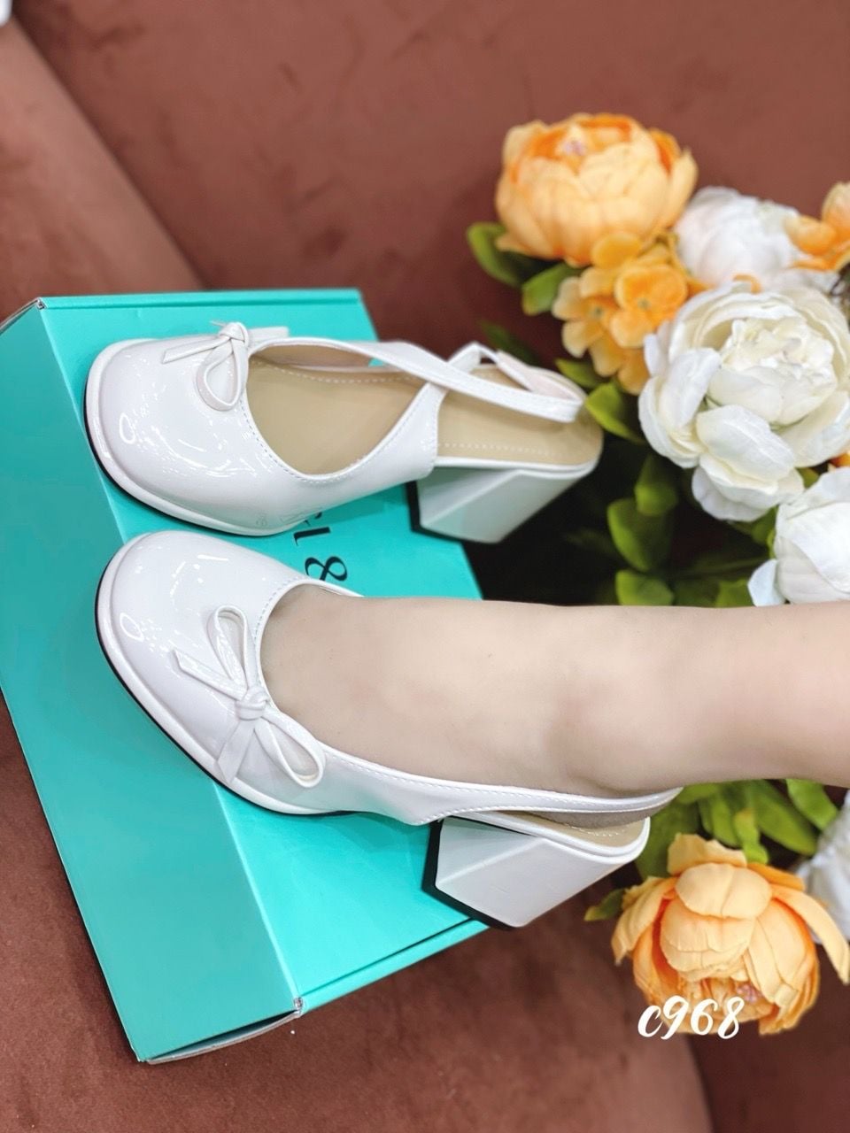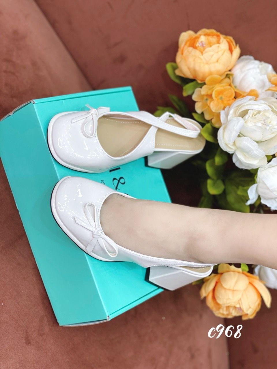 Cao gót vuông mũi tròn hở gót C968