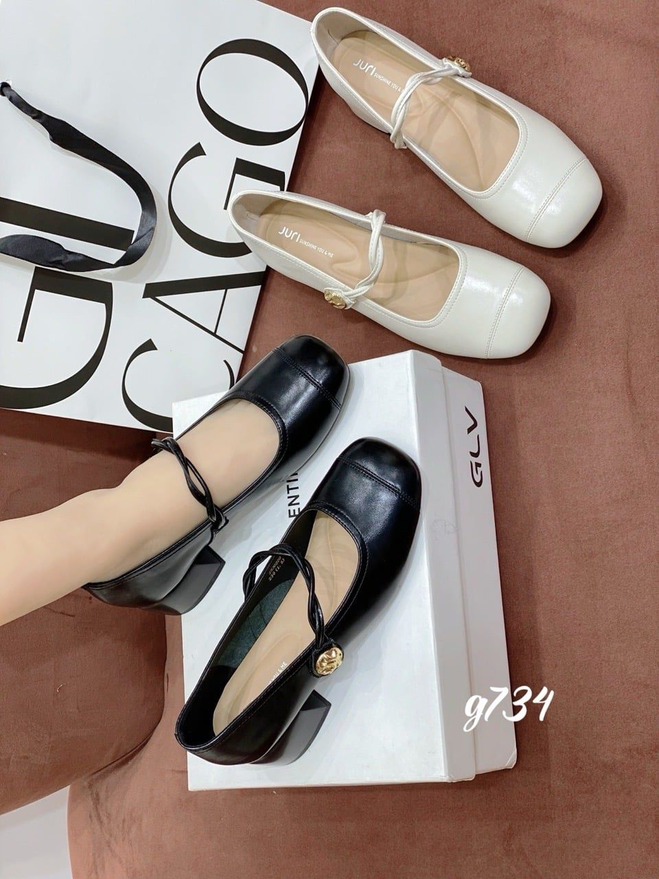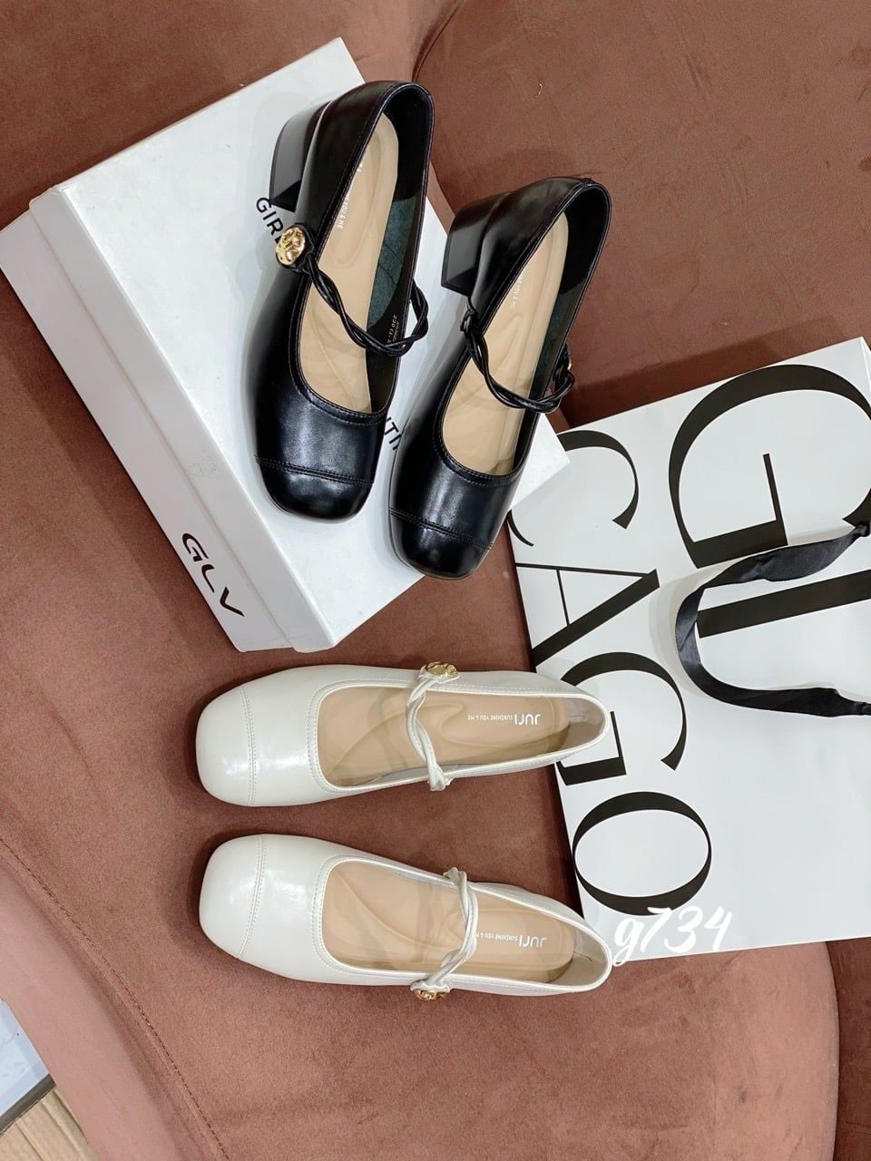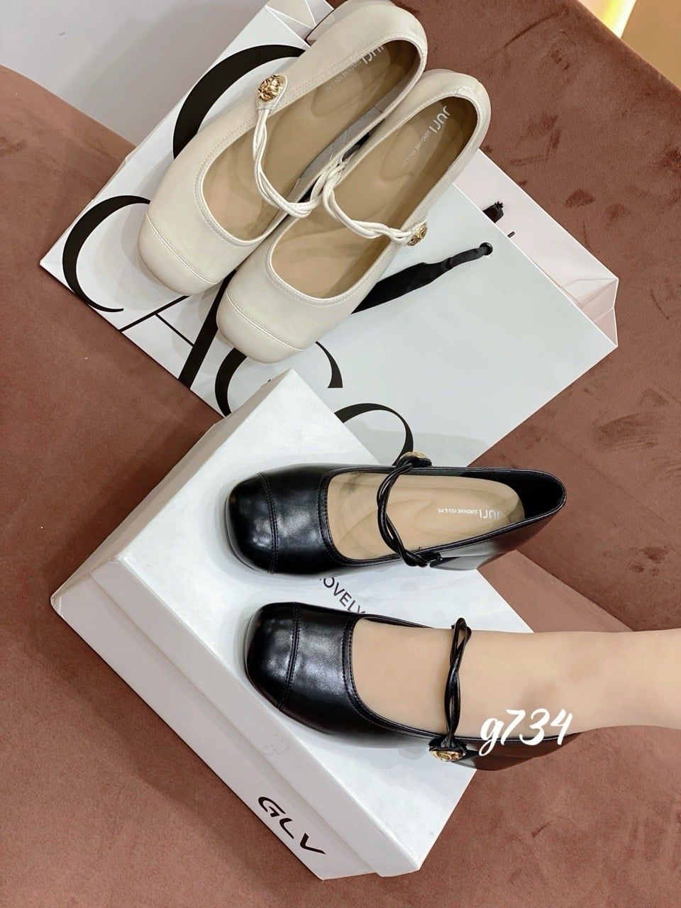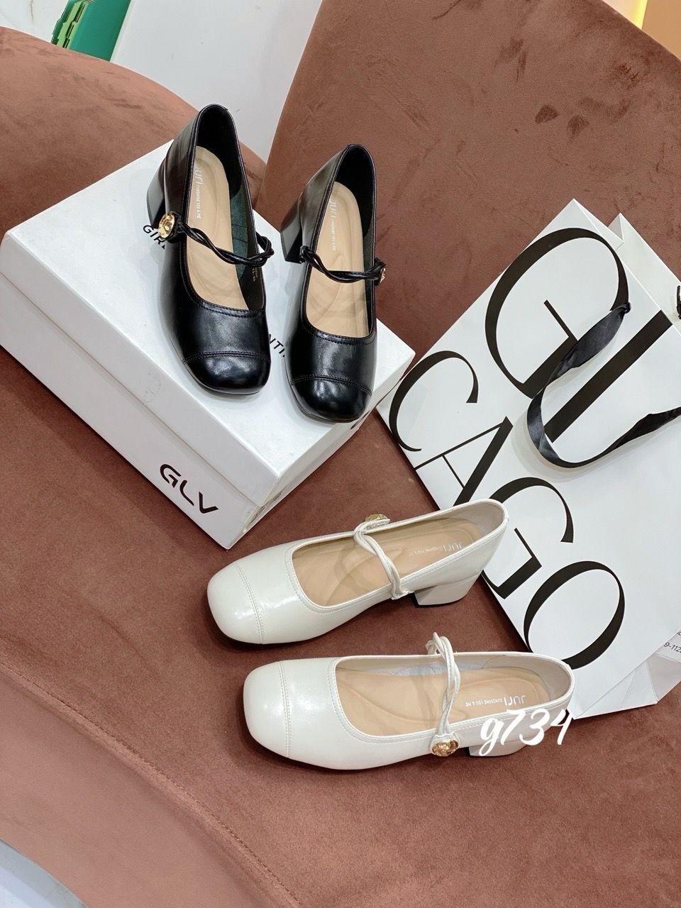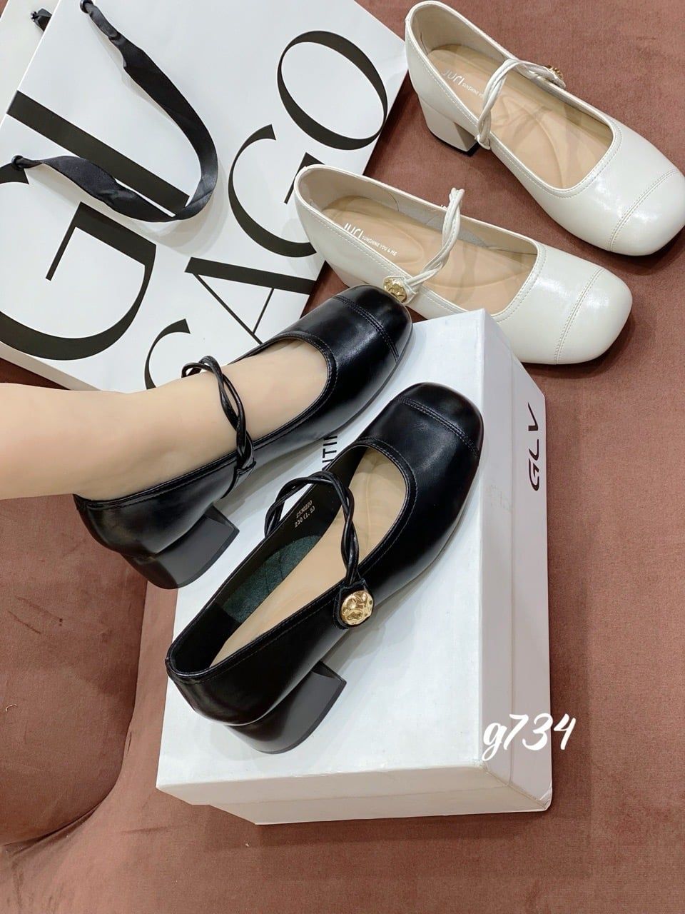 Giày cao gót vuông mũi tròn da trơn Mary G735