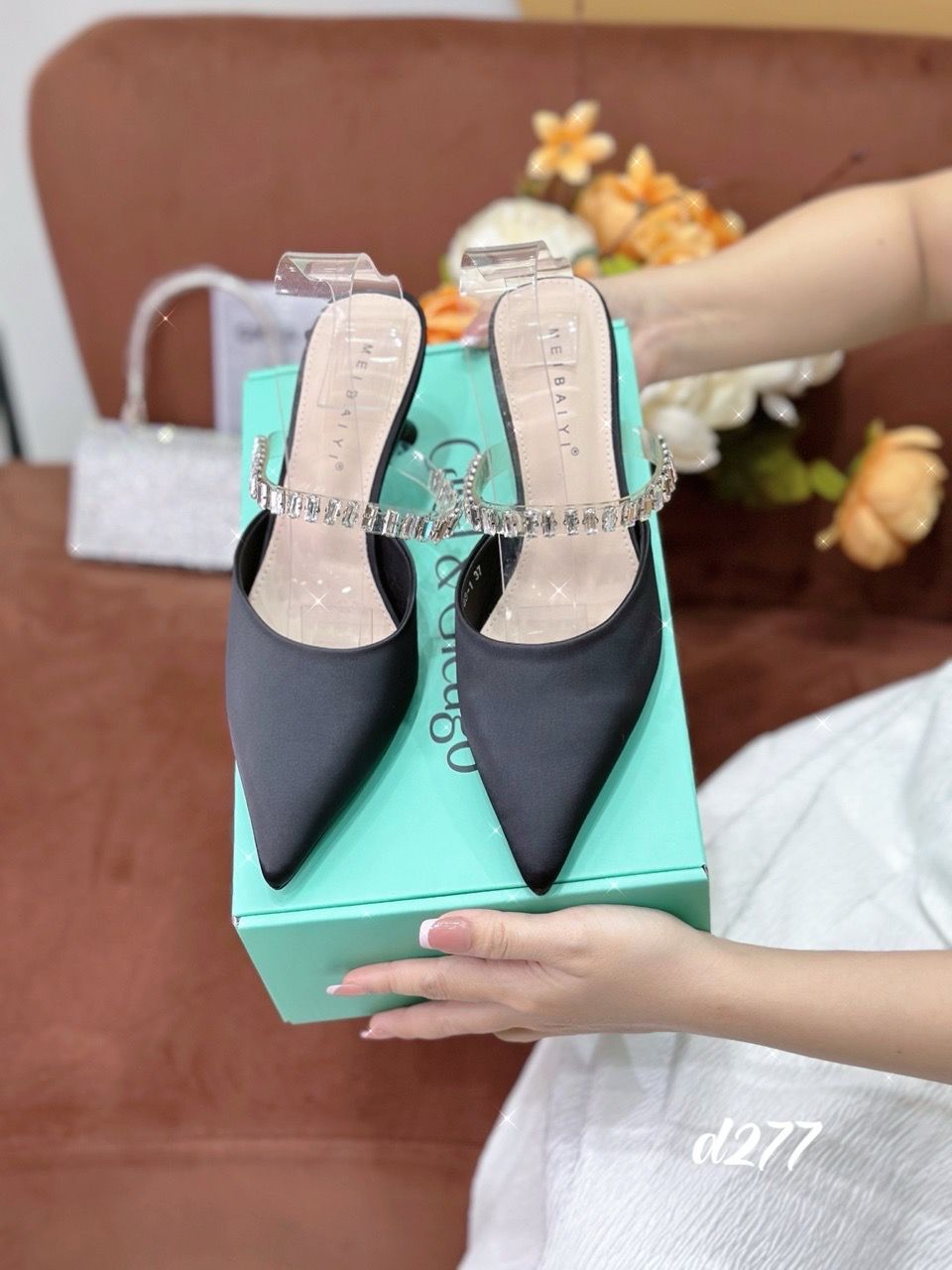 Guốc sục nhọn lụa dây D277