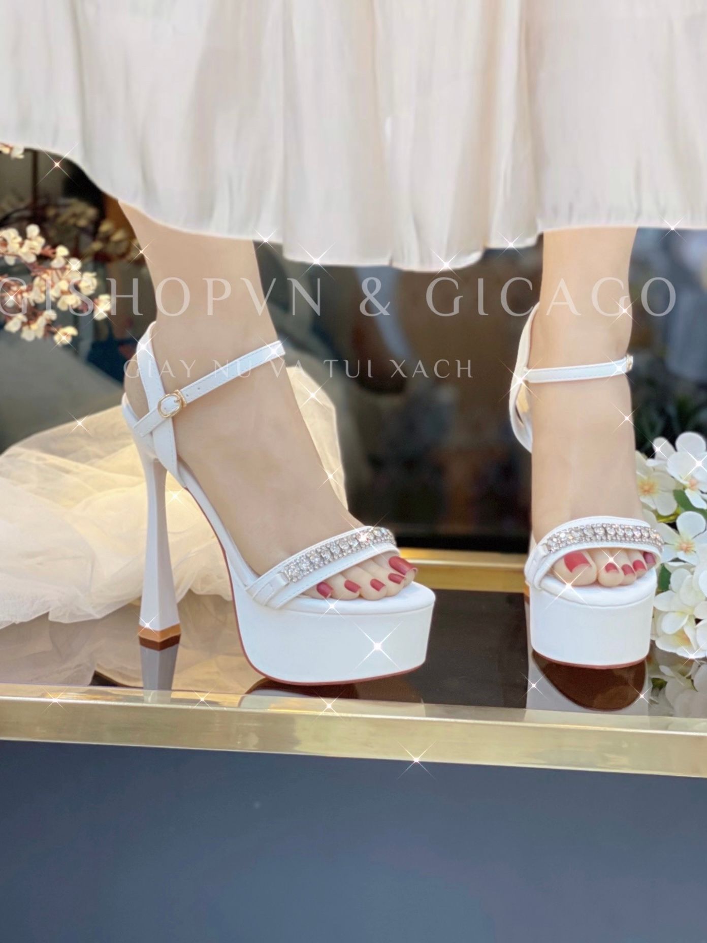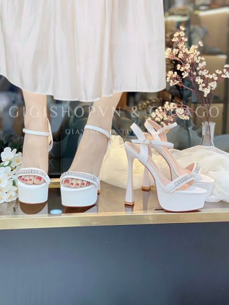 Sandal gót nhọn đính đá đế đúp S829