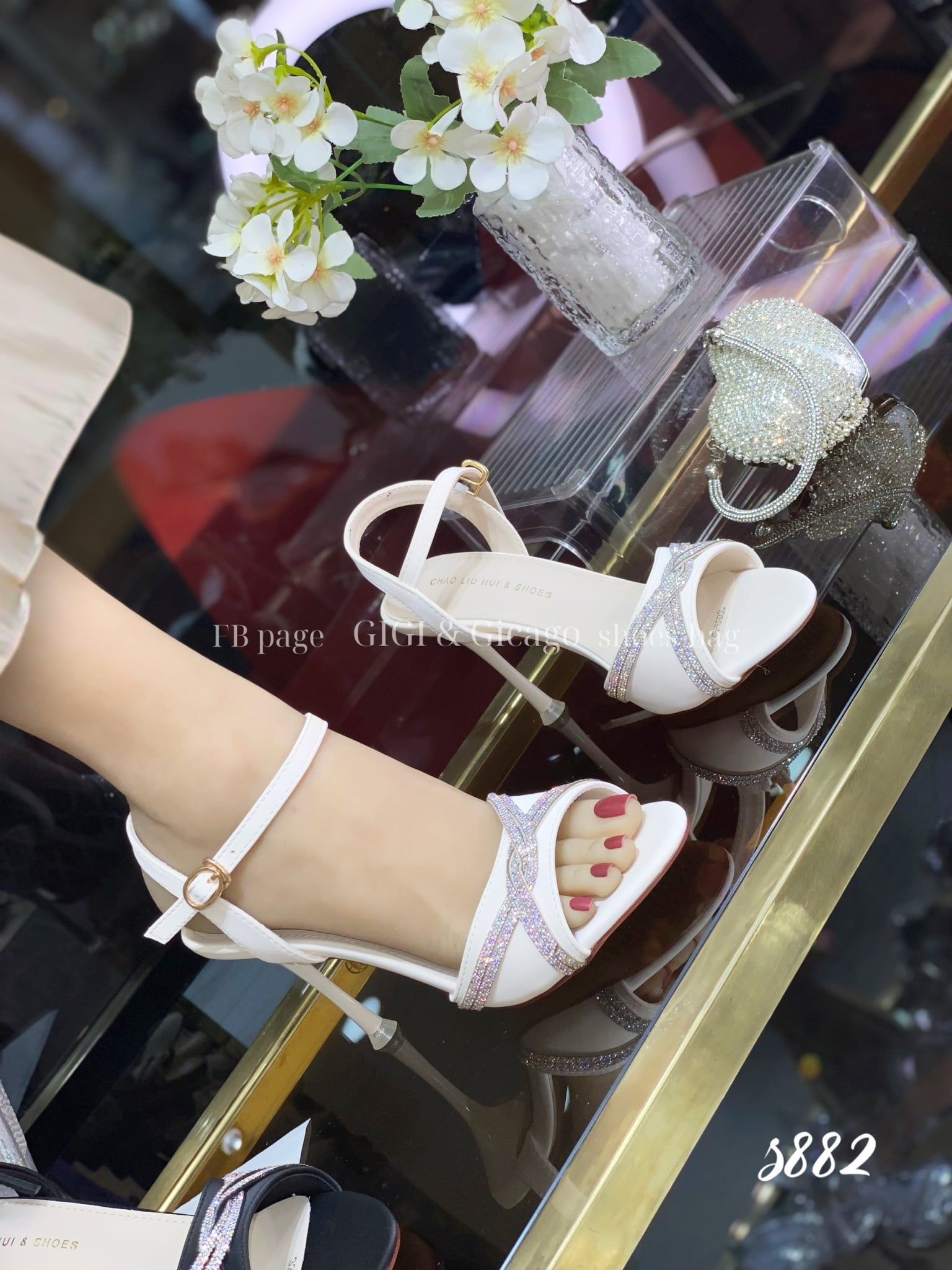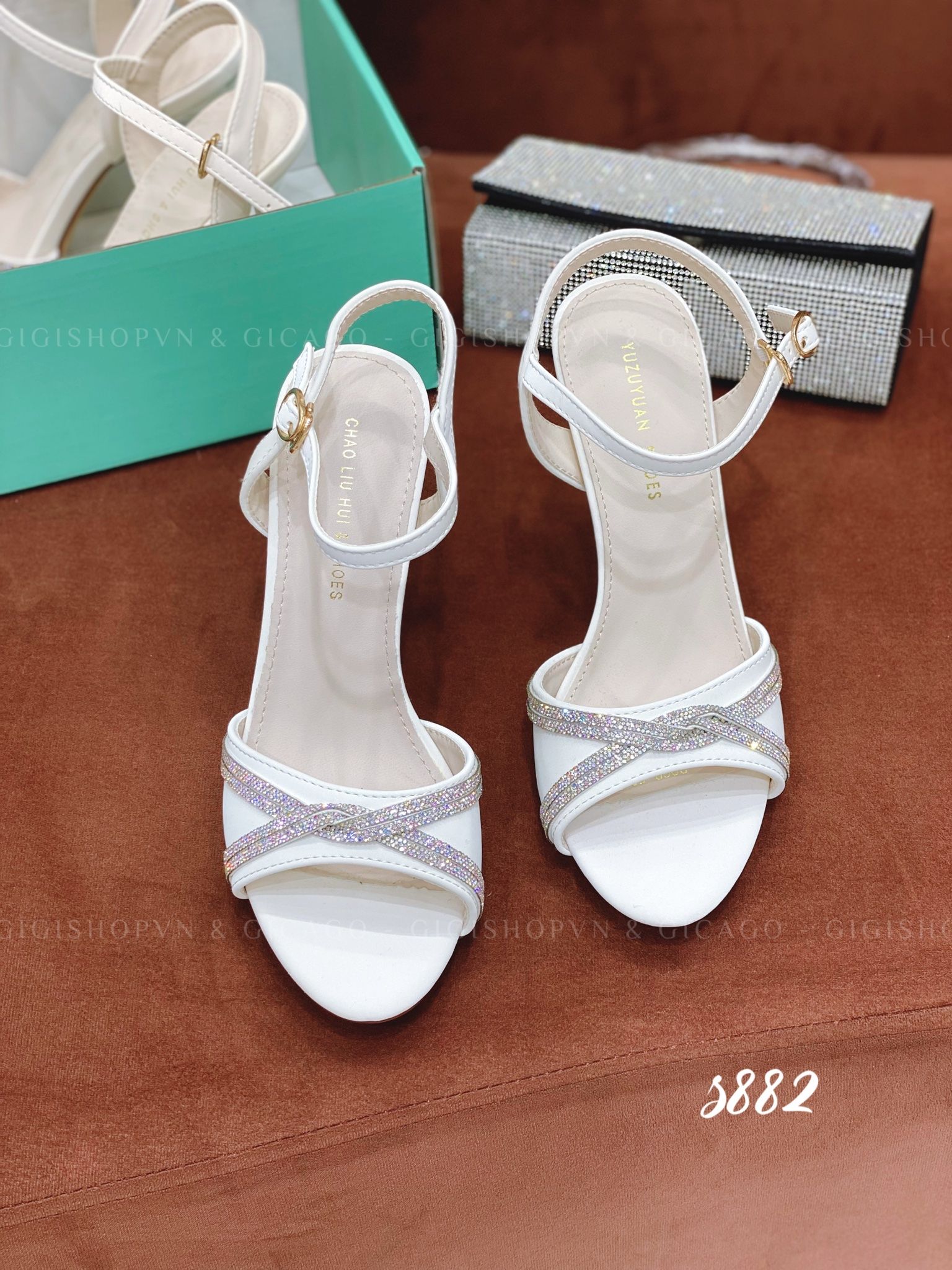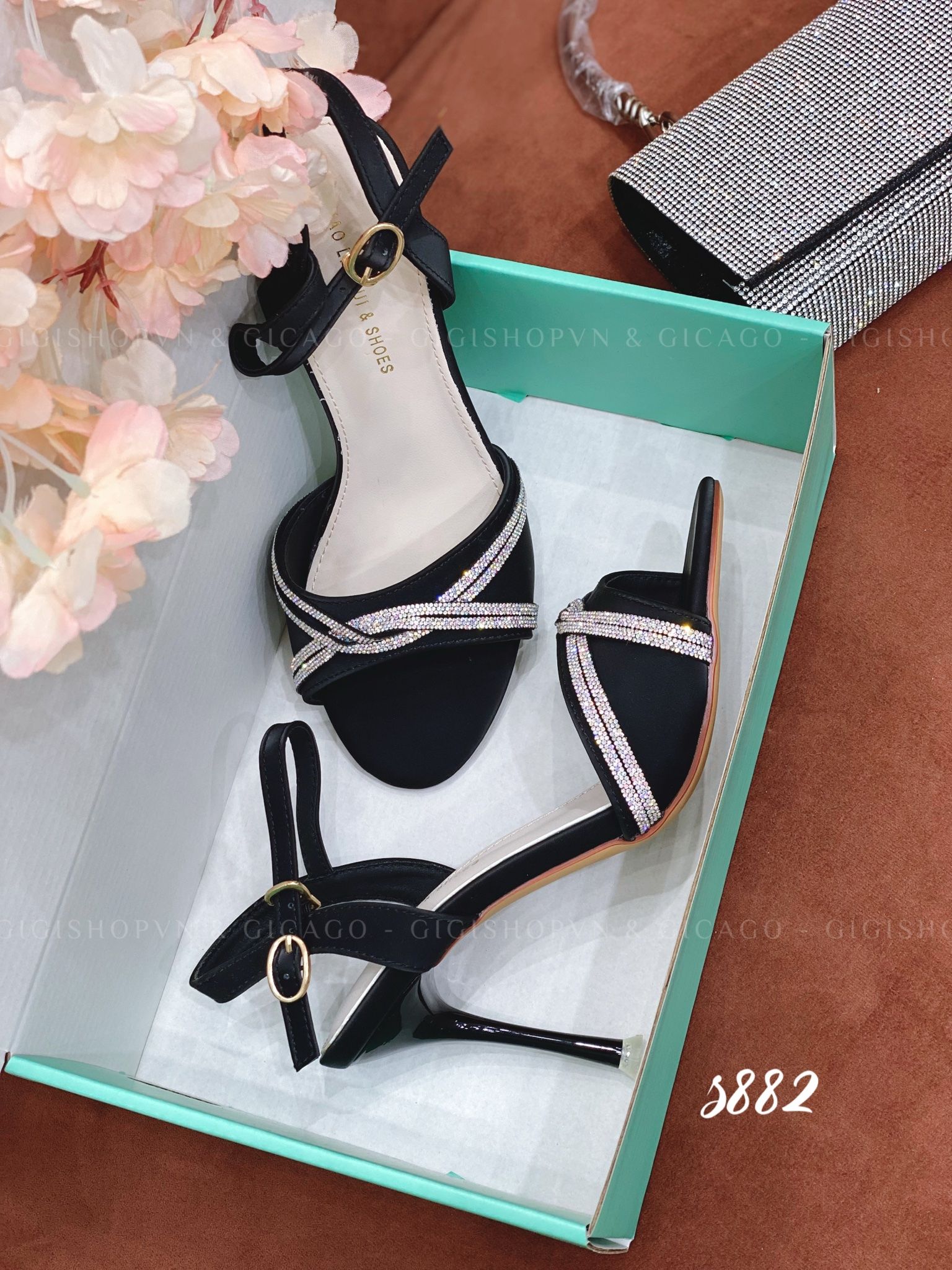 Sandal gót nhọn tiệc bling S882