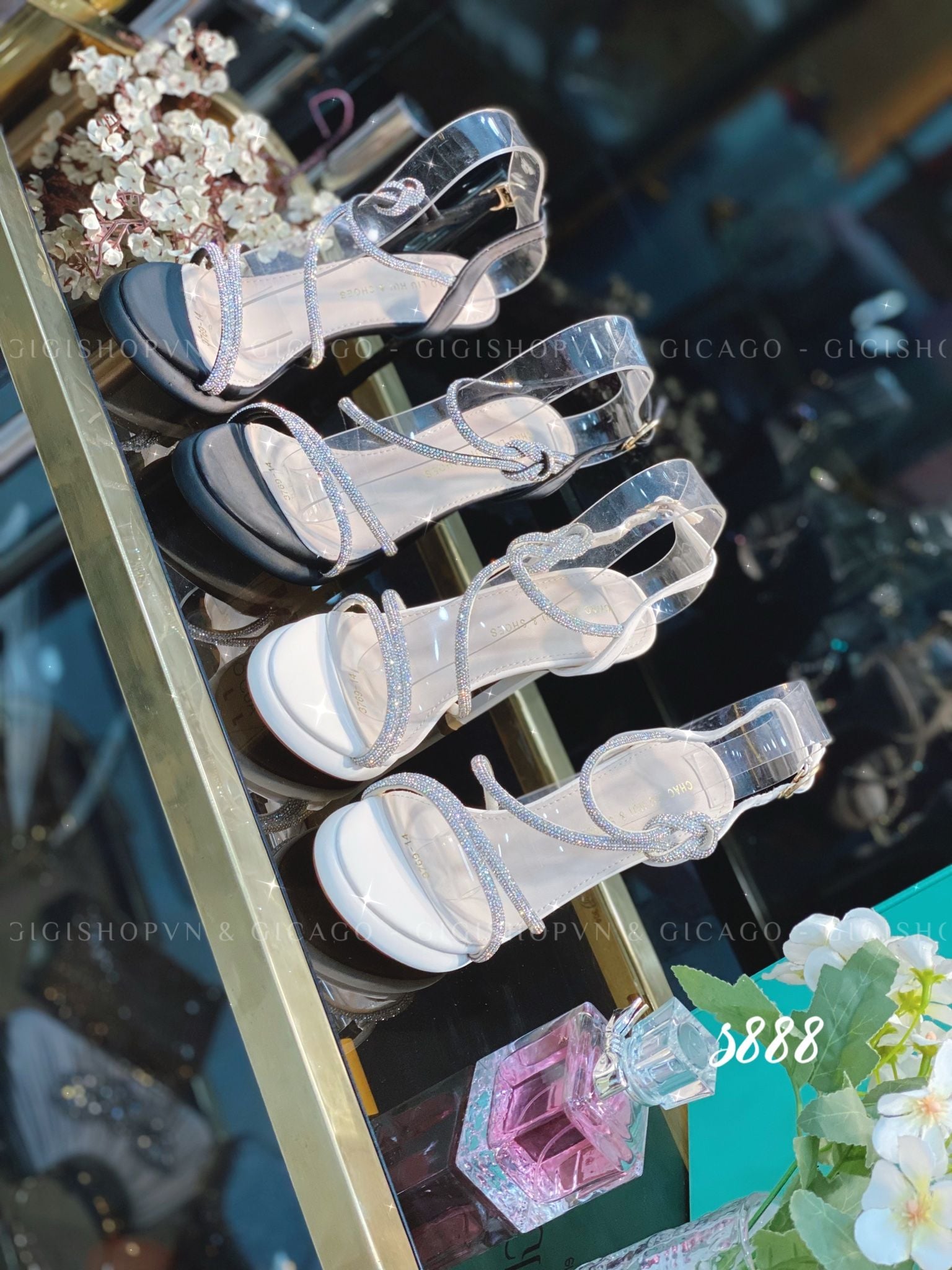 Sandal gót nhọn tiệc bling S888