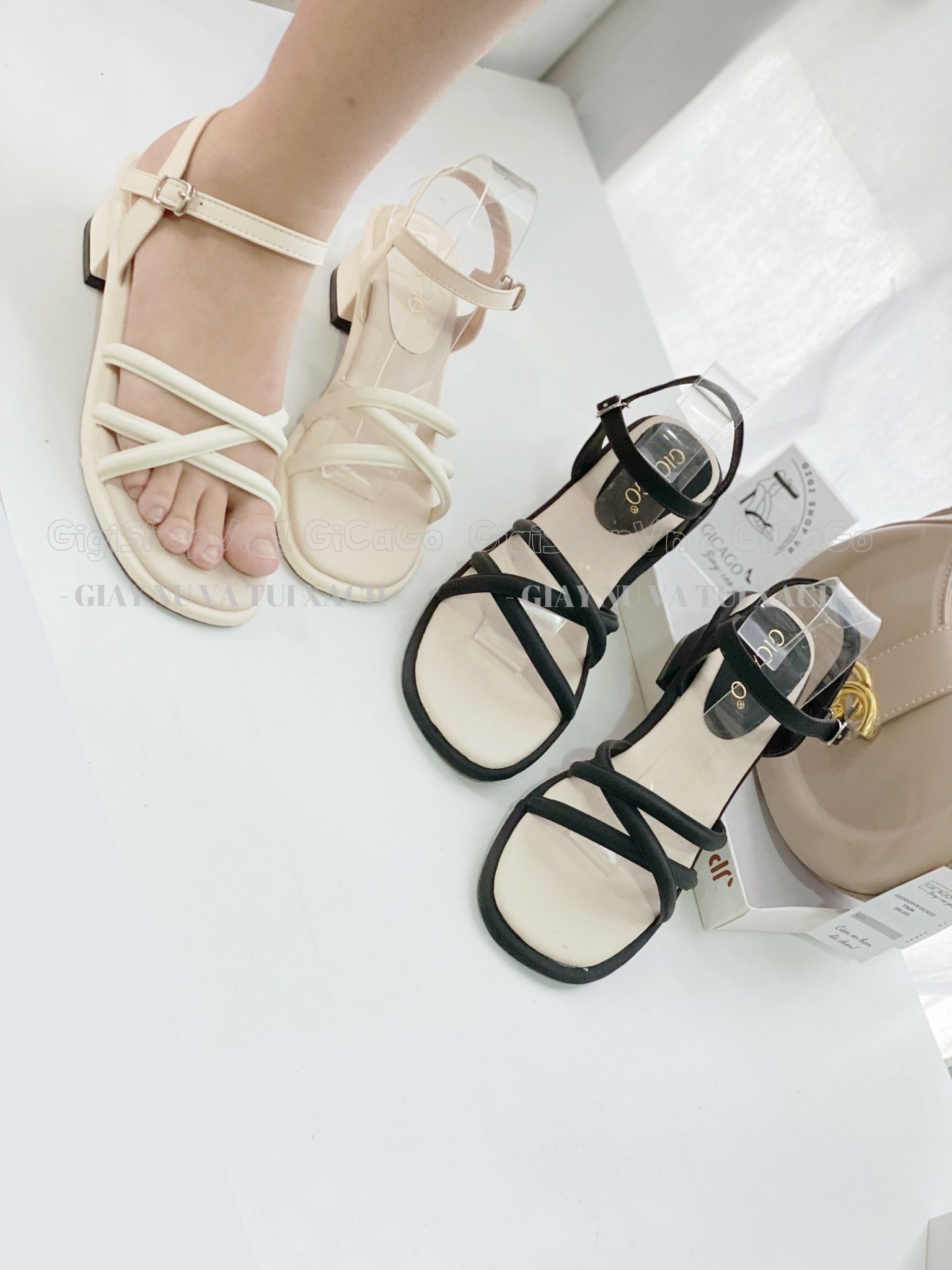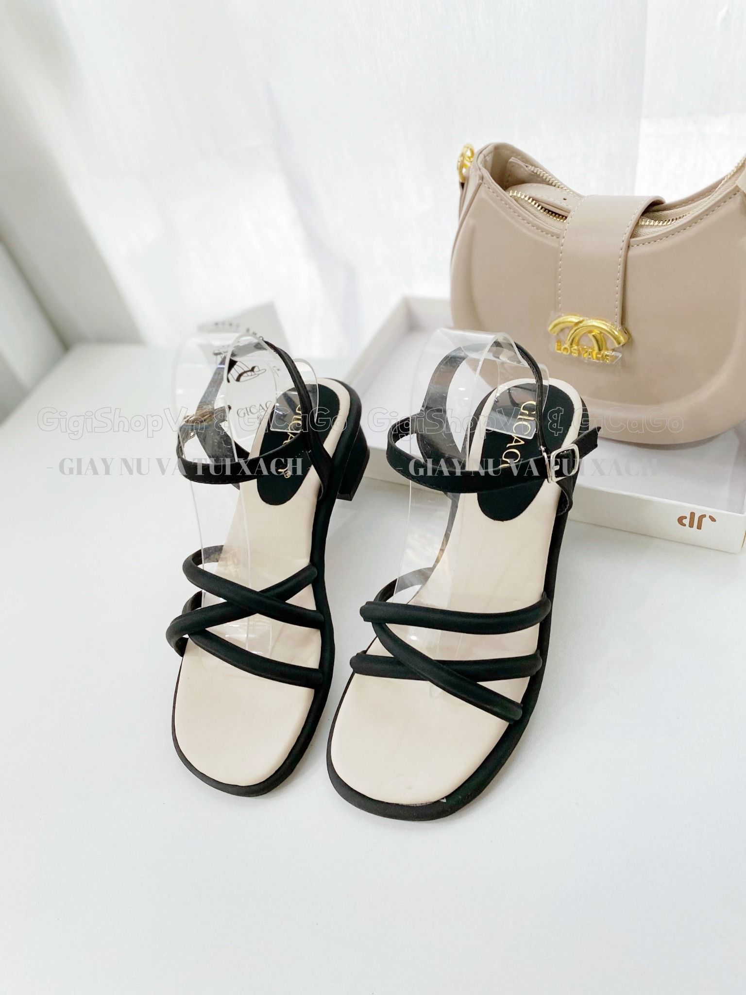 Sandal gót vuông dây chéo S849