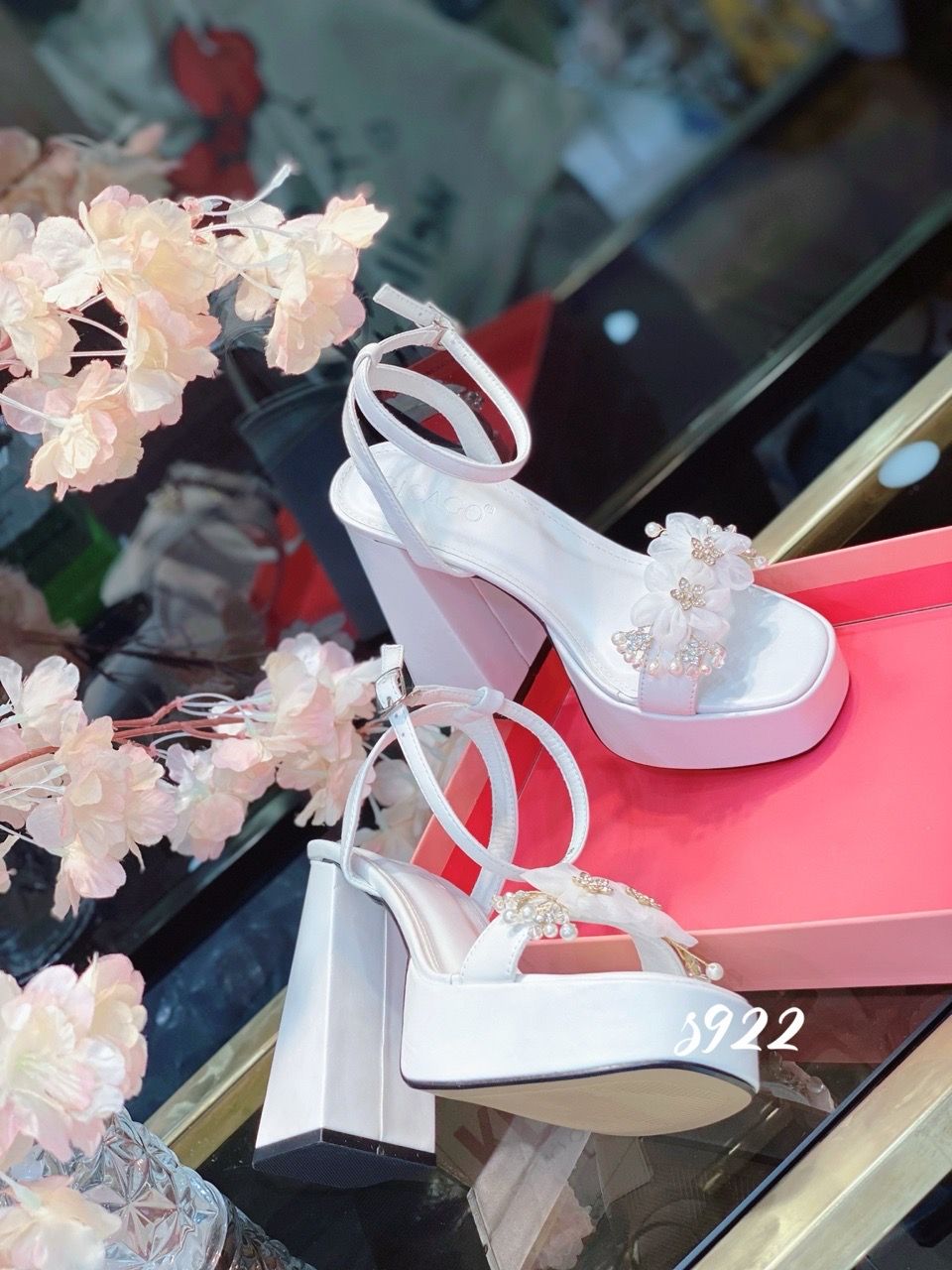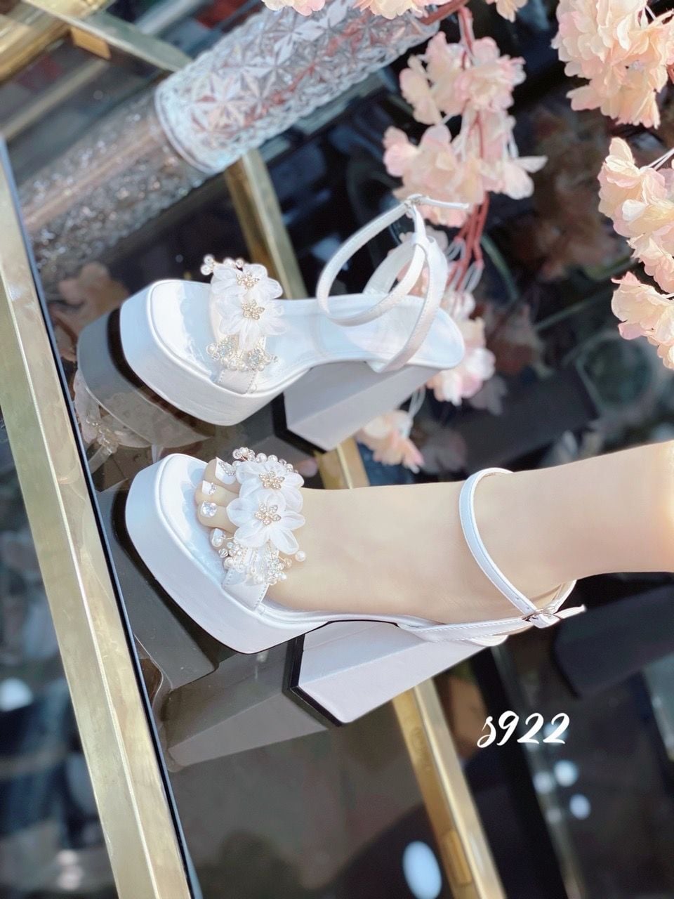 Sandal gót vuông HOA ĐÔI WD S922