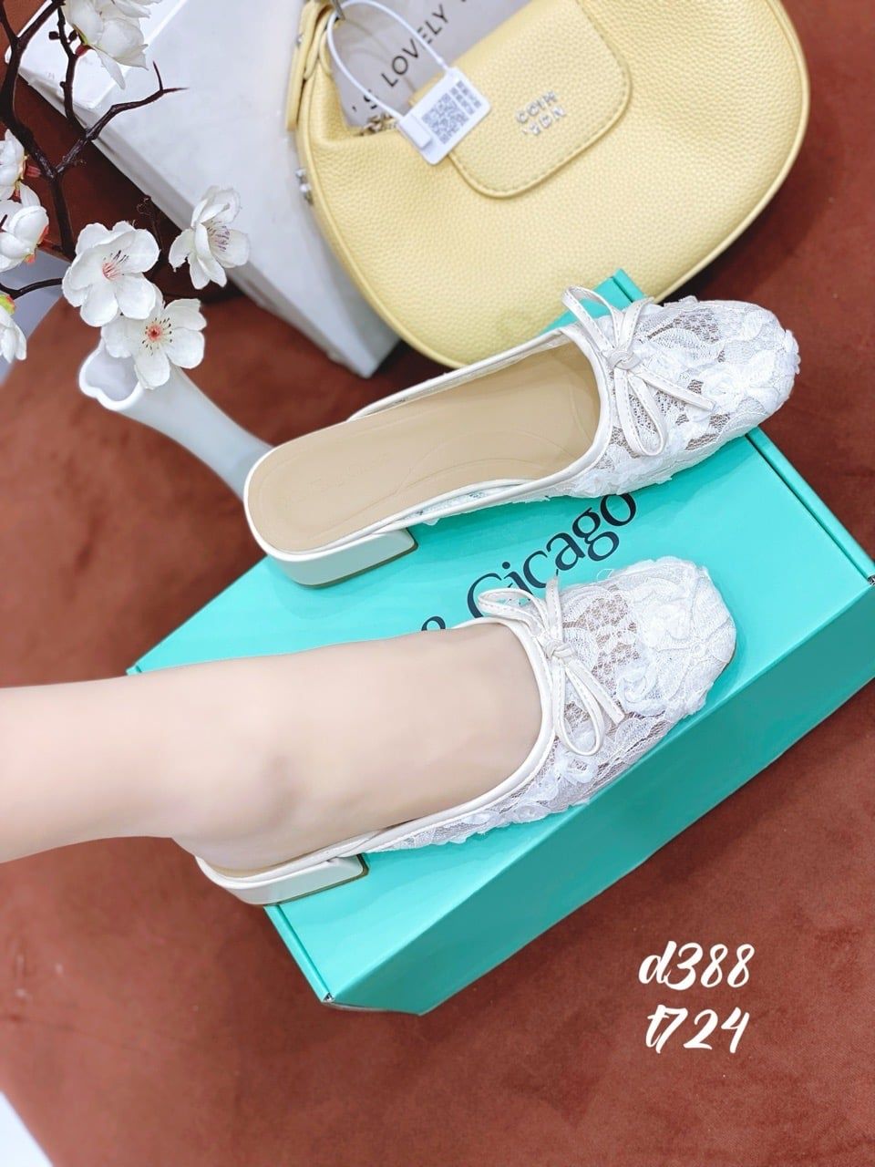 Sục gót vuông ren D388
